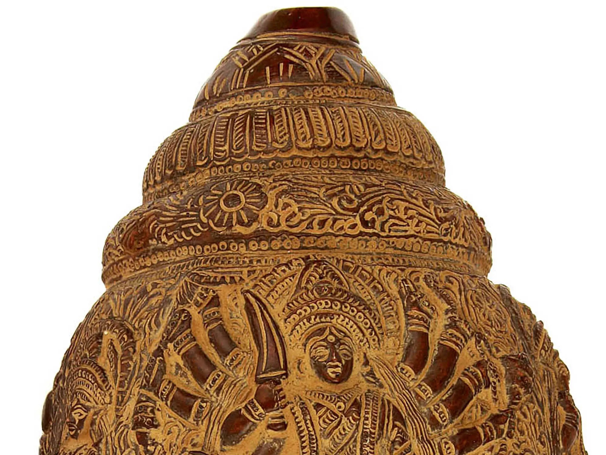 "Conch with Goddess Durga, Saraswati, Lakshmi, and Ganesha - a divine chorus."
