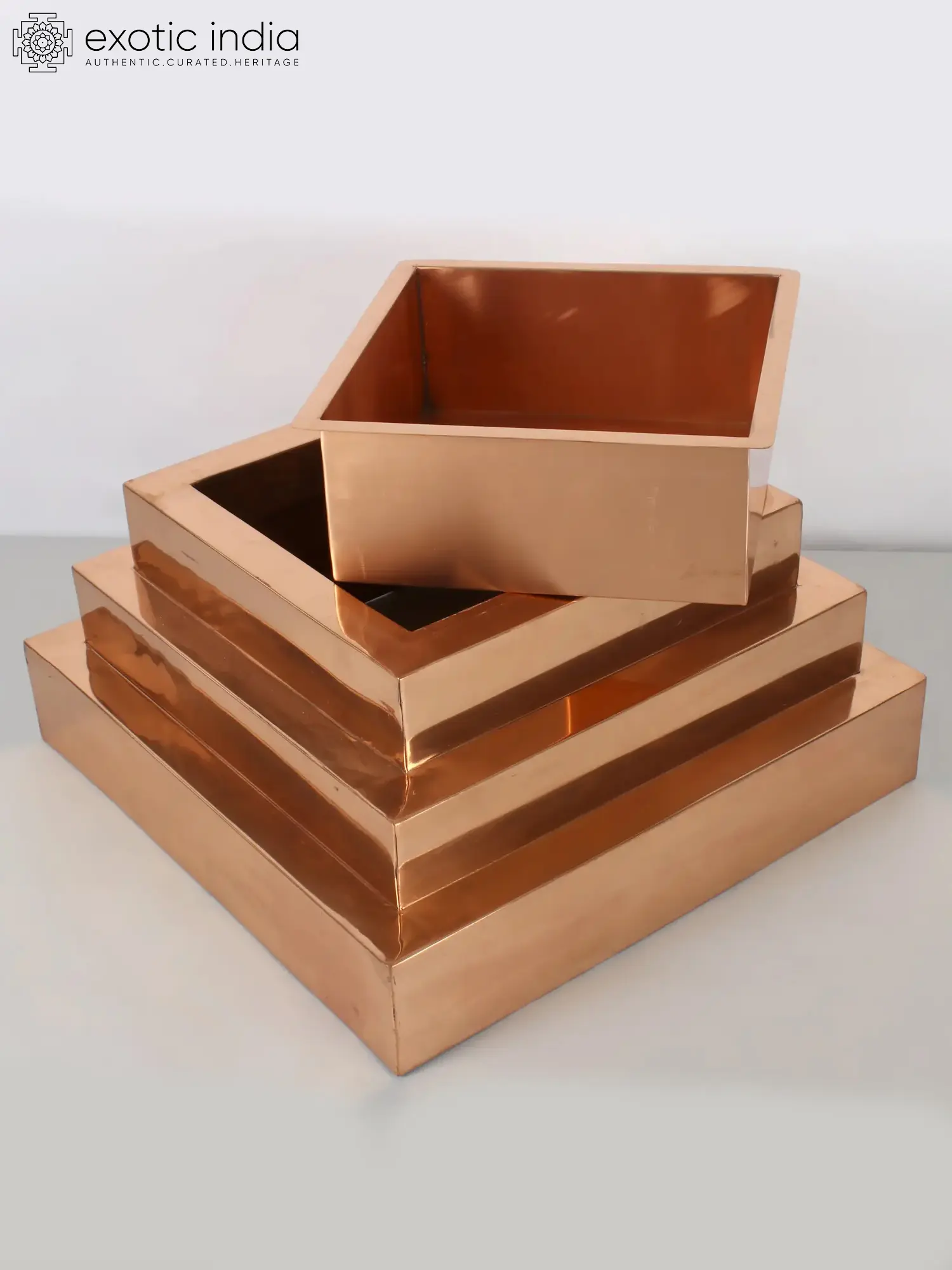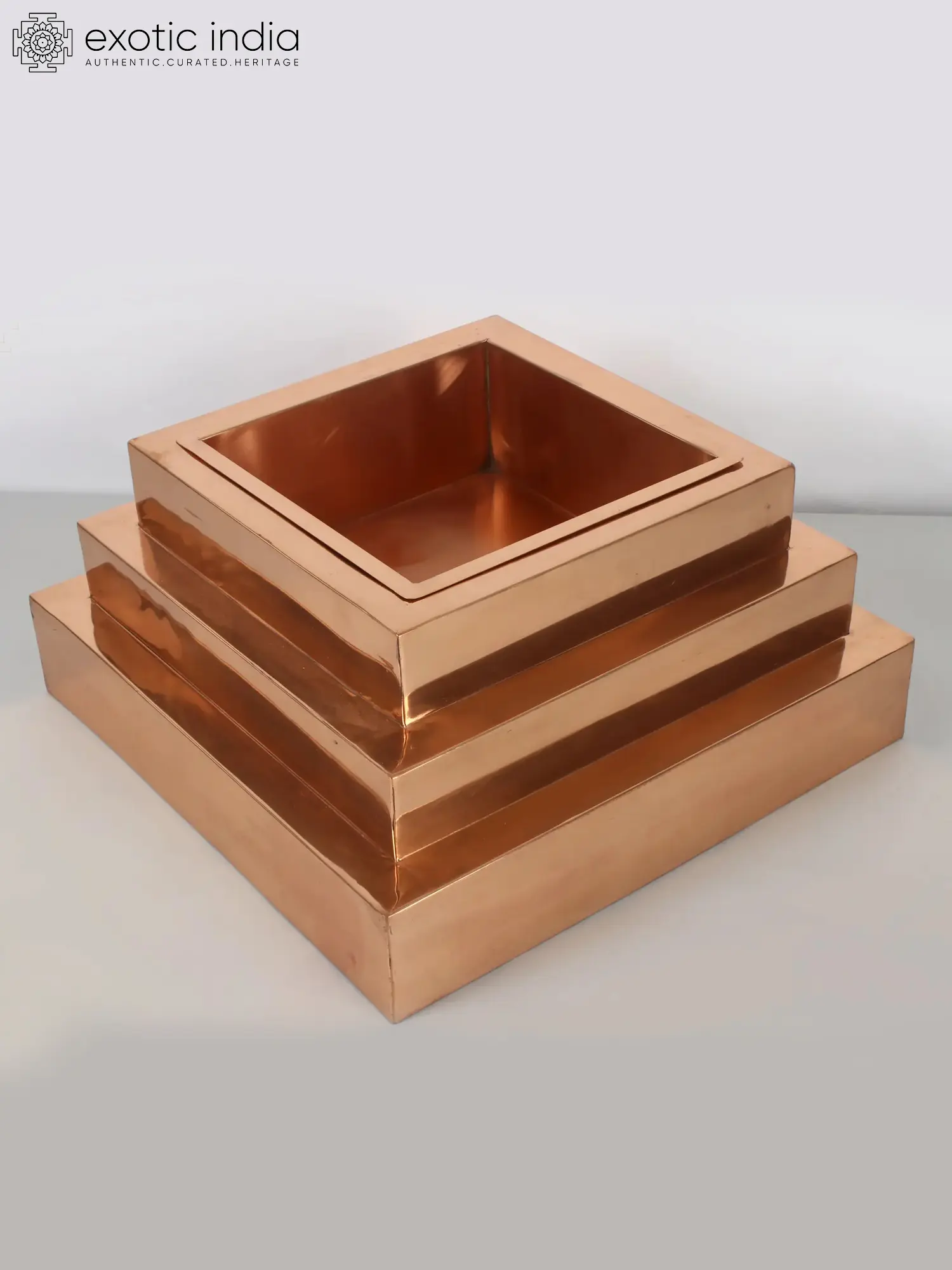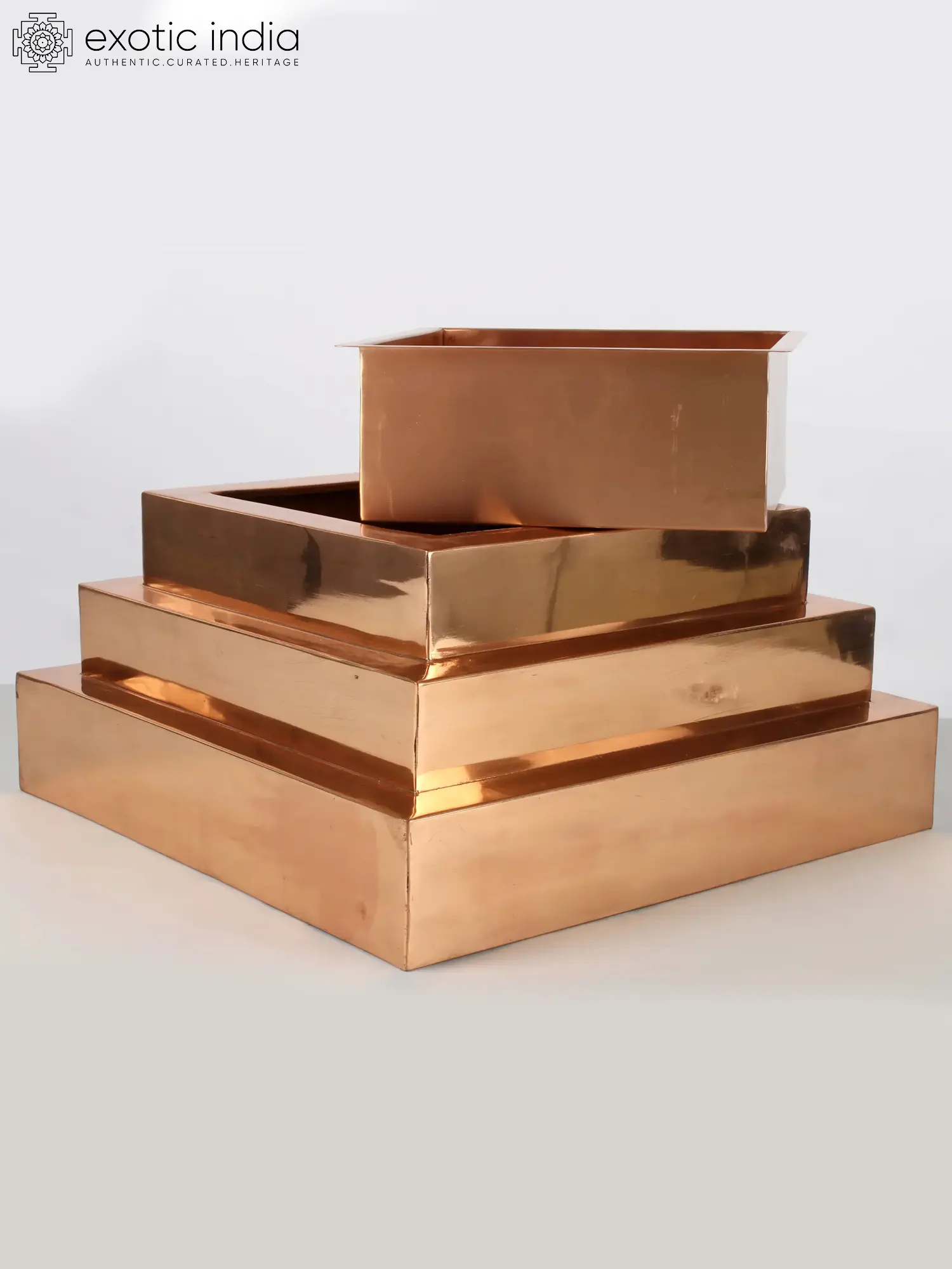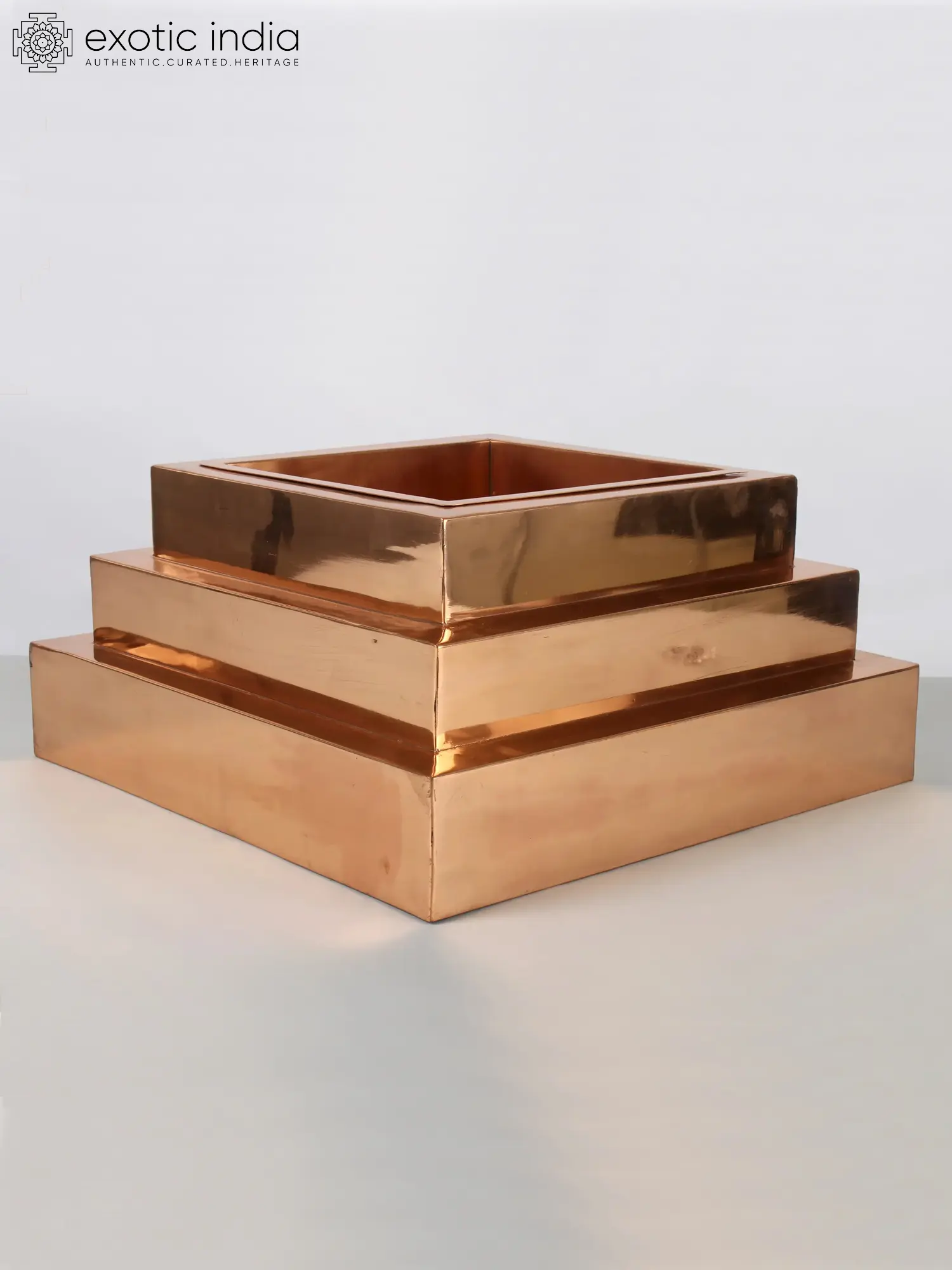 Yajna, the performance of the sacred fire ritual in the Hindu religion is one of the ancient most ways in which one attains proximity with the supreme truth. Made with pure copper, which is one of the prescribed materials for all religious activities, this Havana Kunda has been formulated in perfect symmetry, with three levels leading to the main altar. The altar is a removable piece, which makes it easy to clean so that you can experience the heavenliness of Yajna in your ambiance on a regular basis.