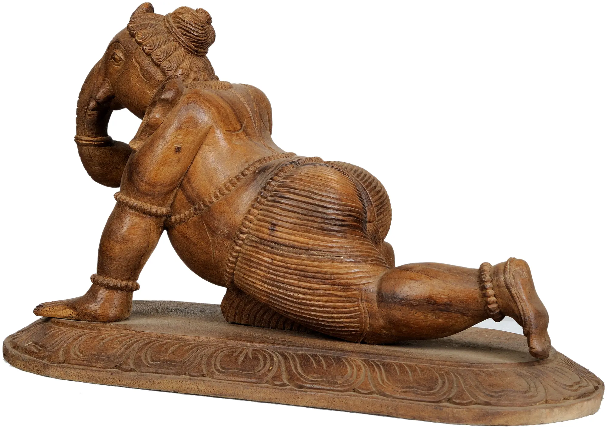 Ganesha, the elephant-headed god, is one of Hinduism's most beloved deities. He is revered as the remover of obstacles, the patron of arts and sciences, and the deva of intellect and wisdom. But even this powerful and wise god has a story of beginnings, of childhood innocence and playful exploration. This wood carving beautifully captures that essence, presenting Ganesha as a child, in a moment of unburdened curiosity. Observe the intricate detail of the carving, a testament to the skilled artisans who create these sacred objects. The folds of skin around his trunk, the gentle curve of his tusk, and the careful rendering of his chubby form speak to a deep understanding of both the artistic process and the divine form. This isn't merely a statue; it's a devotional piece that invites contemplation and connects you to the rich mythology of Ganesha.