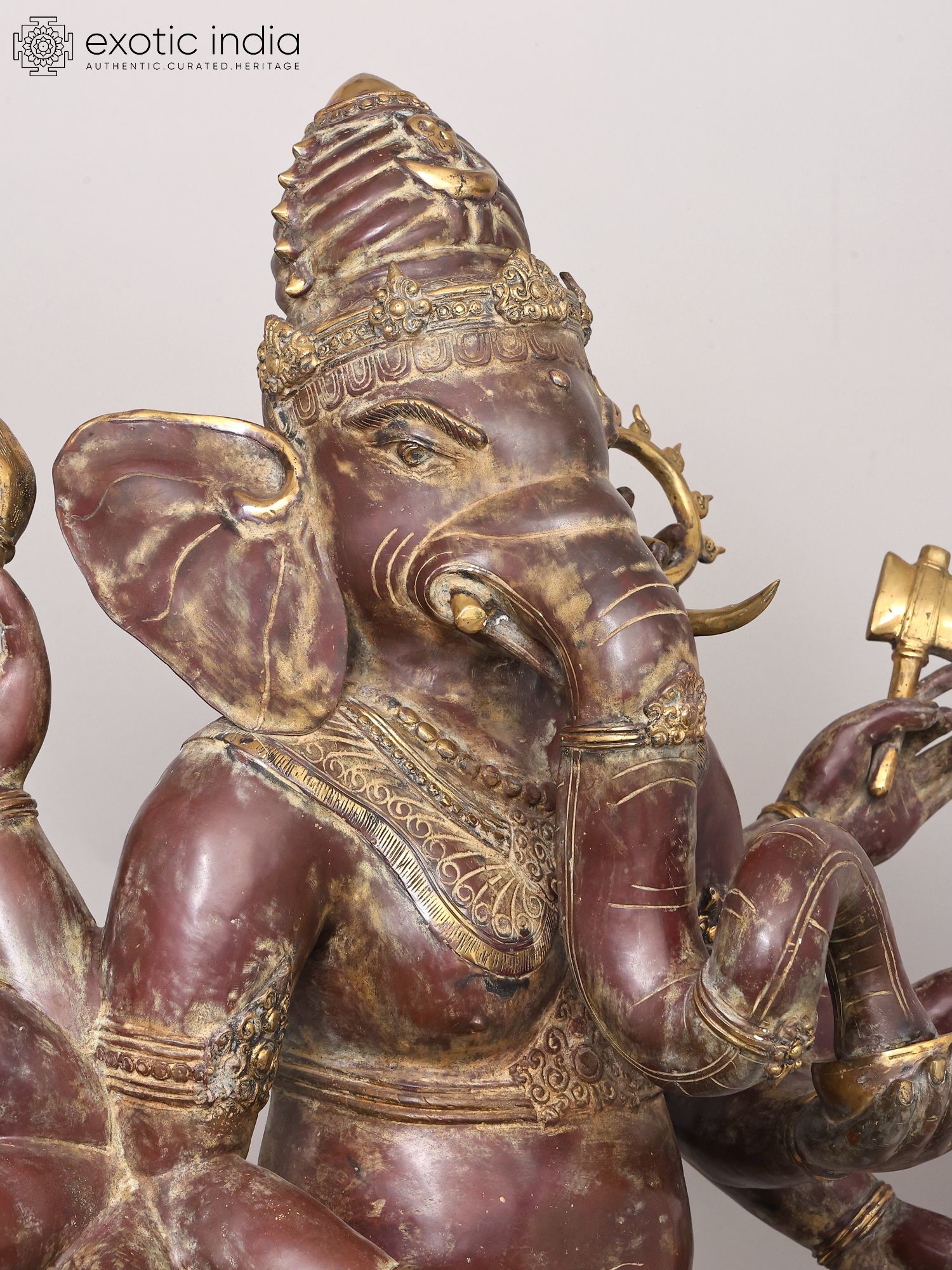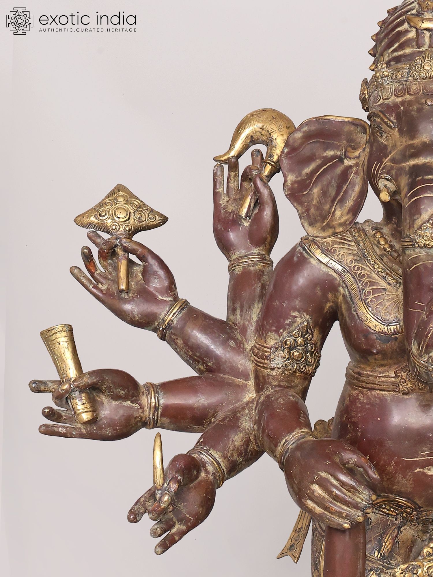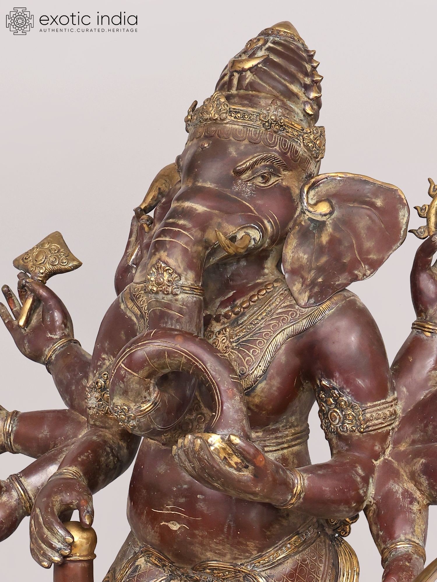 Depicts Danda Ganapati, an eight-armed manifestation of the elephant-headed deity.