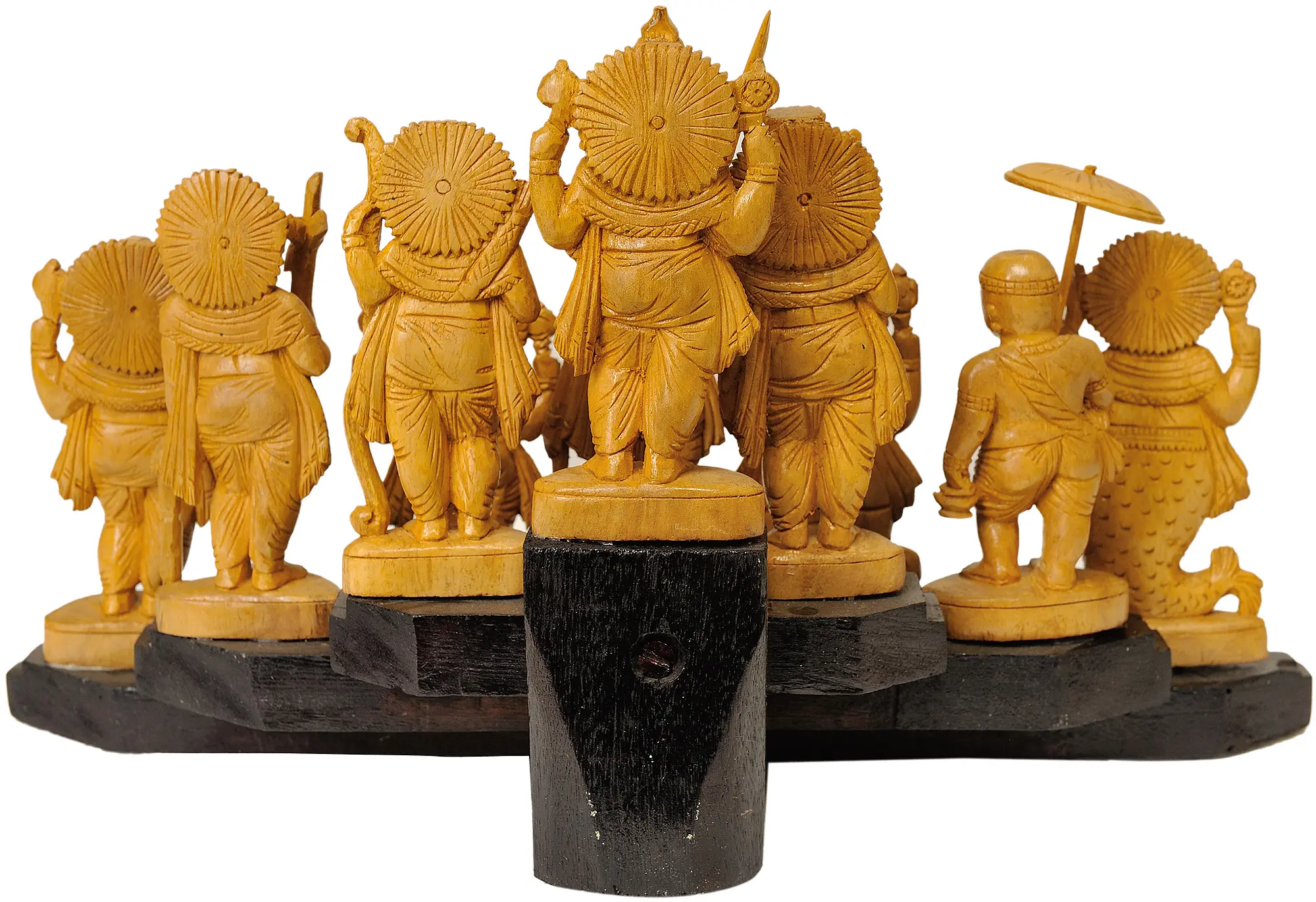 Each of these ten figures is a testament to the artisan's skill and devotion. The fine details of their crowns, adornments, and weapons are rendered with precision, reflecting the iconography associated with each avatar. The smooth finish of the White Cedar wood makes the carvings a pleasure to touch, allowing for a deeper connection with these divine personifications. Displaying this Dashavatara set is more than just an aesthetic choice; it is an invitation to engage with the rich philosophical and spiritual tapestry of Hinduism. It serves as a constant reminder of the divine presence that safeguards the universe and guides humanity through cycles of chaos and renewal. This beautifully crafted wooden set is destined to become a cherished centerpiece in any home, a source of inspiration and a symbol of enduring faith.