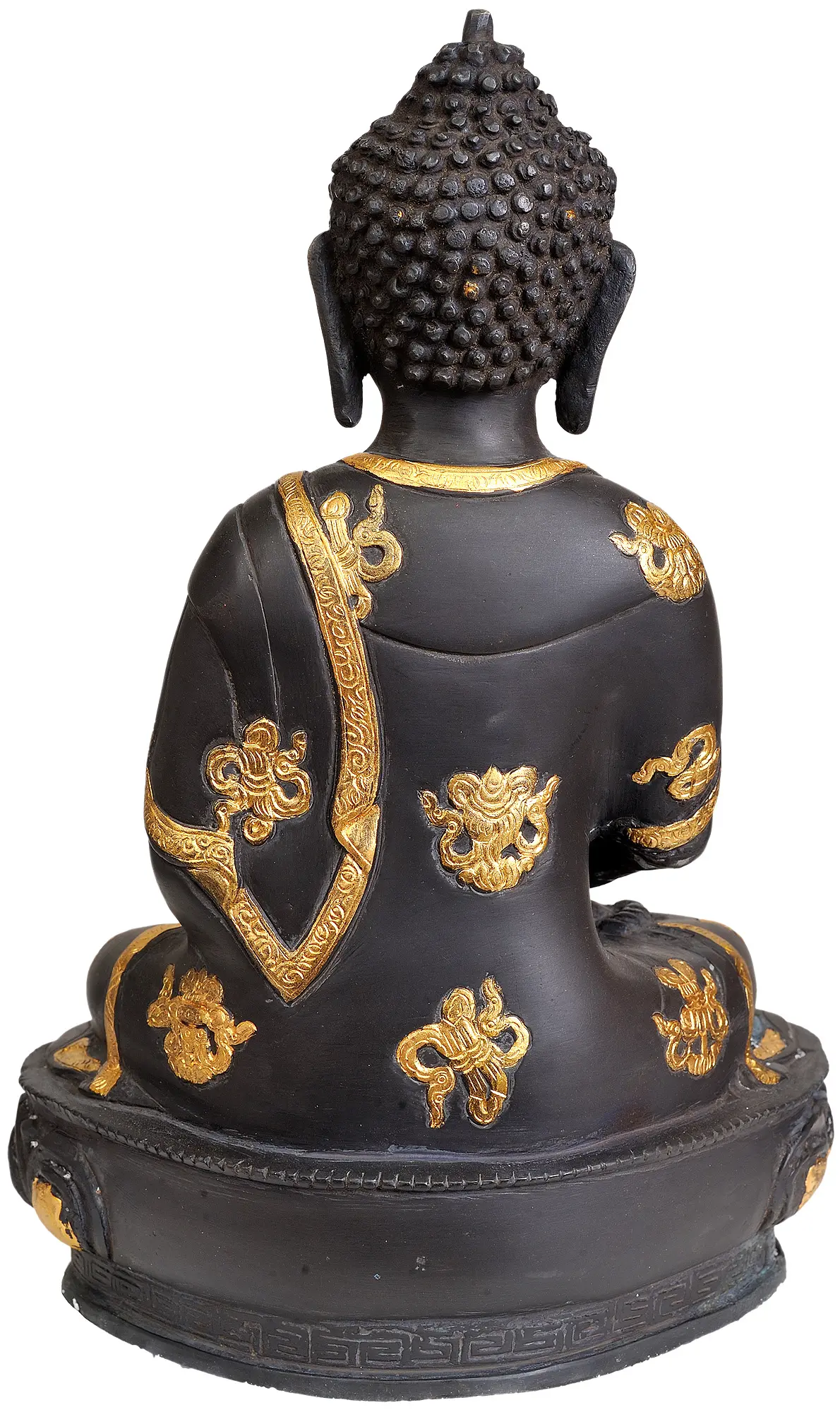 Crafted from high-quality brass, this statue possesses a timeless elegance and durability. The deep, rich tones of the metal are beautifully complemented by the vibrant golden accents, creating a striking visual contrast that draws the eye and inspires reverence. This Dhyani Buddha is more than just a decorative object; it is an invitation to cultivate mindfulness, inner peace, and a deeper understanding of spiritual principles. Placing this statue in your home, office, or meditation space can serve as a constant reminder to seek clarity, compassion, and enlightenment in your own life. Its presence can transform any environment into a sanctuary of calm and spiritual contemplation, echoing the profound peace that the Buddha himself achieved.
