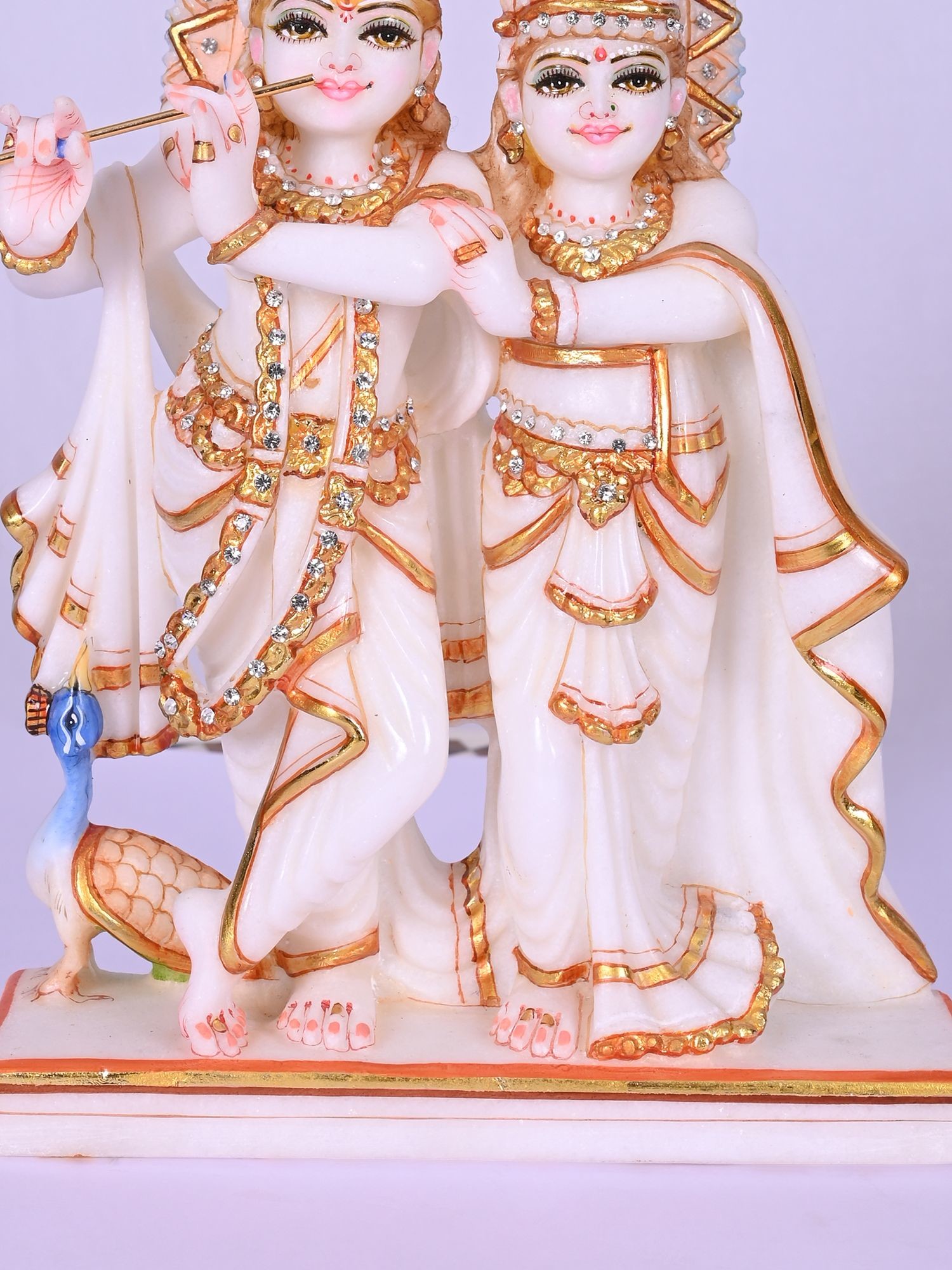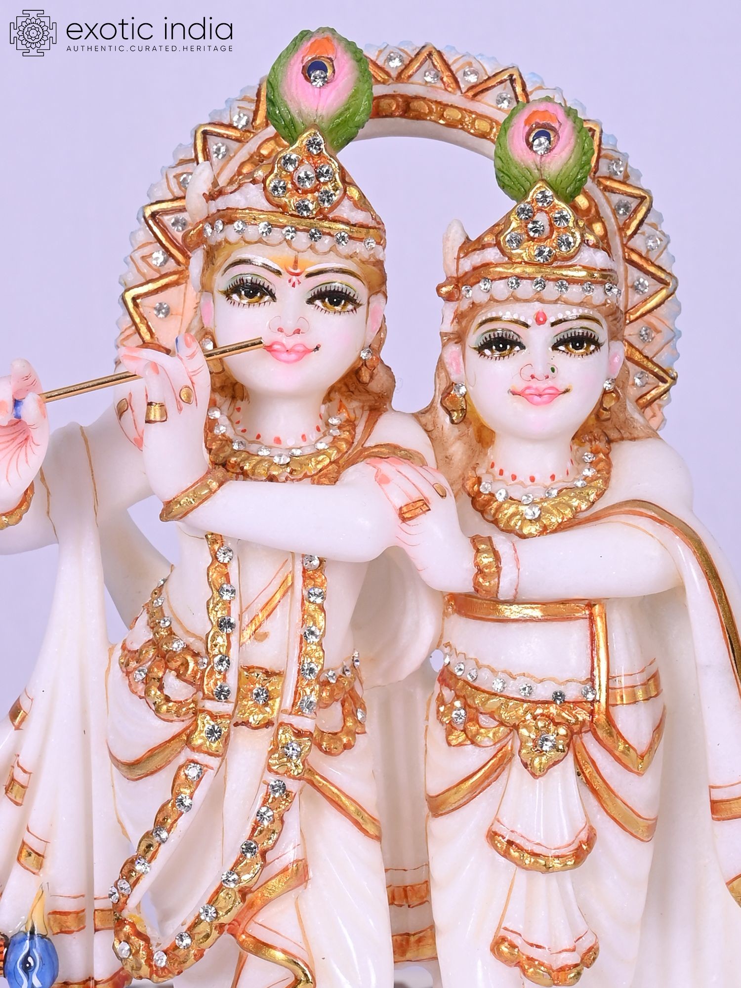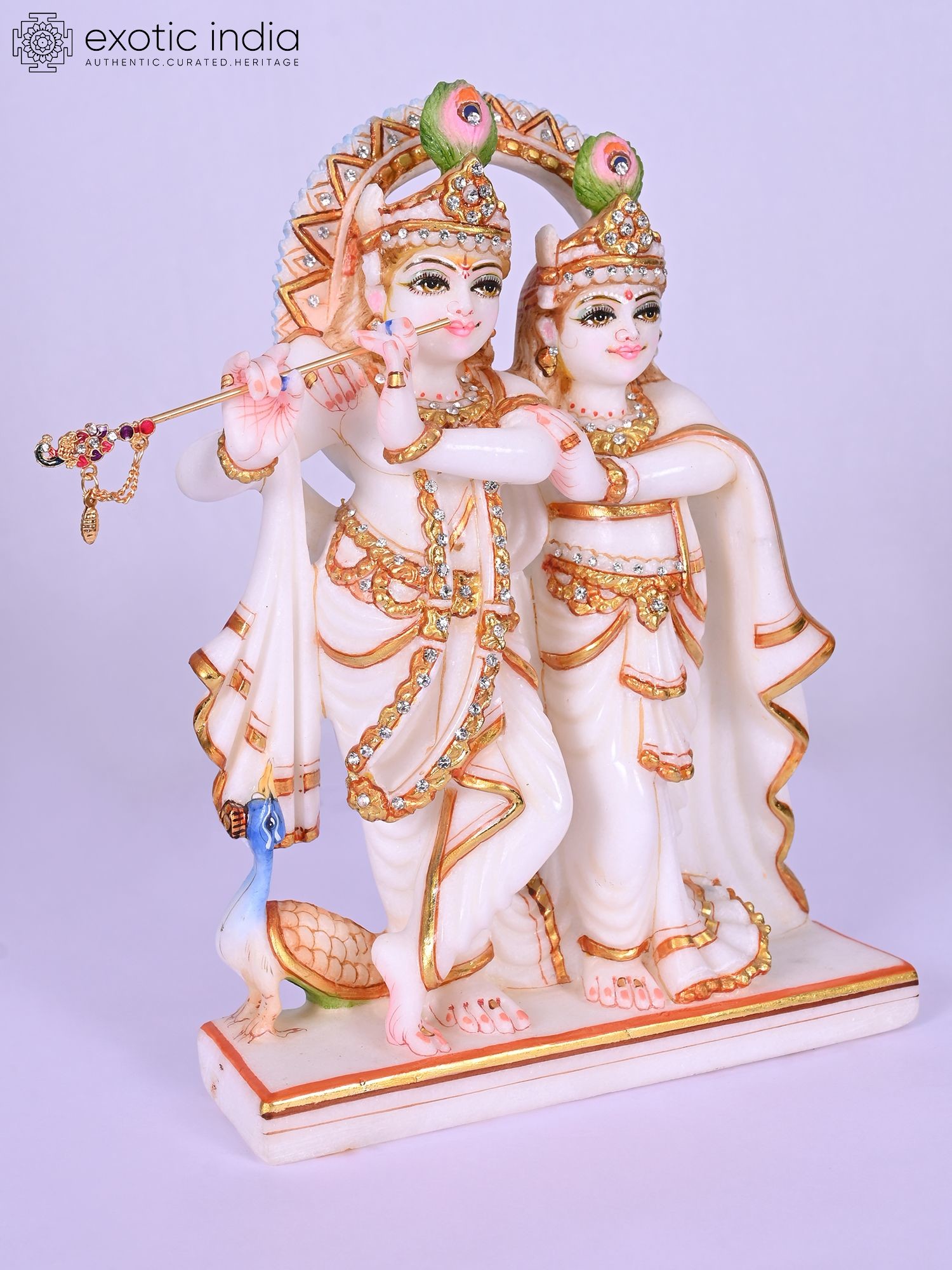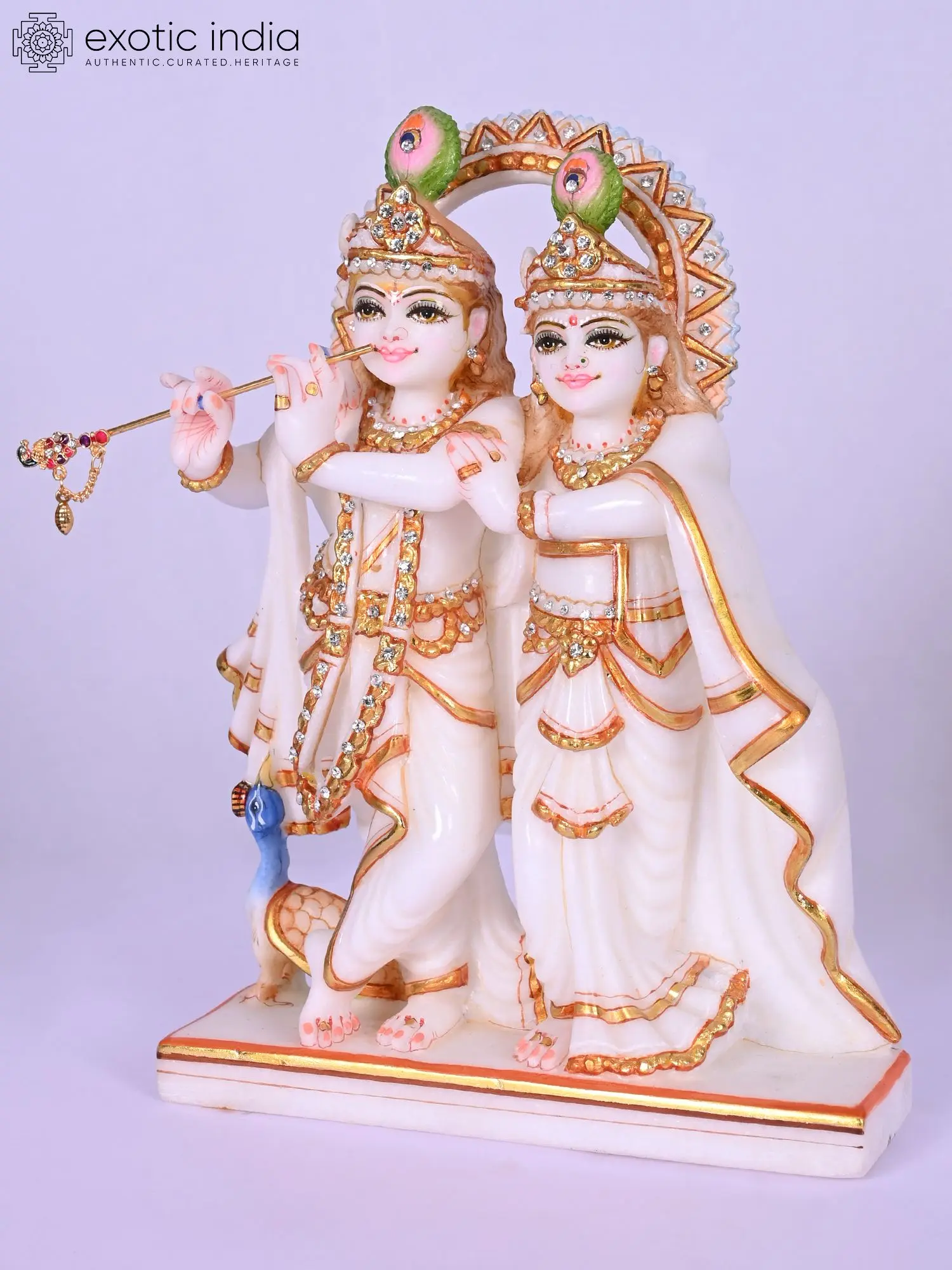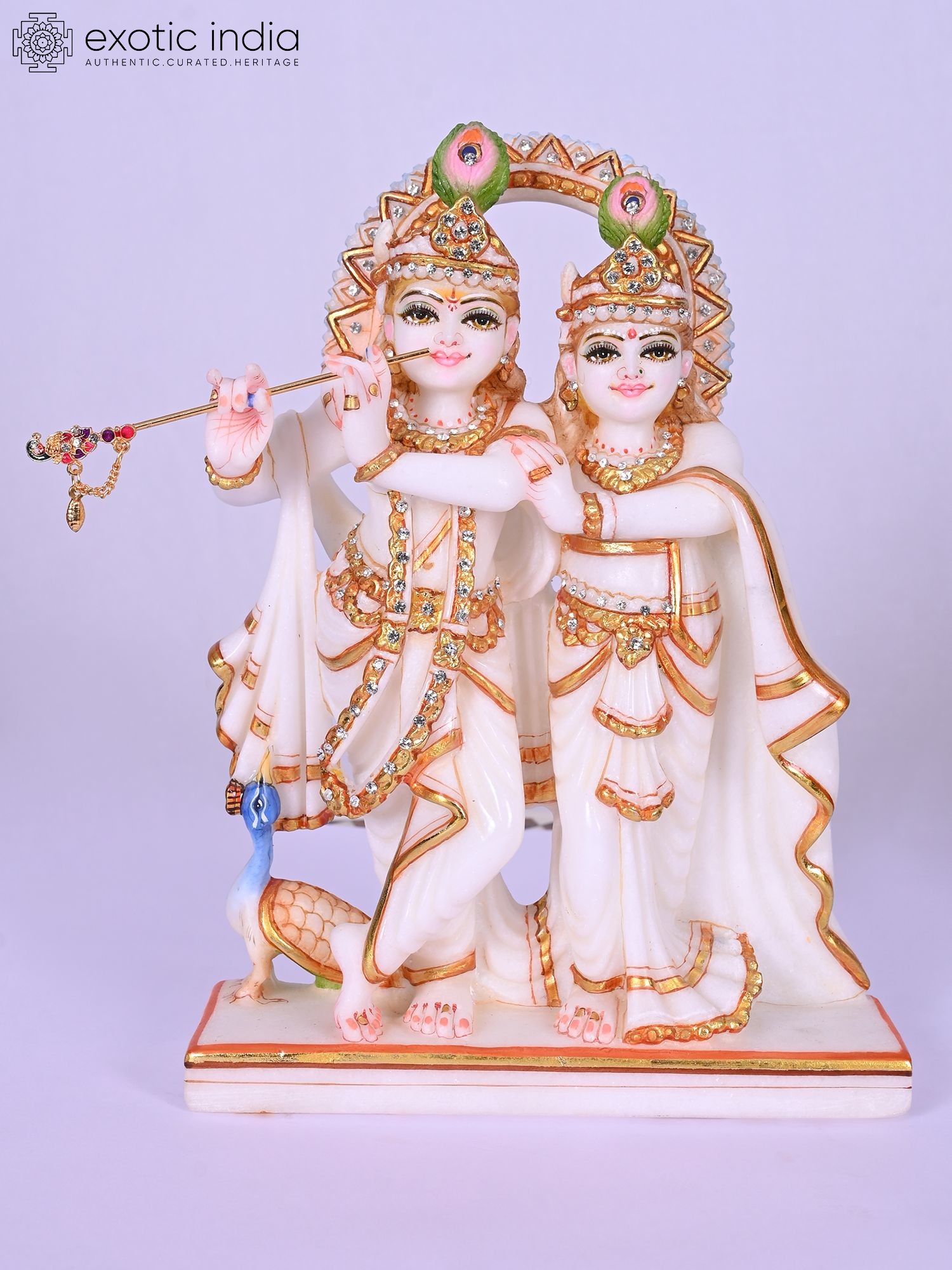 18" Radha Krishna Statue | Handmade | White Marble Radha Krishna Murti | Radha Krishna Moorti | Radha Krishna Idol