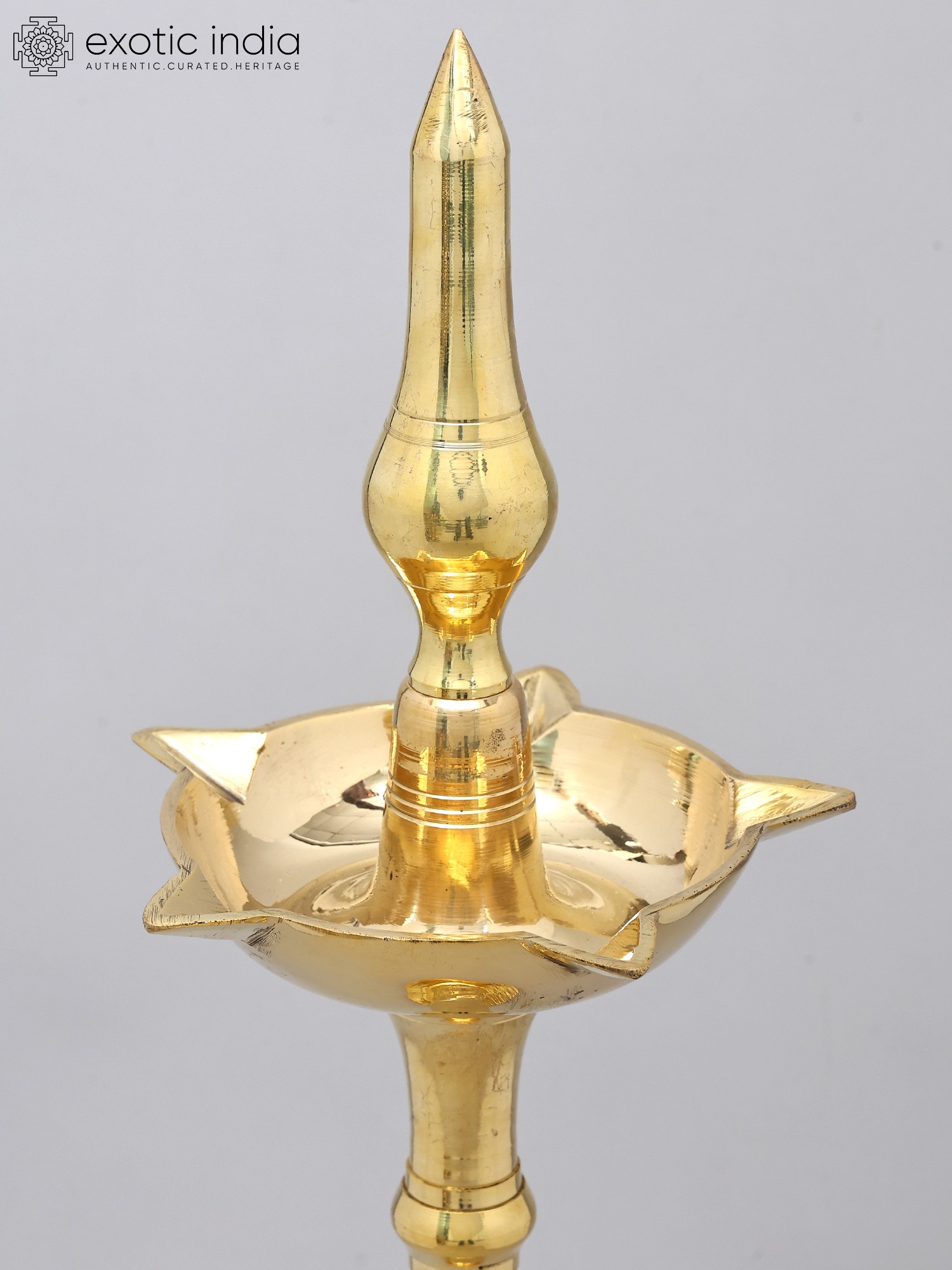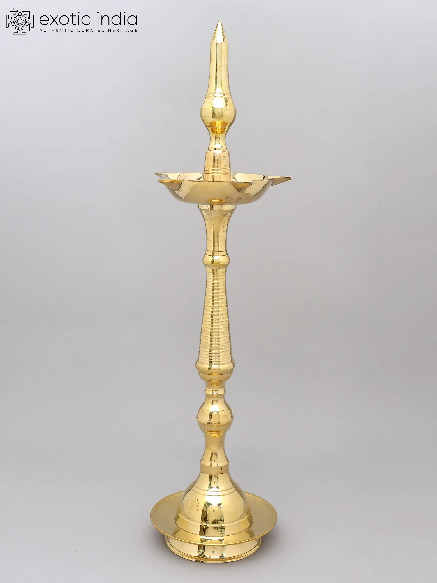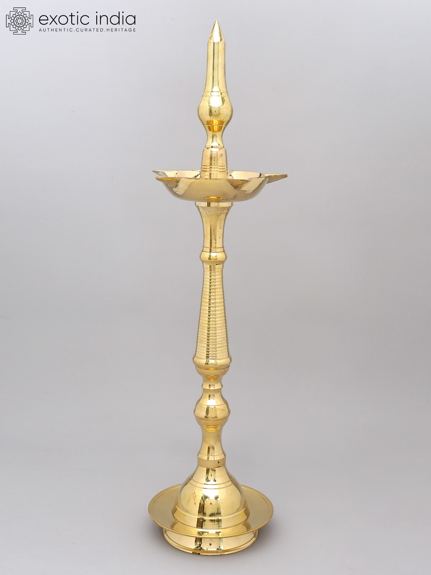 Kathakali lights, also known as Nila Vilakku, are traditional lights called for their use in Kathakali performances. A sturdy stand supports this metal lamp with a high oil bowl and no wick. It is usual to illuminate the stage with only traditional lights during a Kathakali performance. This light is a significant cultural and traditional emblem. It is intended to be a form of communication with the divine. This assists the devotee in identifying and reaping benefits.