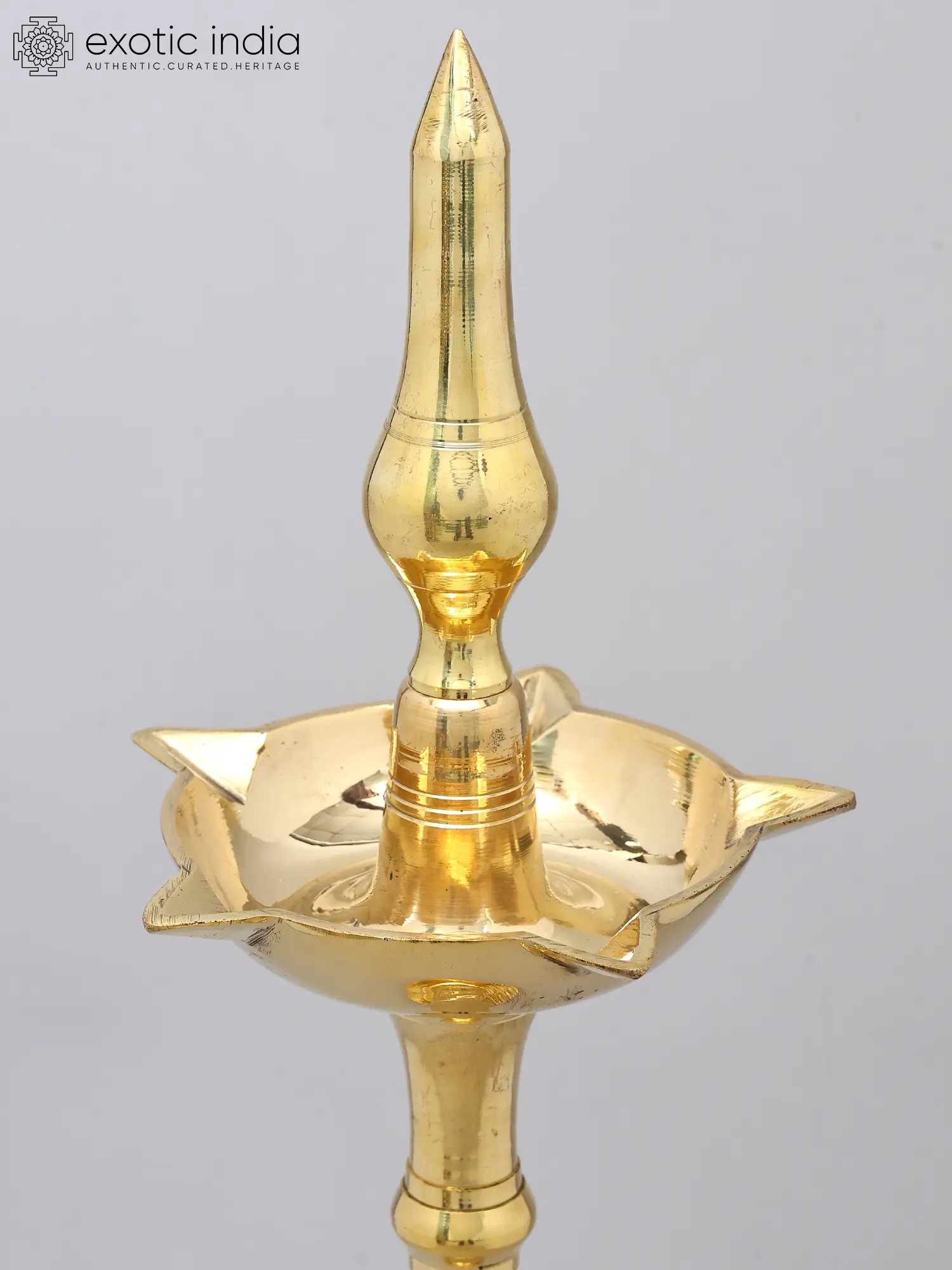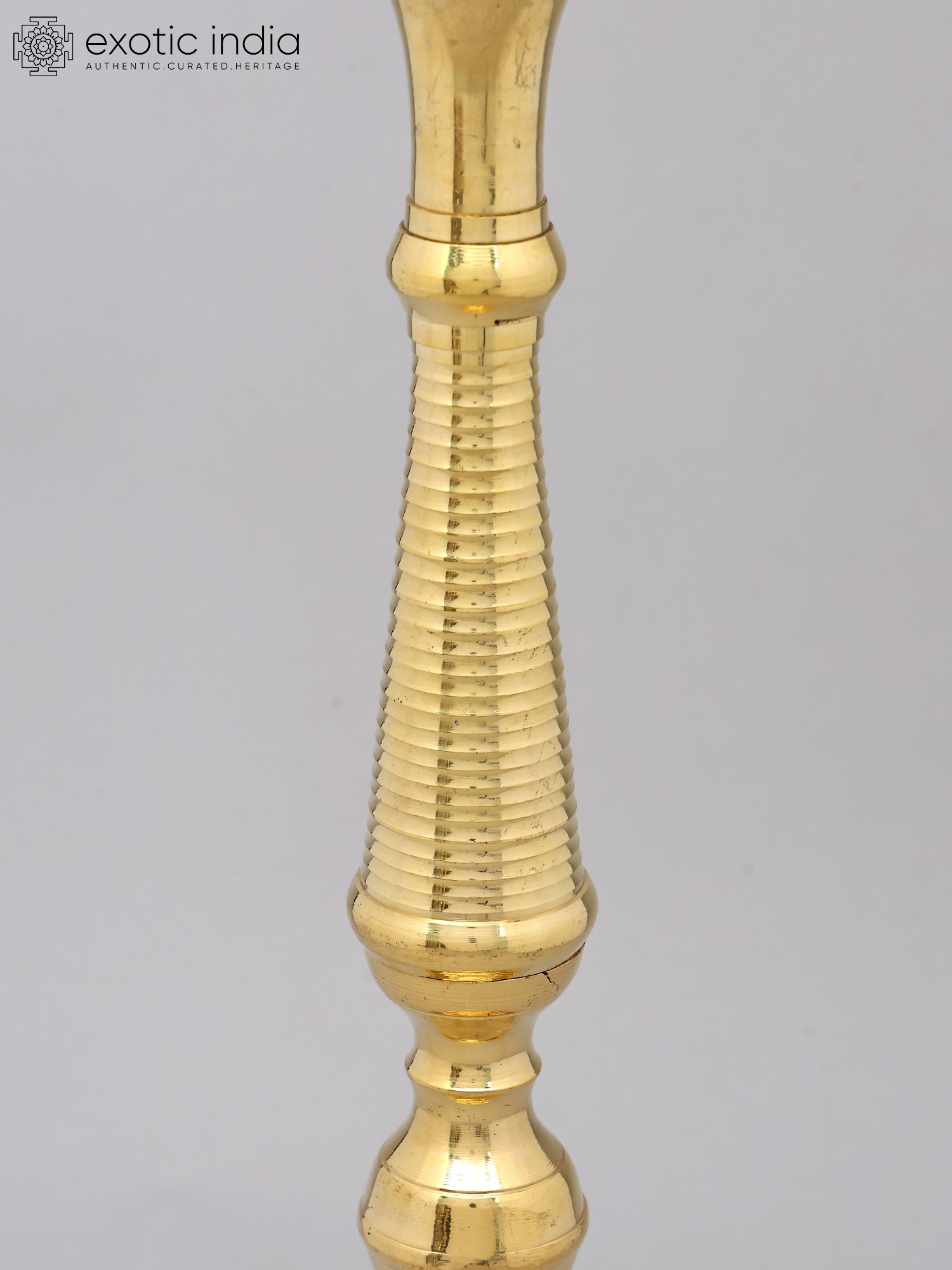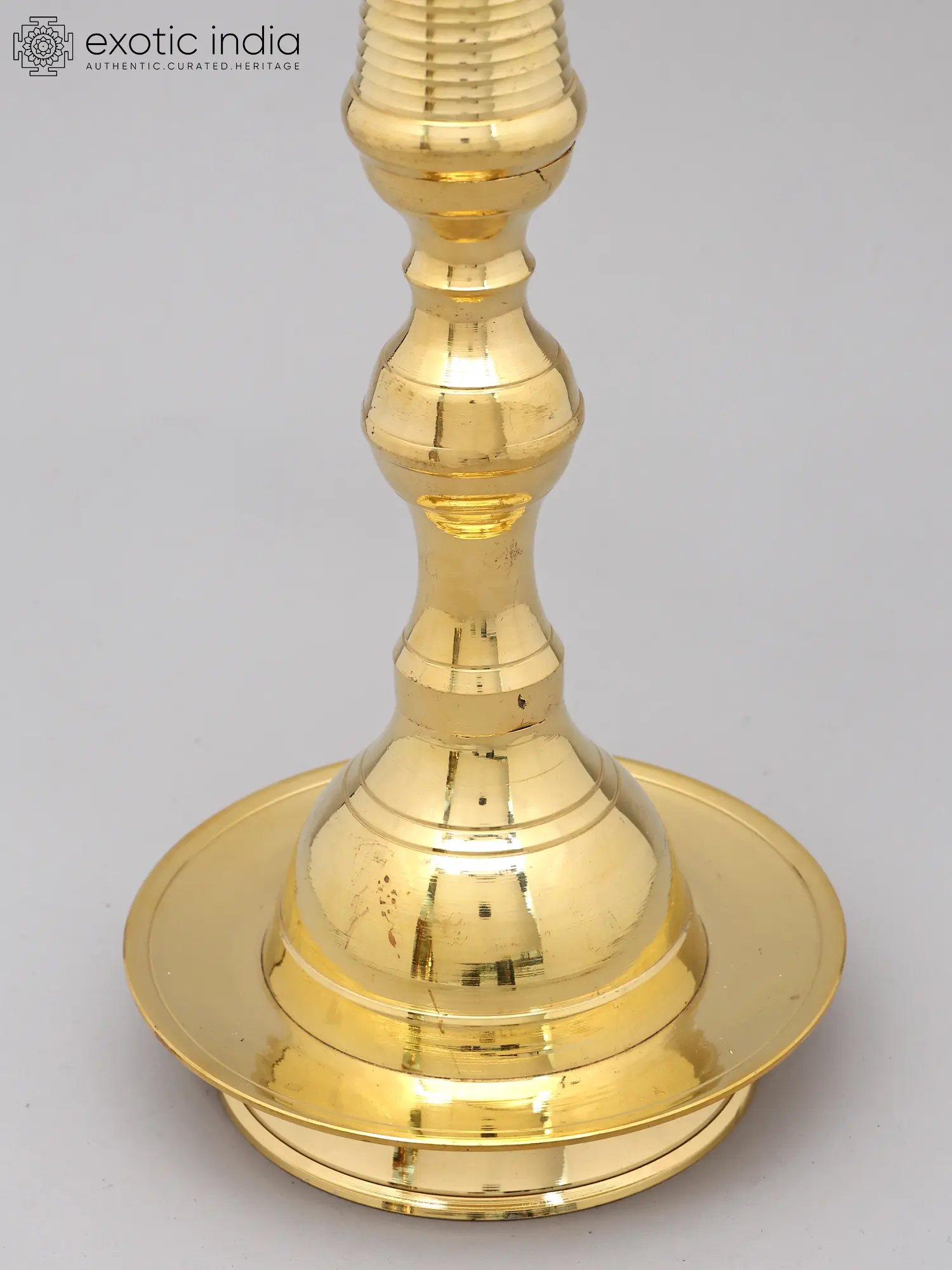 Kathakali lights, also known as Nila Vilakku, are traditional lights called for their use in Kathakali performances. A sturdy stand supports this metal lamp with a high oil bowl and no wick. It is usual to illuminate the stage with only traditional lights during a Kathakali performance. This light is a significant cultural and traditional emblem. It is intended to be a form of communication with the divine. This assists the devotee in identifying and reaping benefits.