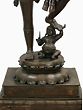 This Sati-Shivatandava murti is one of a kind. Every line and detail of this work has been executed by hand. Note the superb, lifelike musculature; the handsome and expressive features of Shiva’s countenance; and the minimal yet neatly defined adornments on His mostly bare body. The lotus-on-quadrilateral plinth is a hallmark of the traditional Indian bronze sculpture.