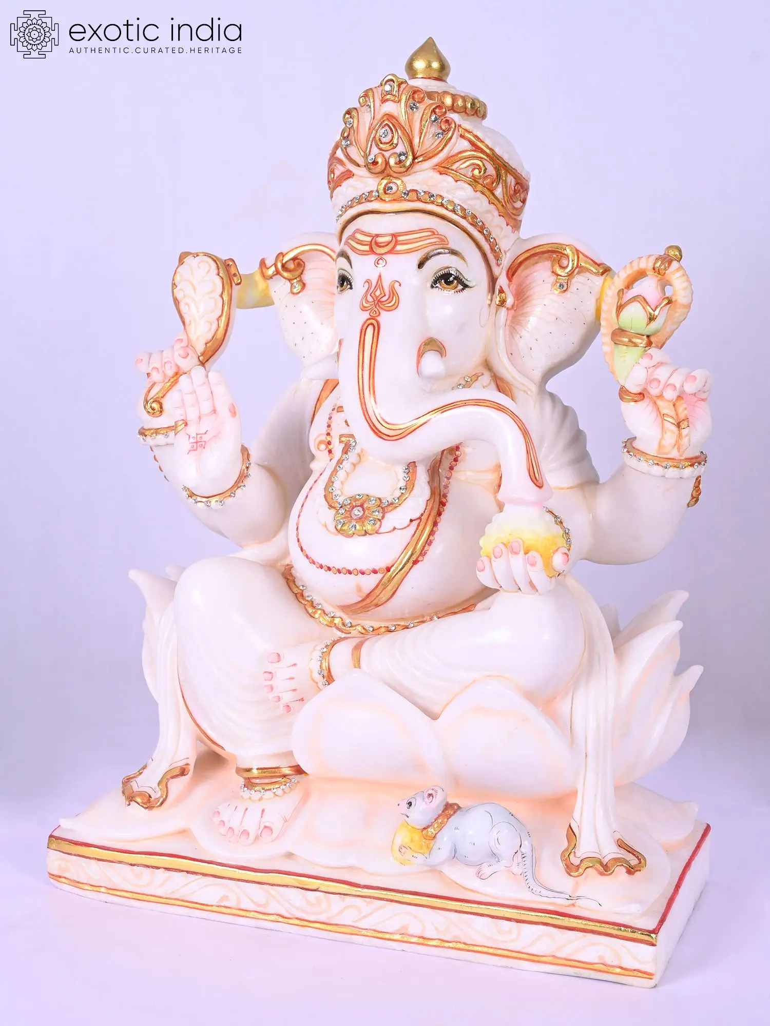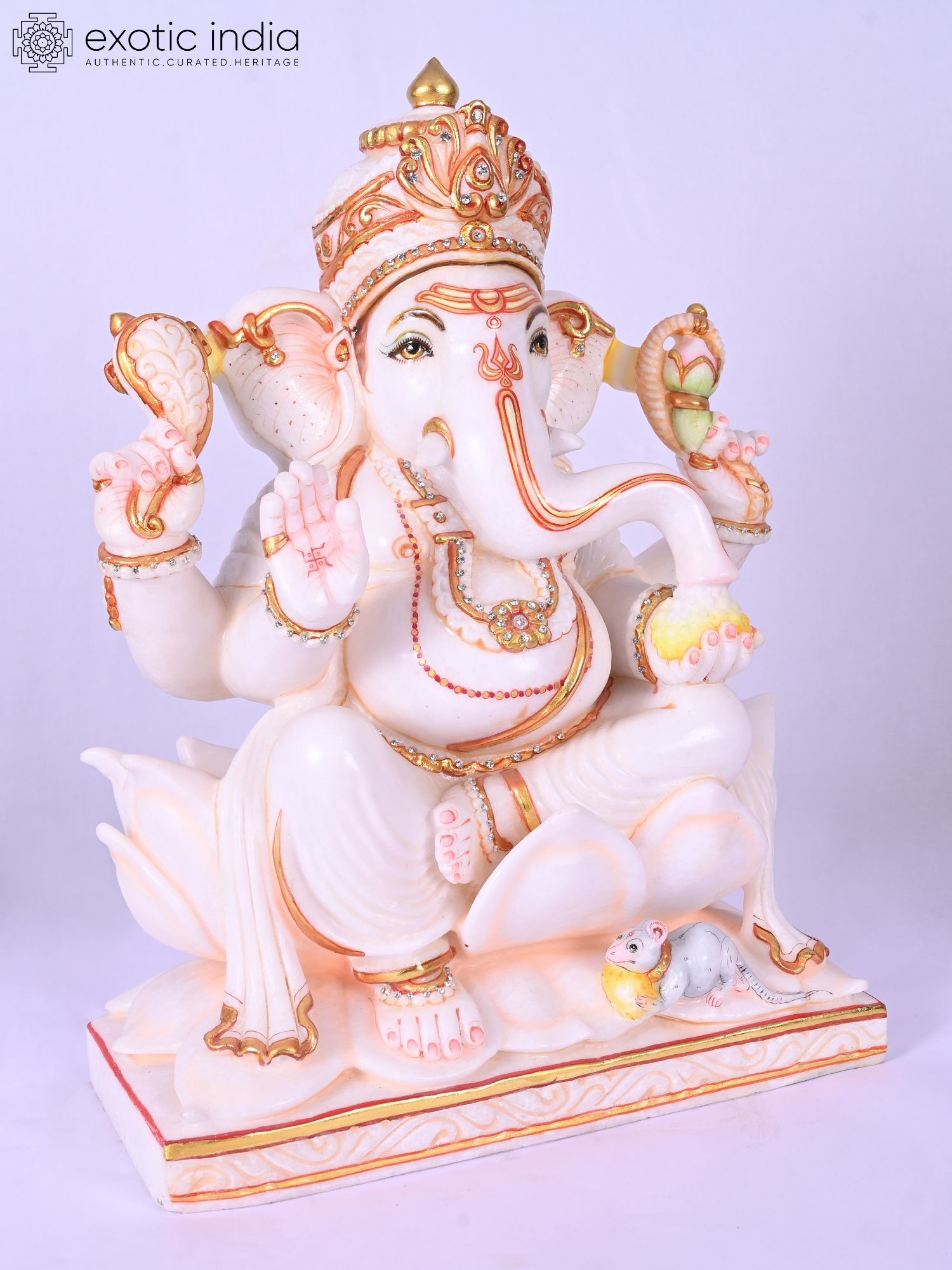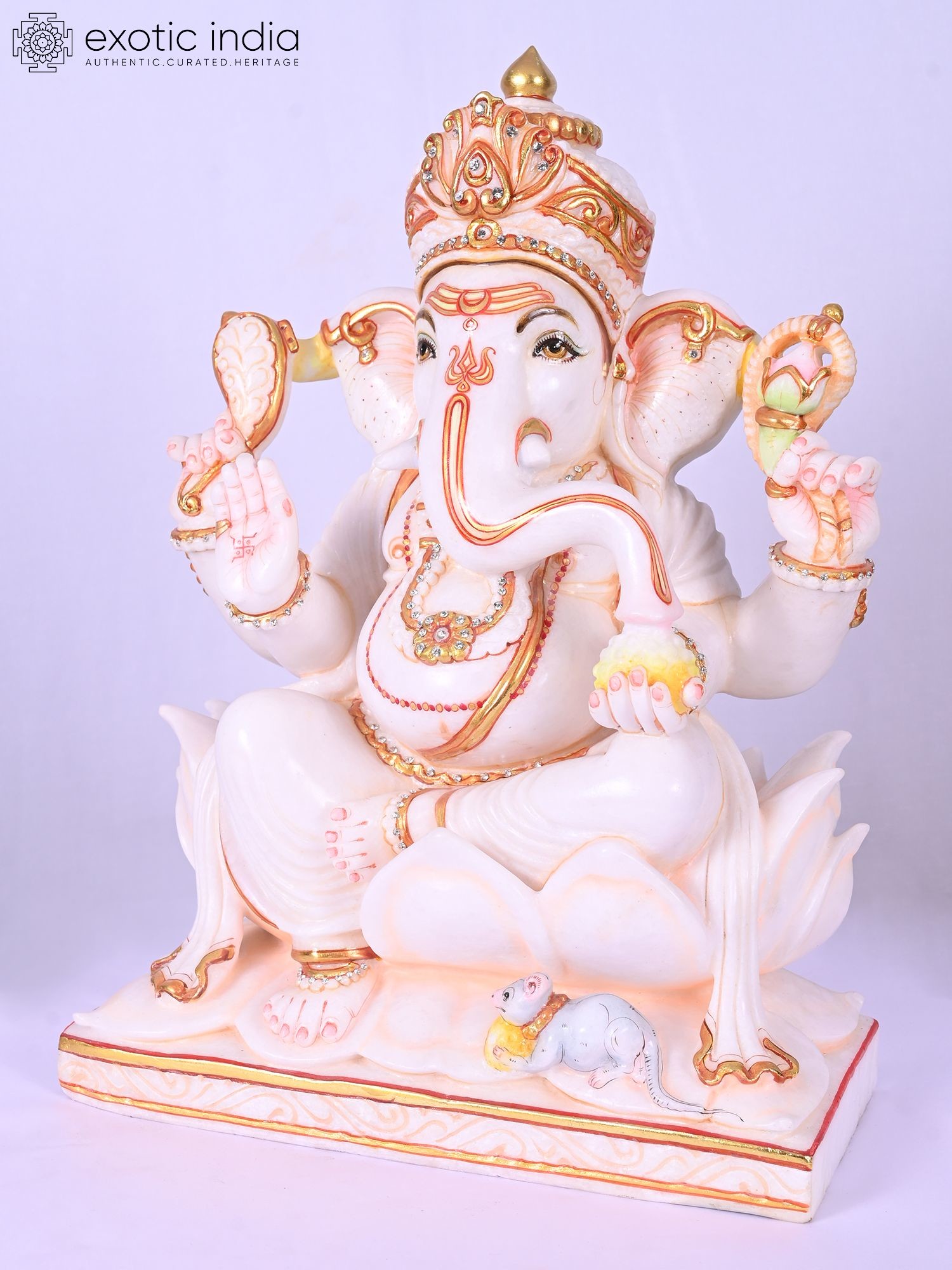 16" Lord Ganesha Statue Granting Abhaya in Brass | Handmade Idols | Made in India