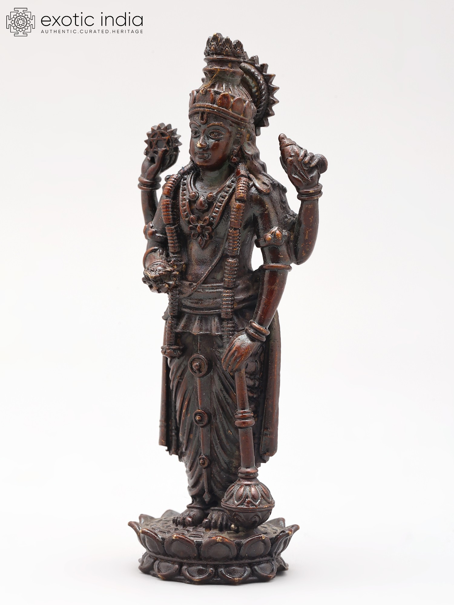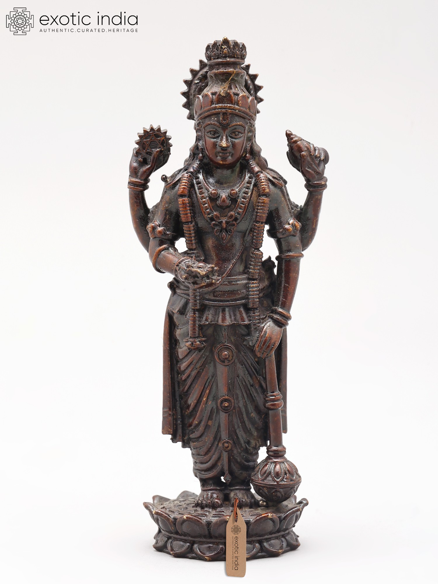 12" Lord Vishnu Standing on Lotus In Brass | Handmade | Made In India
