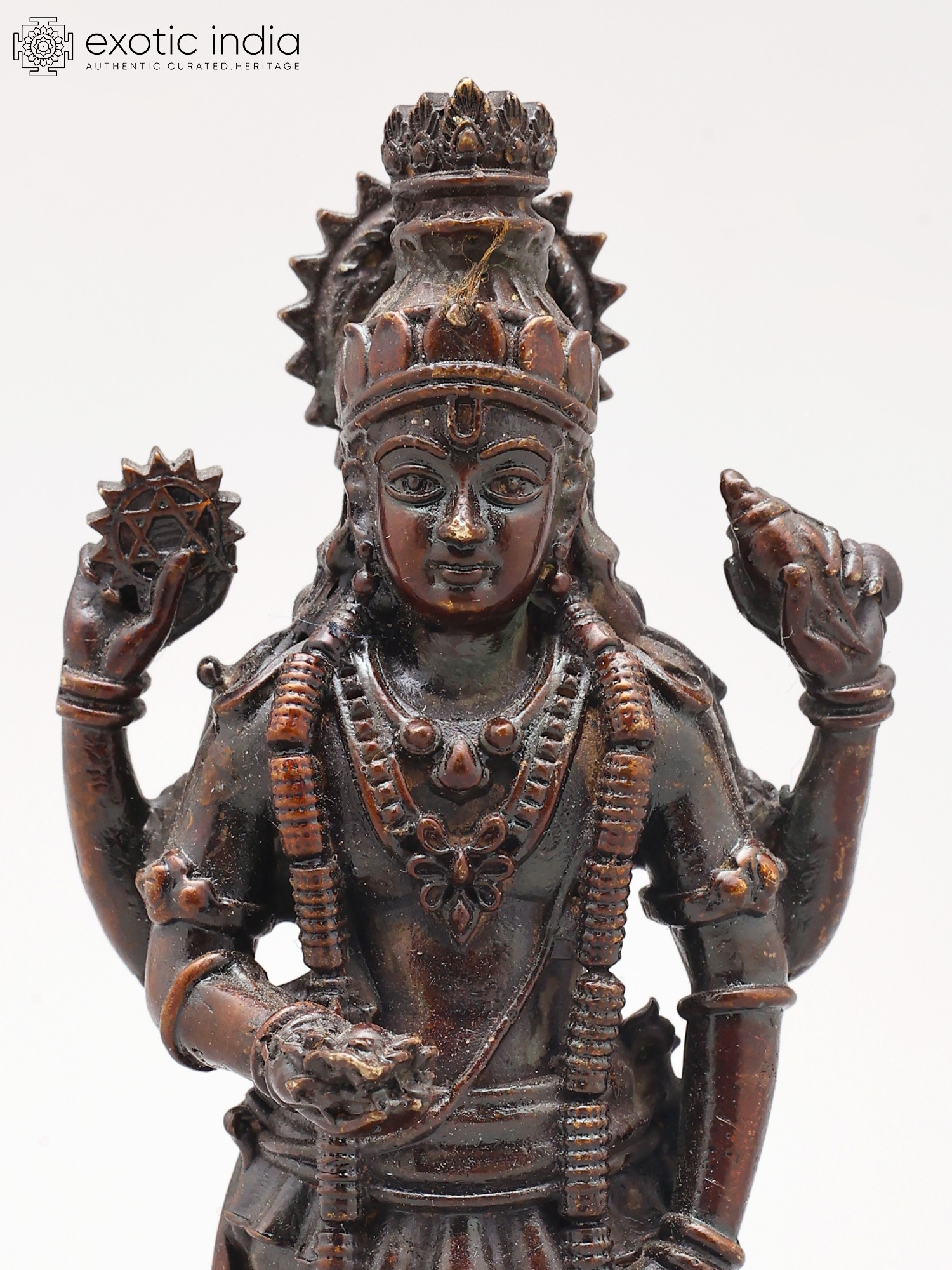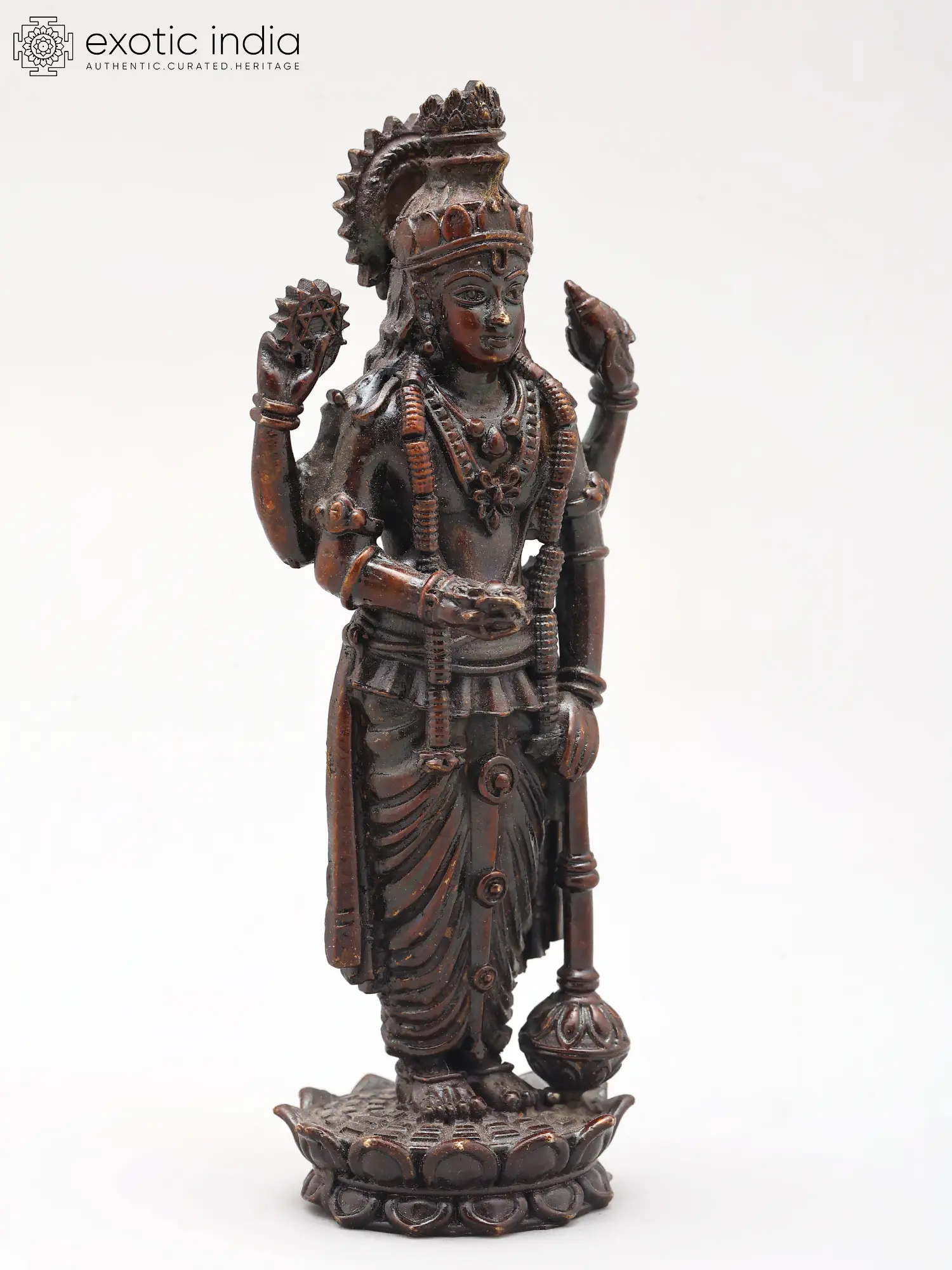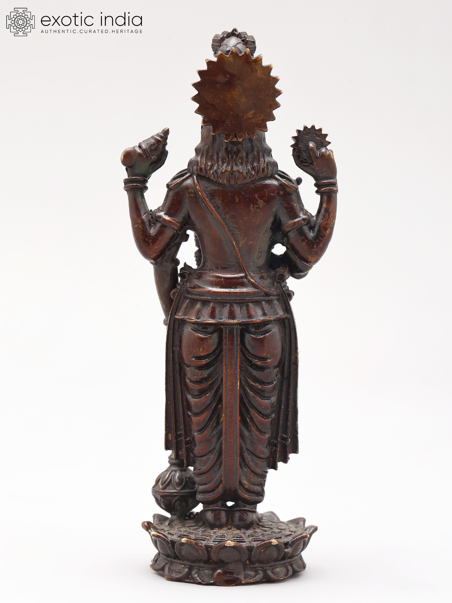 13" Four Armed Standing Lord Vishnu Brass Statue | Home Temple Murti