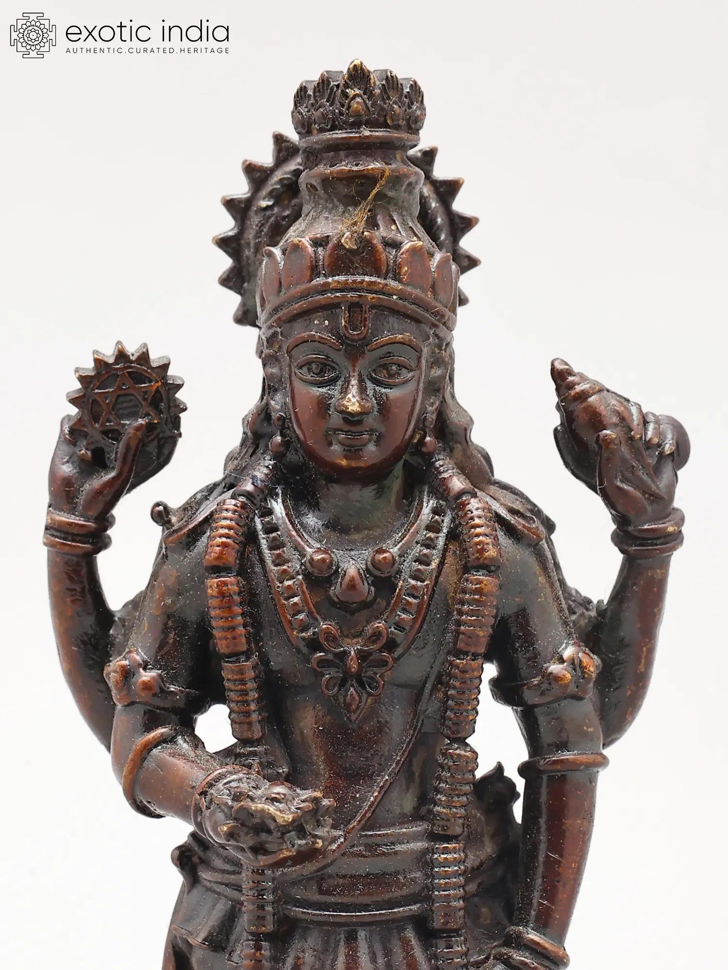 4" Small Four Armed Lord Varaha (Vishnu) with Goddess Lakshmi | Copper Statue | Made in India