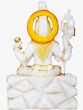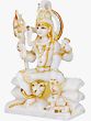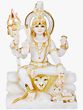 This exquisite statue captures the divine presence of Lord Shiva, the Mahadeva, seated serenely in his celestial abode, Mount Kailasha. Crafted from pure white marble, the sculpture embodies purity, divinity, and an aura of profound peace. The four arms of Shiva are depicted in various symbolic postures, each conveying a significant aspect of his divine power and responsibilities. In one hand, he holds the Trishula, the trident, representing the three gunas (Sattva, Rajas, Tamas) and his role as the destroyer of evil. Another hand gently rests on Nandi, the bull, his devoted vahana, symbolizing dharma, strength, and unwavering loyalty. The remaining hands are in mudras that offer blessings and assurance to his devotees.