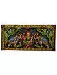 The entire panel is bordered in yellowish green lotus petals and four flowers sticked on all the four corners. By keeping a base of charcoal grey, sculptor has enthusiastically highlighted all the colors and figurines of this wall hanging. Both the sides are acquired with large bushes coiled majestically from the top. Place this thick Gajalakshmi wooden wall hanging on any empty wall to have an enchanting view to the room, focussing on the aesthetics and the divinity of this wooden art.