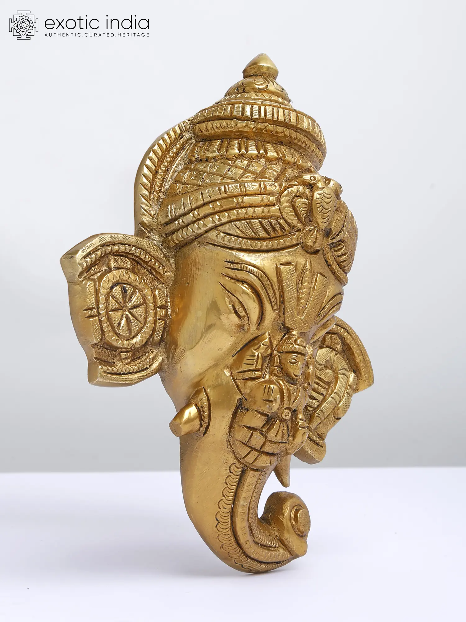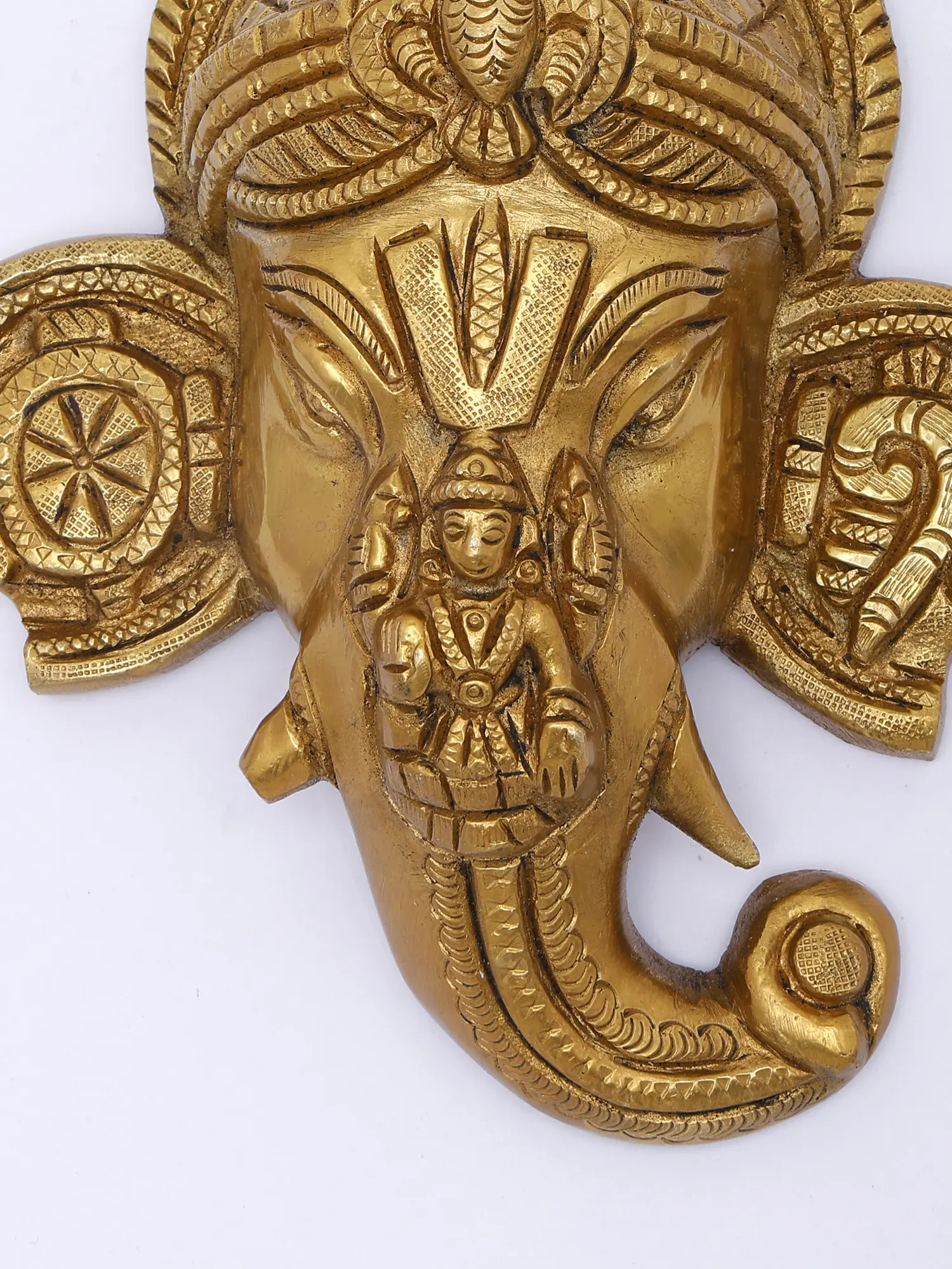 Ganesha as the sacred, first-revered one forms the space, inhabited by the goddess of wealth, Maa Lakshmi seated on a lotus emerging from his trunk, Gandabherunda- the two-headed eagle, a form of Vishnu on his crown, and the divine Shankha and Chakra of Narayana on his ears.