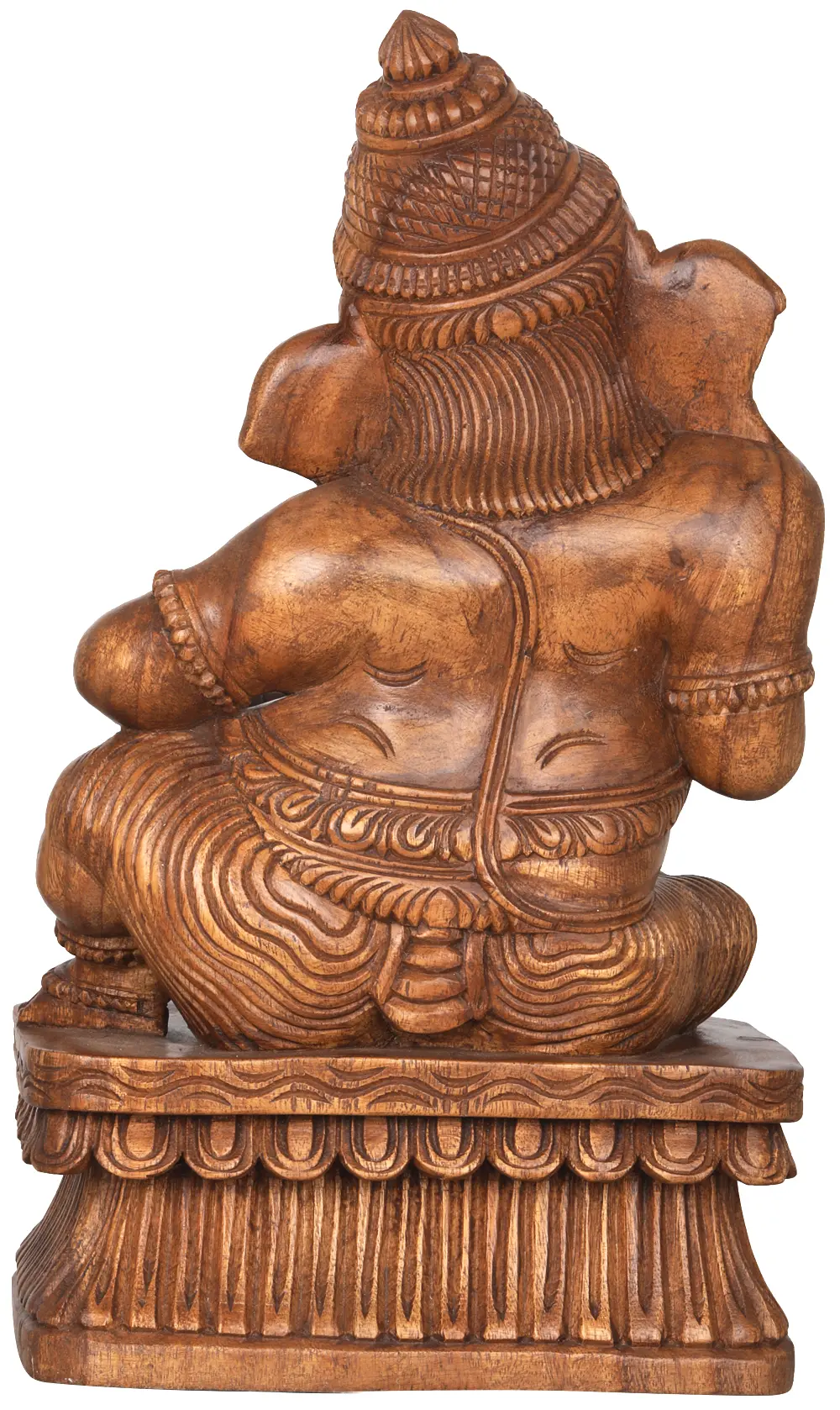 Hailing from the rich artistic traditions of South India, this carving is a testament to the skill and devotion of master artisans. Each detail, from the gentle curl of Ganesha's trunk to the intricate patterns on his headdress and ornaments, is meticulously rendered, bringing the divine form to life. The warm, natural tones of the wood lend a timeless and earthy feel to the sculpture, making it a truly captivating piece for any sacred space or home. The style of carving is reminiscent of the artistry found in ancient South Indian temples, where deities are depicted with profound spiritual depth and aesthetic grandeur. This piece is not merely a decorative item; it is a conduit of blessings, imbued with the spirit of centuries-old craftsmanship and unwavering faith.