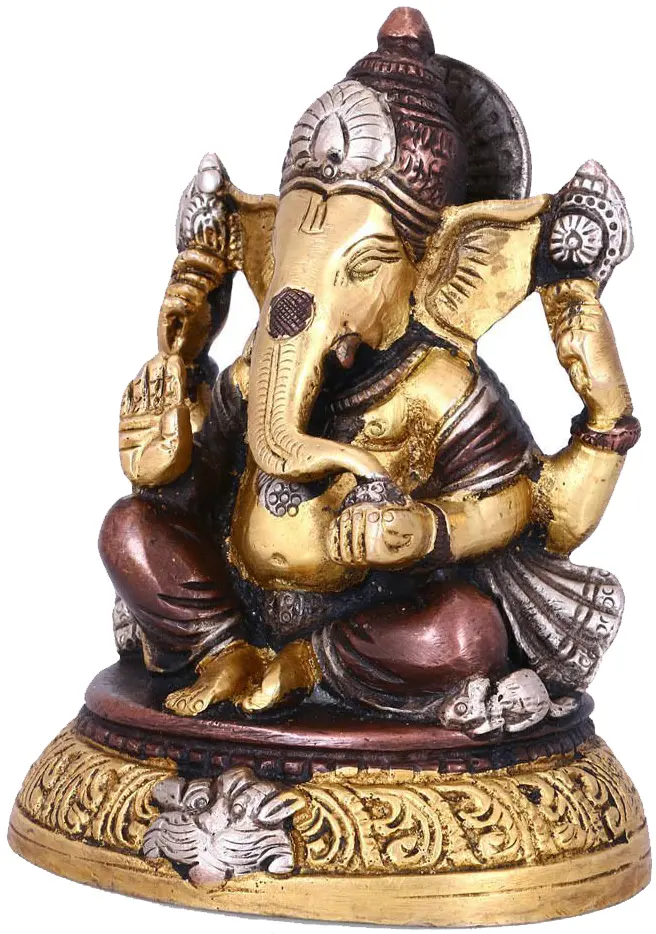 Invite divine blessings and auspicious beginnings into your home or workspace with this exquisite brass statue of Lord Ganesha, seated serenely upon an upturned lotus. This divine representation captures the essence of wisdom, intellect, and prosperity, embodying the beloved elephant-headed deity of Hinduism. Crafted with meticulous attention to detail, this piece is more than just a decorative item; it is a conduit for spiritual energy and a symbol of overcoming challenges.