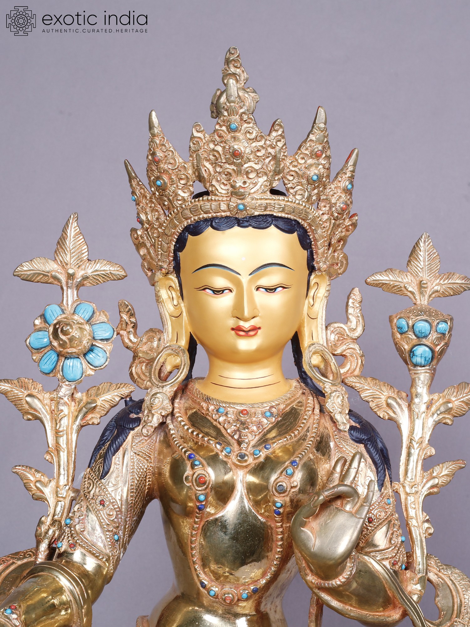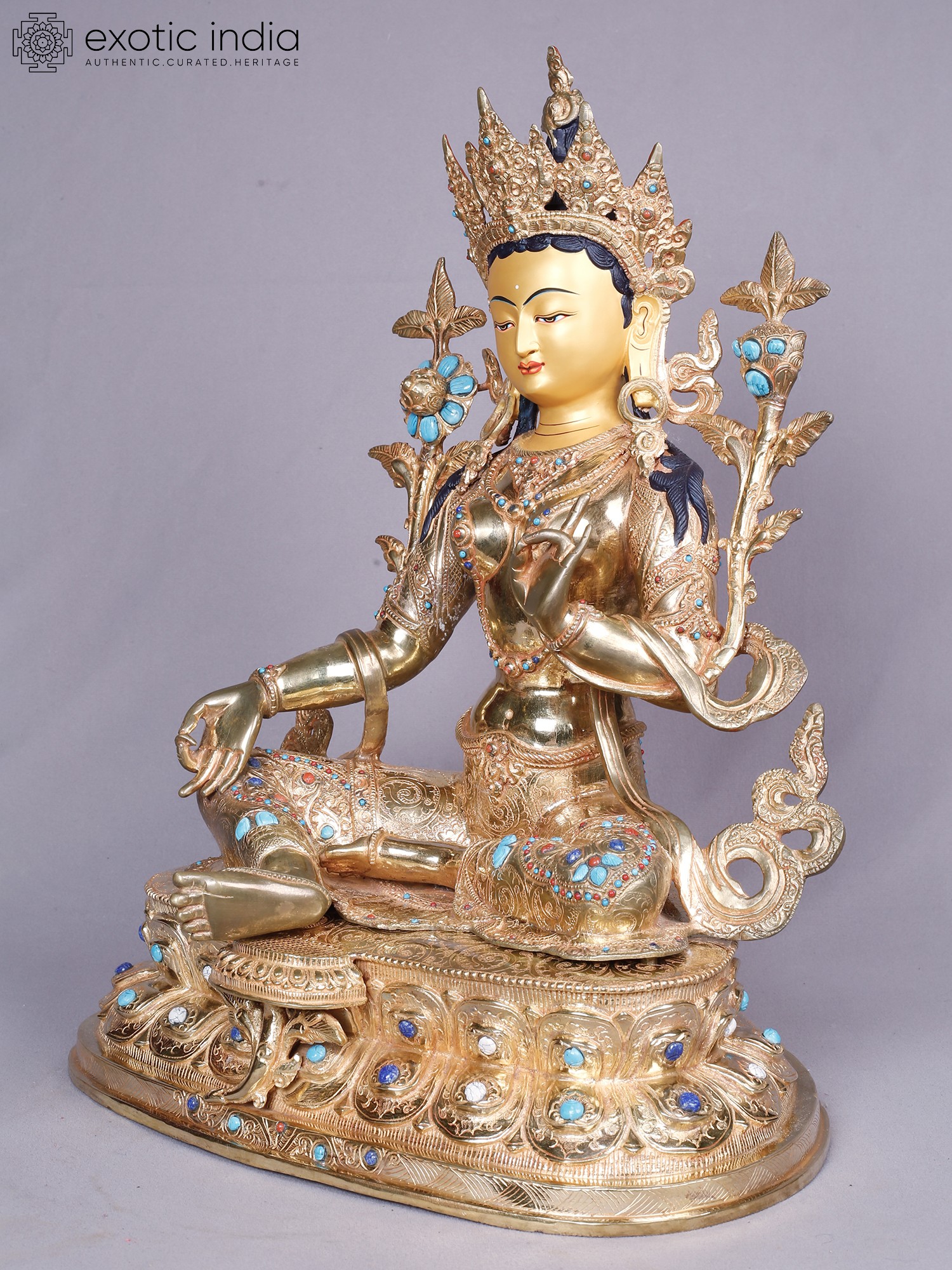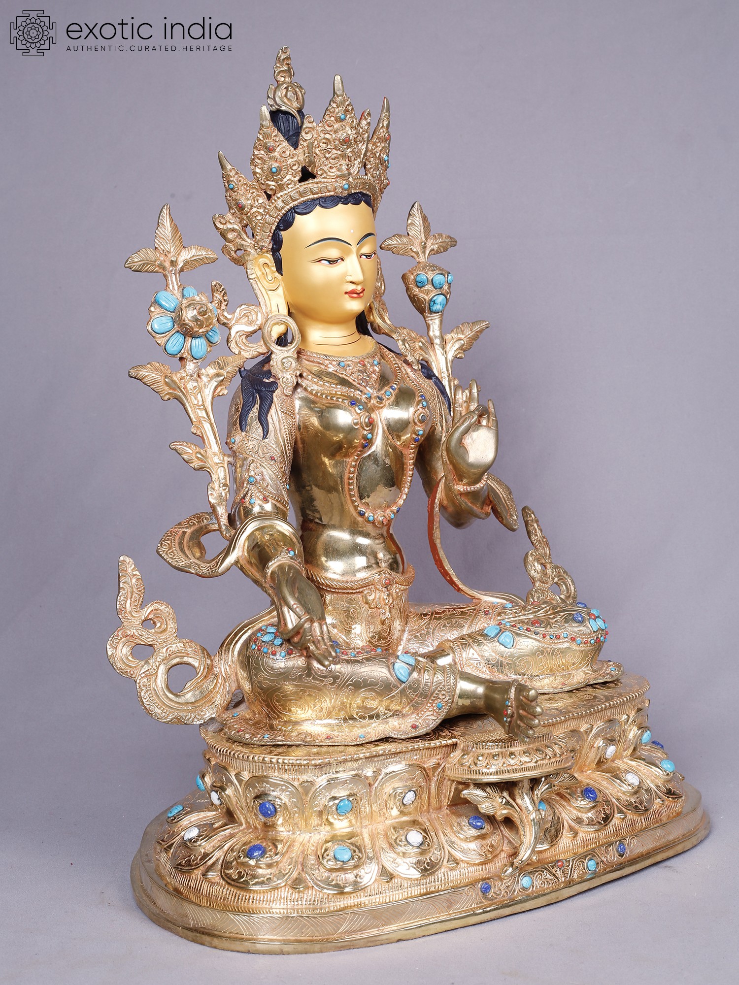 Goddess Green Tara | Tibetan Buddhist Deity | Copper With Gold And Silver Plated