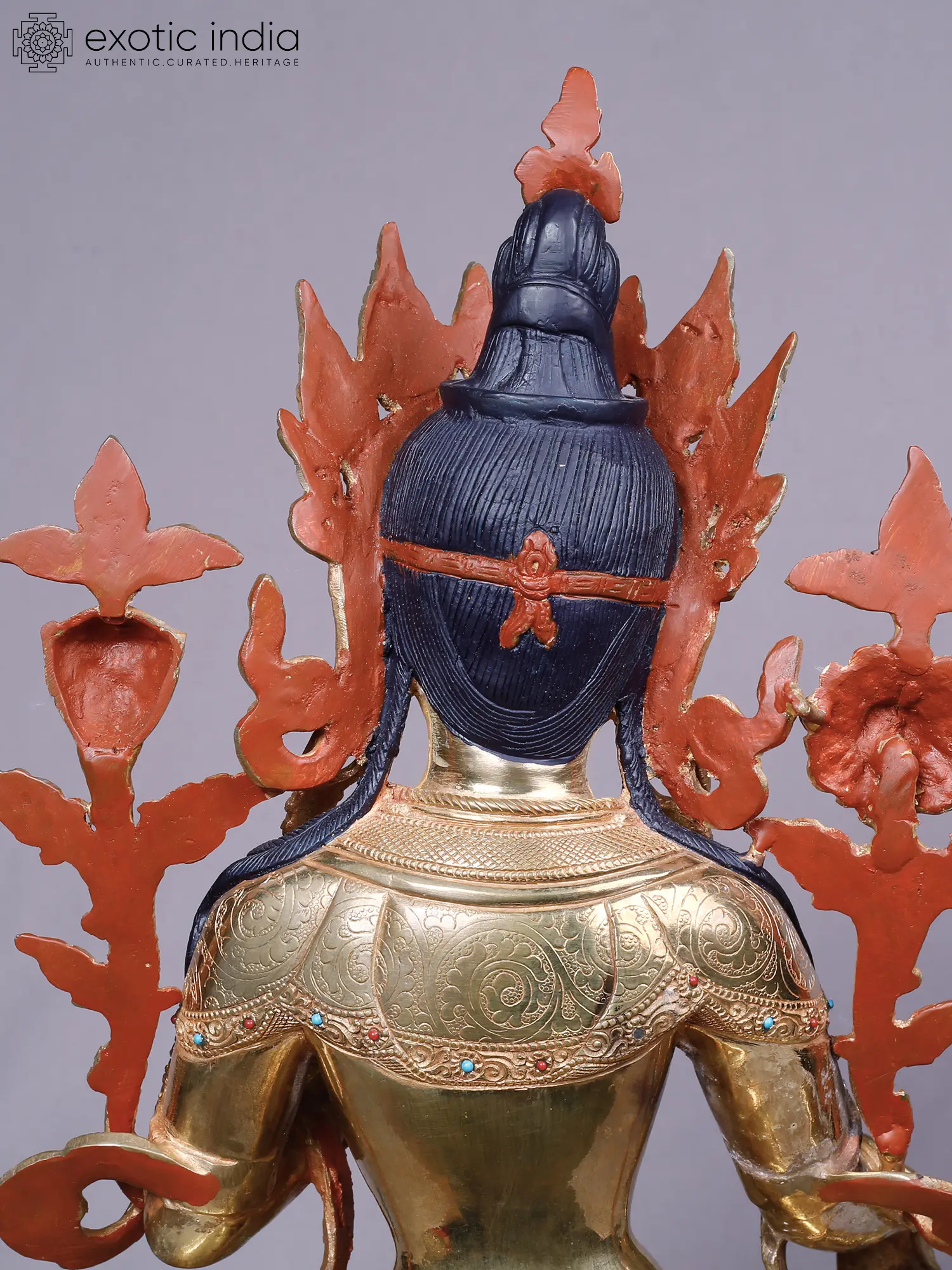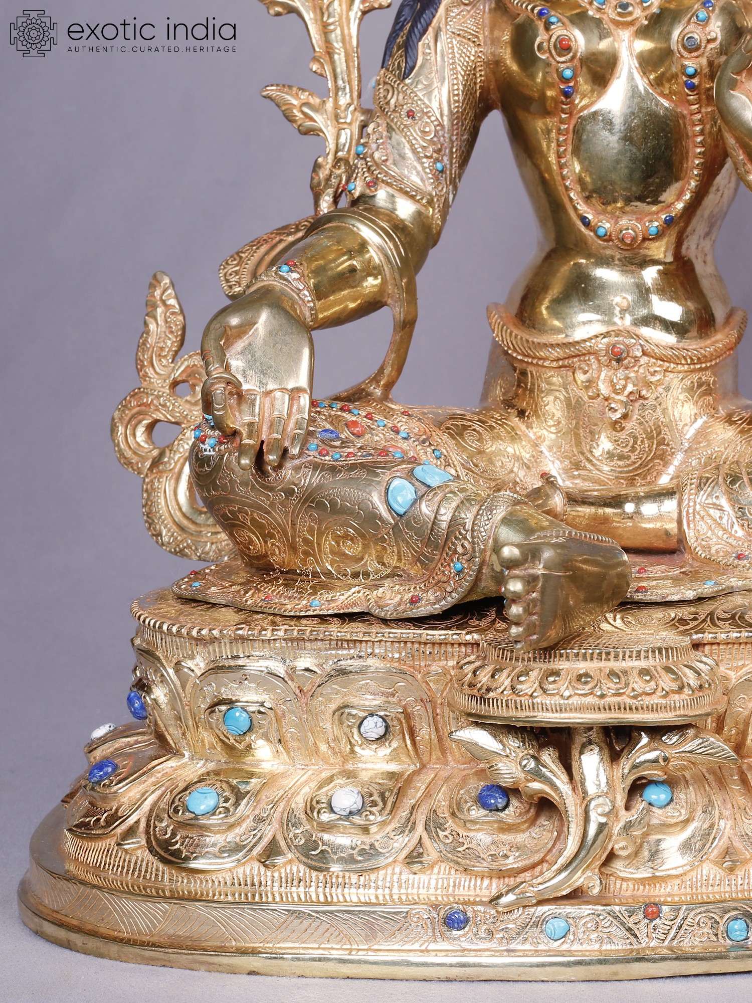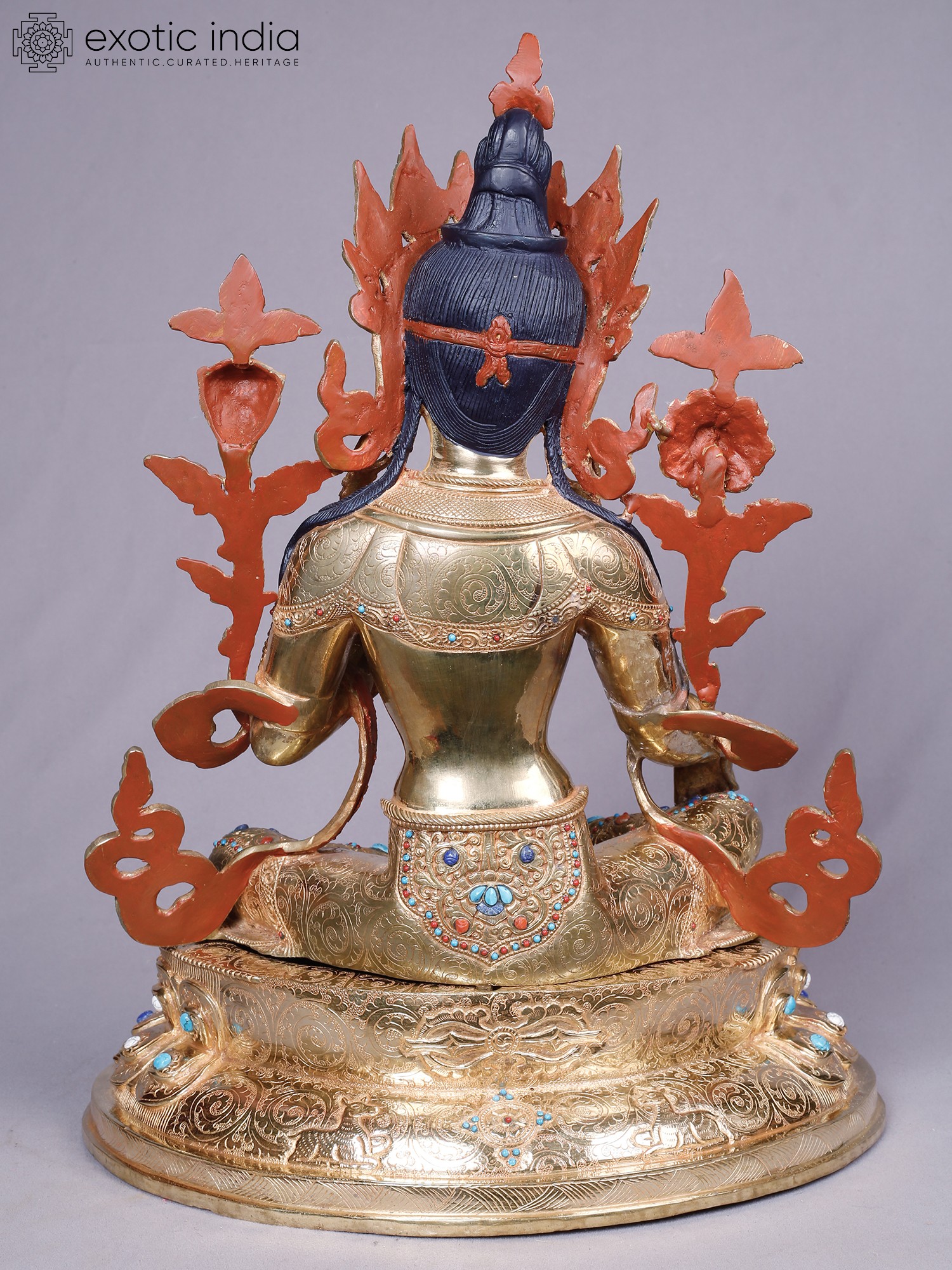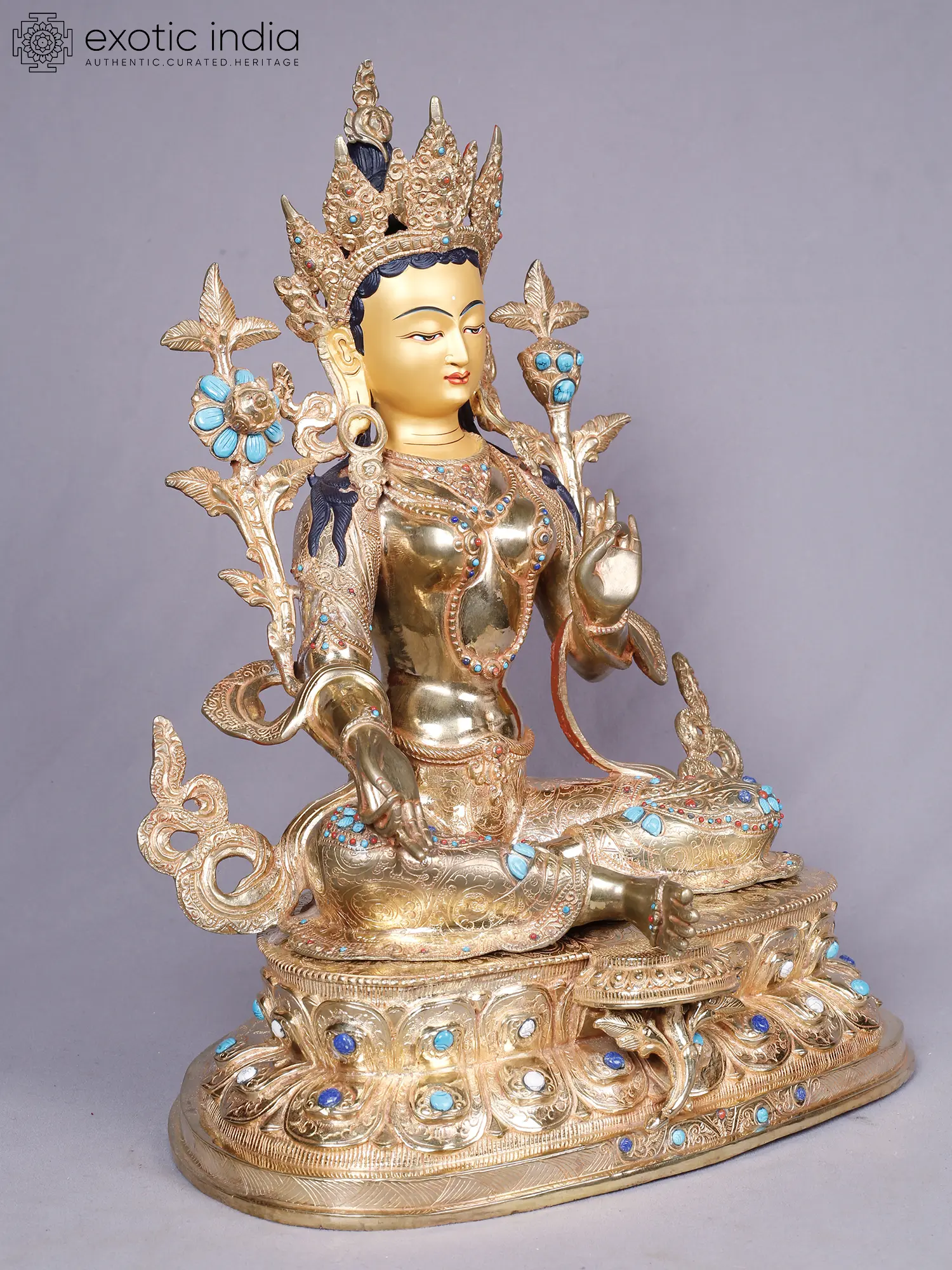 15" Buddhist Goddess Green Tara Idol | Gilded Copper Statue from Nepal