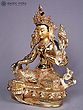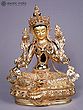 5" Colorful Buddhist Goddess Green Tara Idol from Nepal | Copper Gilded with Gold