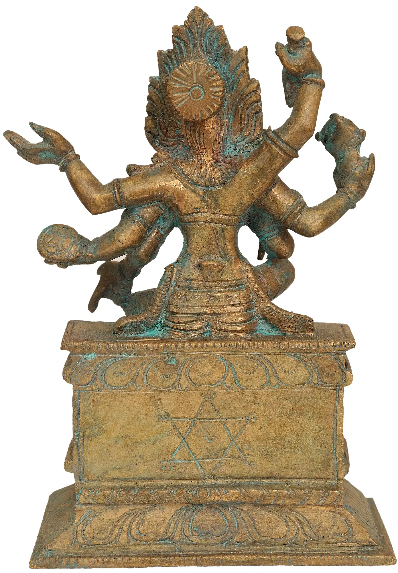 This statue of Goddess Kali is more than just a decorative object; it is a conduit to spiritual energy and a symbol of profound divine power. Whether placed in a home altar, a meditation space, or as a striking centerpiece, it invites contemplation on themes of destruction and creation, transformation, and liberation. It serves as a reminder of the cyclical nature of existence and the goddess's omnipresent protection and guidance. Embrace the potent energy and the deep spiritual significance of this captivating South Indian bronze, a truly remarkable piece of sacred art.