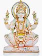This exquisite white marble statue captures the divine presence of Goddess Lakshmi, the revered deity of wealth, fortune, and auspiciousness in Hindu traditions. Crafted with meticulous detail and adorned with vibrant accents, this sculpture is a testament to the artistry of skilled artisans, bringing a touch of sacred beauty and spiritual significance into your home or sacred space. The serene expression on her face, the gentle posture, and the auspicious symbols she holds all speak of her benevolent nature and her role as the bestower of prosperity.