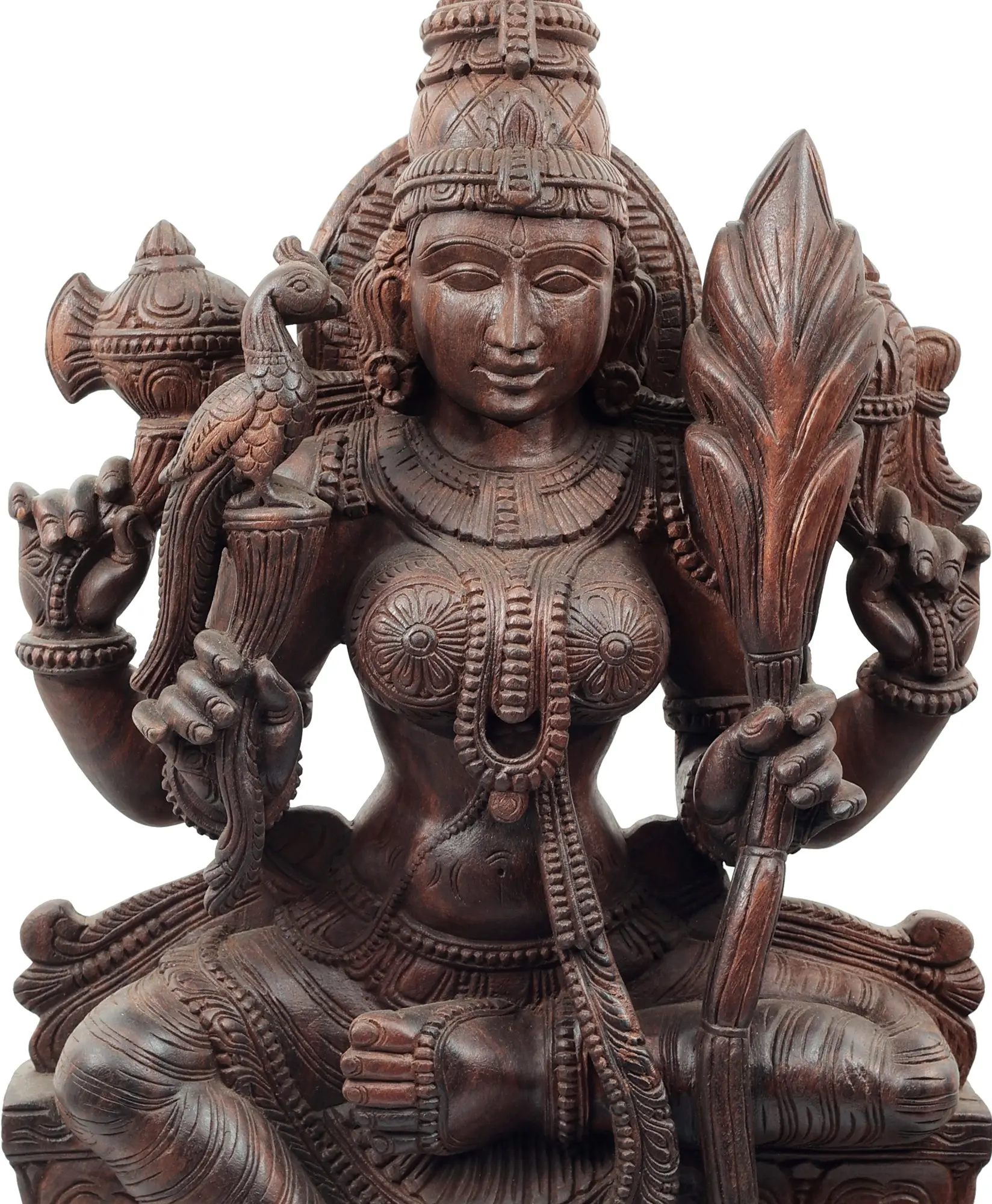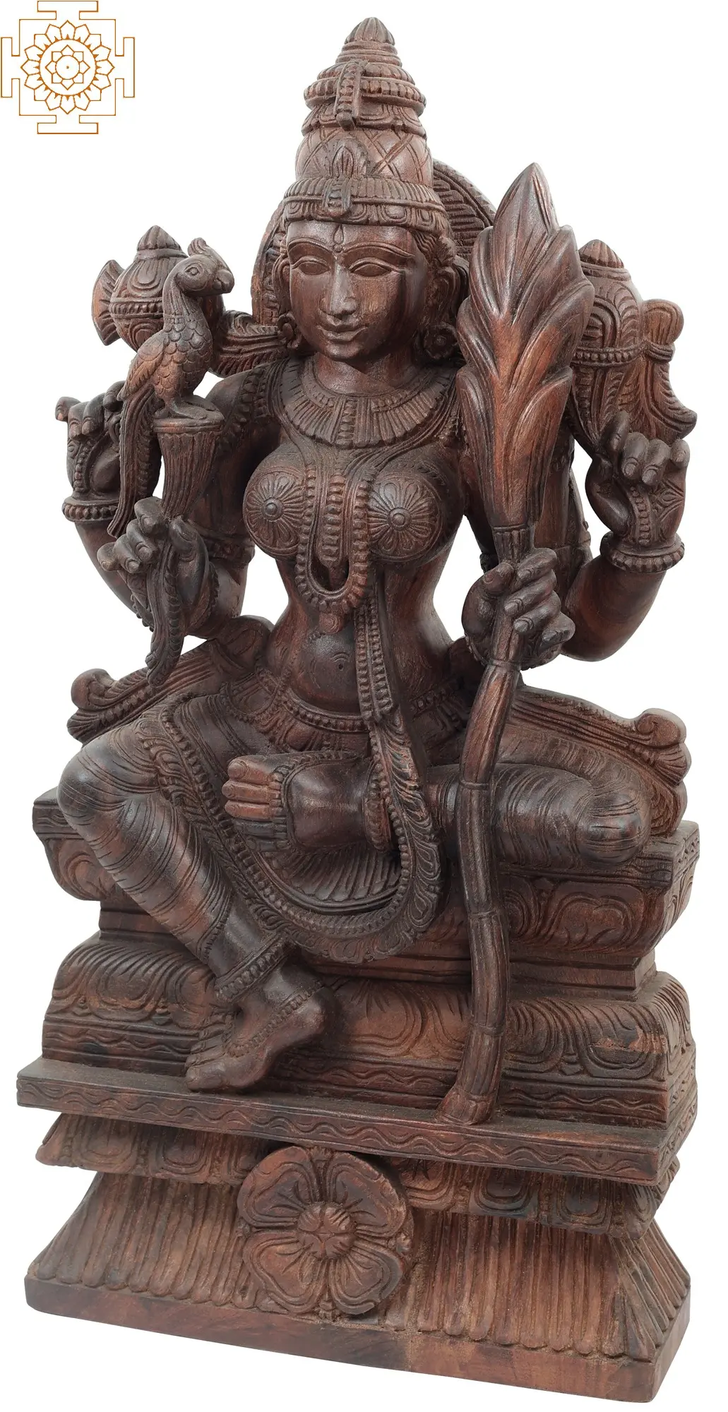 This remarkable carving is a testament to the rich tradition of South Indian temple artistry. For centuries, artisans in this region have been shaping wood into sacred forms, infusing each piece with devotion and profound spiritual understanding. The wood, chosen for its inherent beauty and durability, has been expertly carved to reveal the delicate folds of her garments, the intricate ornamentation of her jewelry, and the gentle curve of her posture. Each stroke of the chisel has been guided by a deep reverence for the divine, resulting in a sculpture that is not merely an object of art but a conduit for spiritual connection. Displaying this carving in your home or sacred space invites the benevolent presence and blessings of Goddess Rajarajeshwari, fostering an atmosphere of beauty, prosperity, and spiritual awakening.
