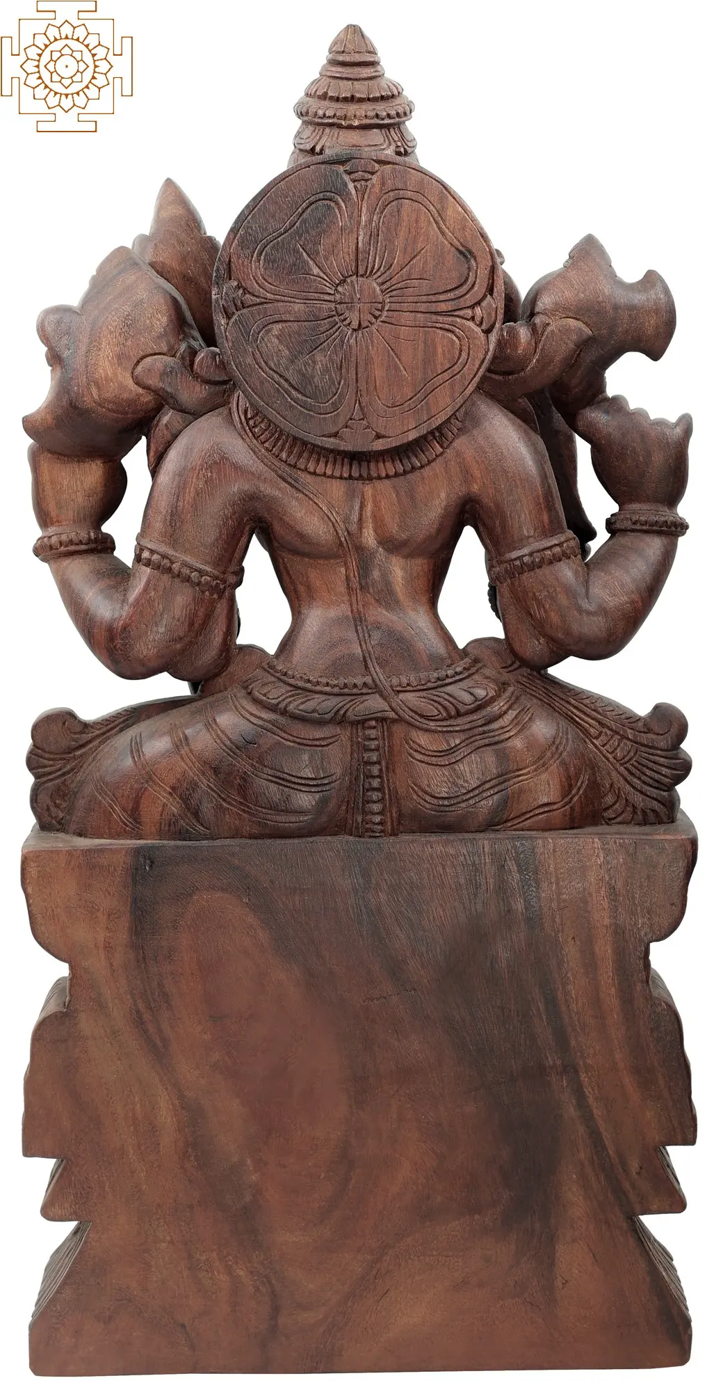Gaze upon this exquisite South Indian temple wood carving, a magnificent depiction of Goddess Rajarajeshwari, also known as Tripura Sundari. She is one of the ten Mahavidyas, a group of powerful tantric goddesses, and is revered as the most beautiful and auspicious of them all. In her form as Tripura Sundari, she embodies ultimate beauty, grace, and spiritual fulfillment, representing the serene yet potent cosmic consciousness that governs the universe. The intricate details of this carving, meticulously handcrafted by skilled artisans, bring to life the divine essence of this revered deity.