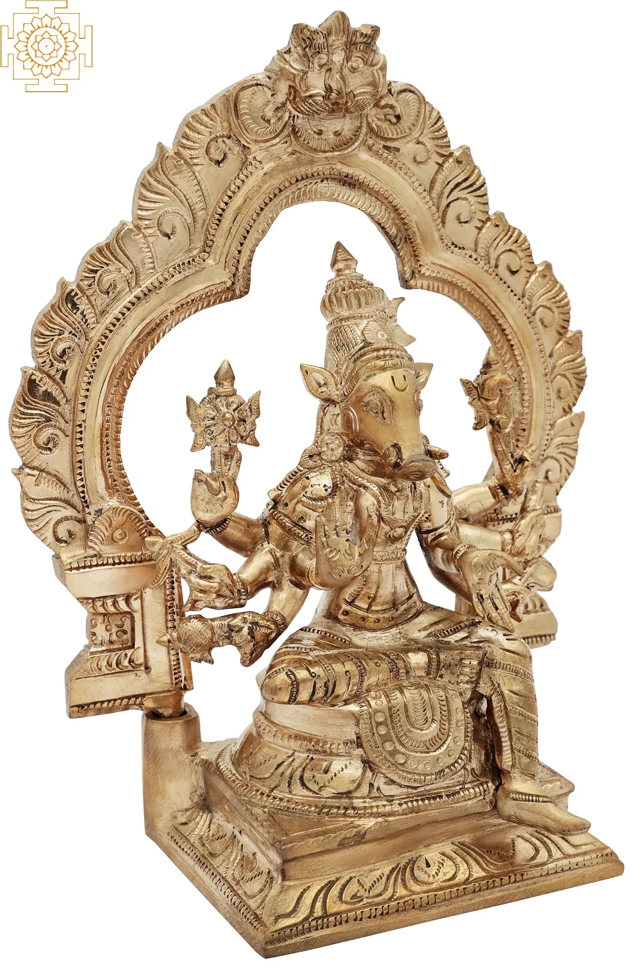 7" Eight Armed Sitting Goddess Varahi | Brass Statue