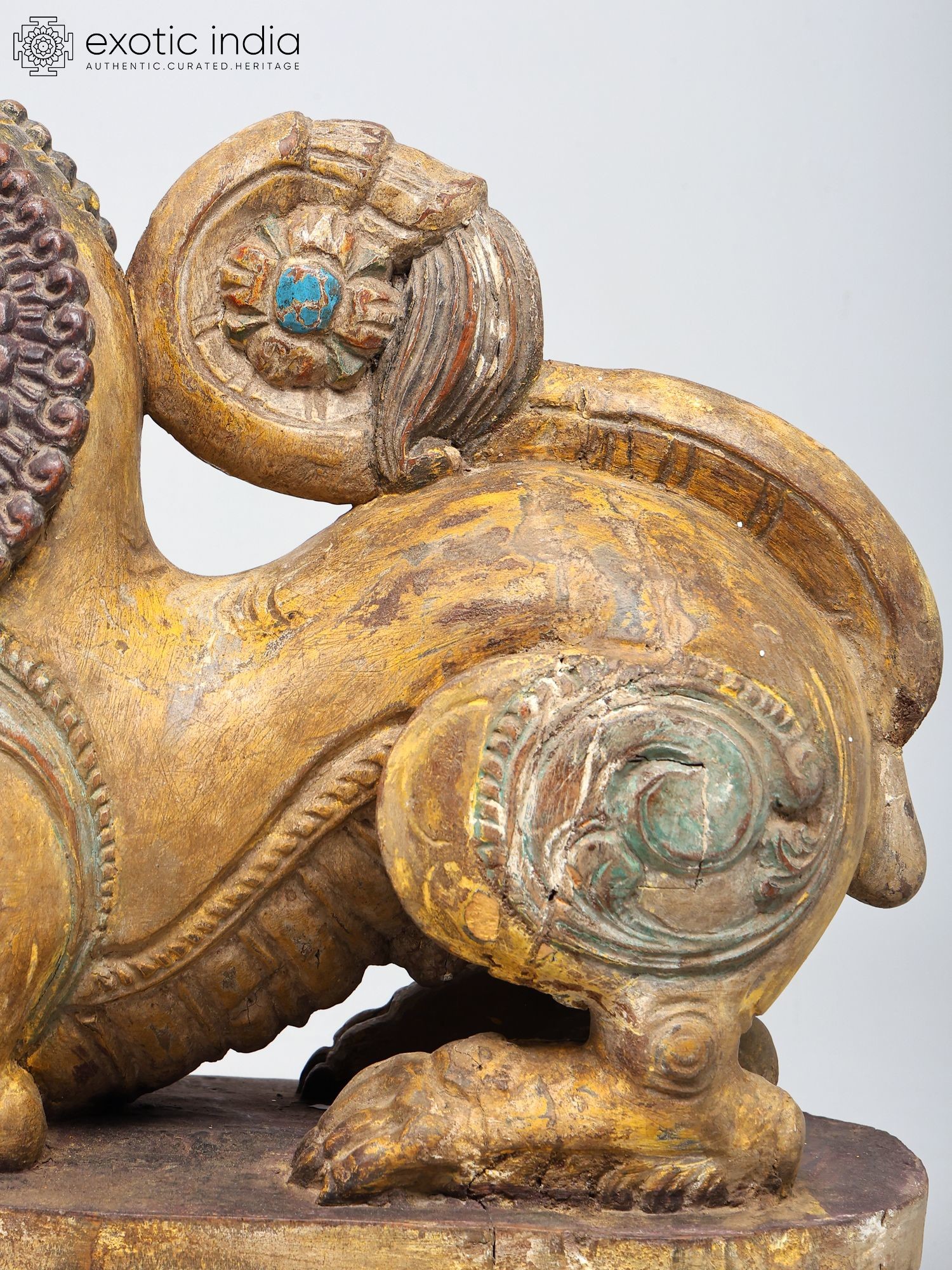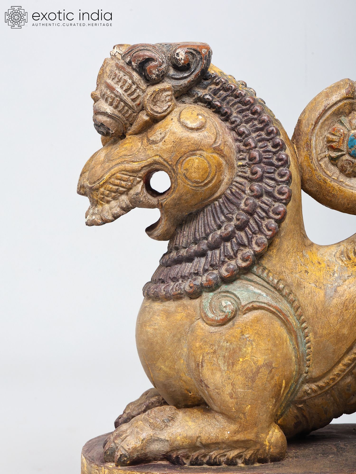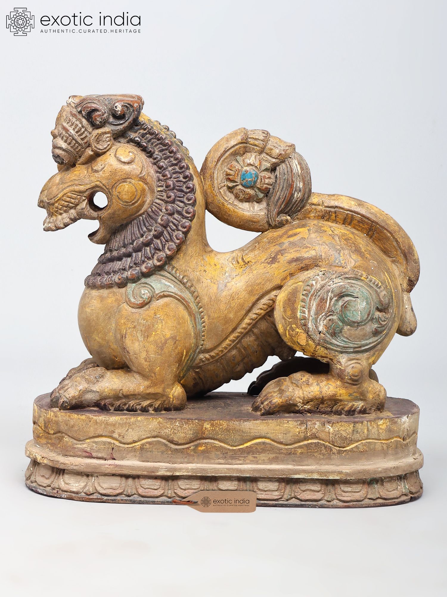 Majestic Yali Wooden Sculpture