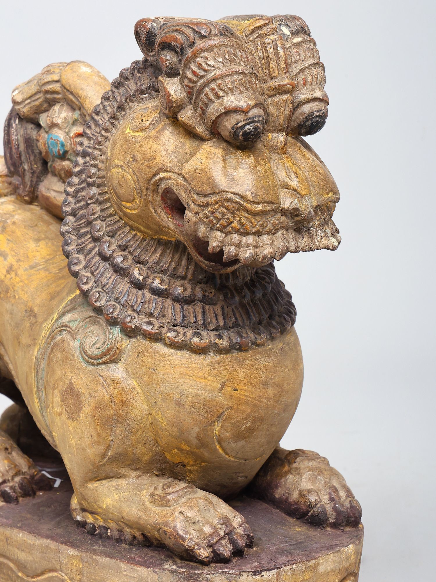 36" Large Pair of Yali | Wood Carved Statues