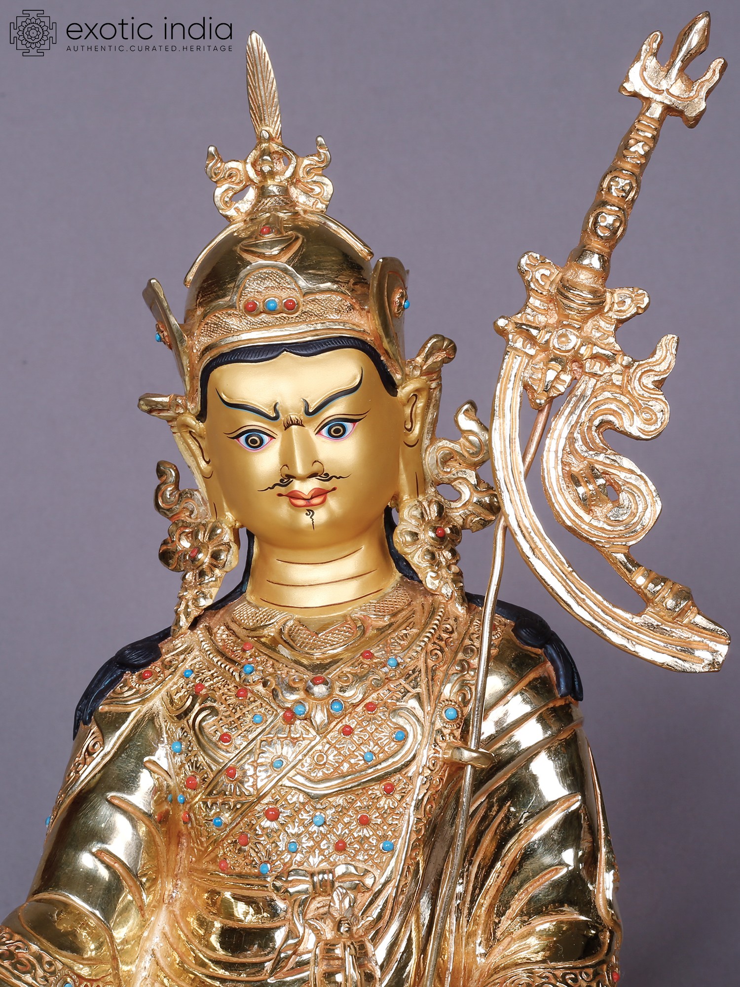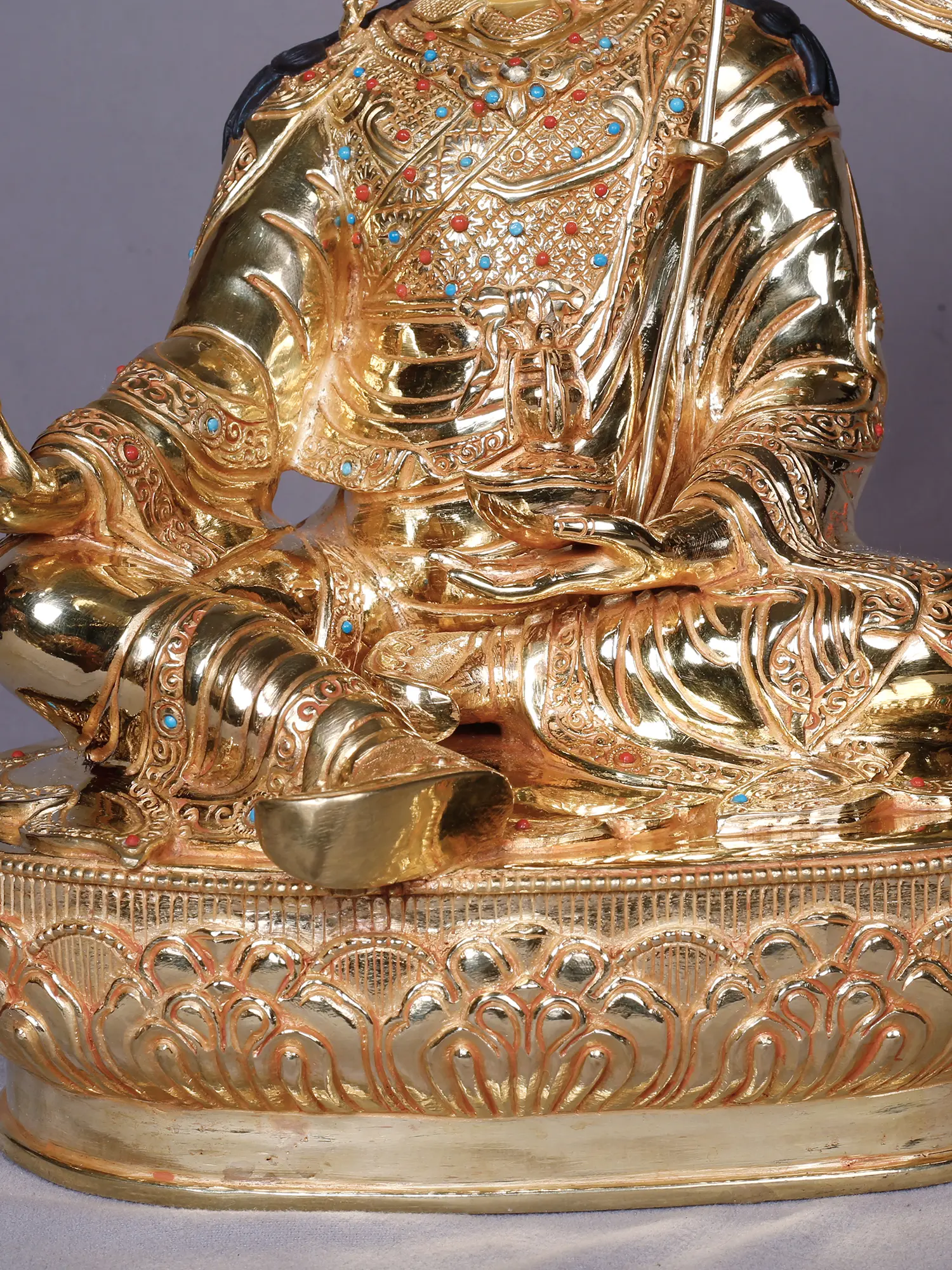 8" Guru Padmasambhava Idol | Copper Statue Gilded with Gold