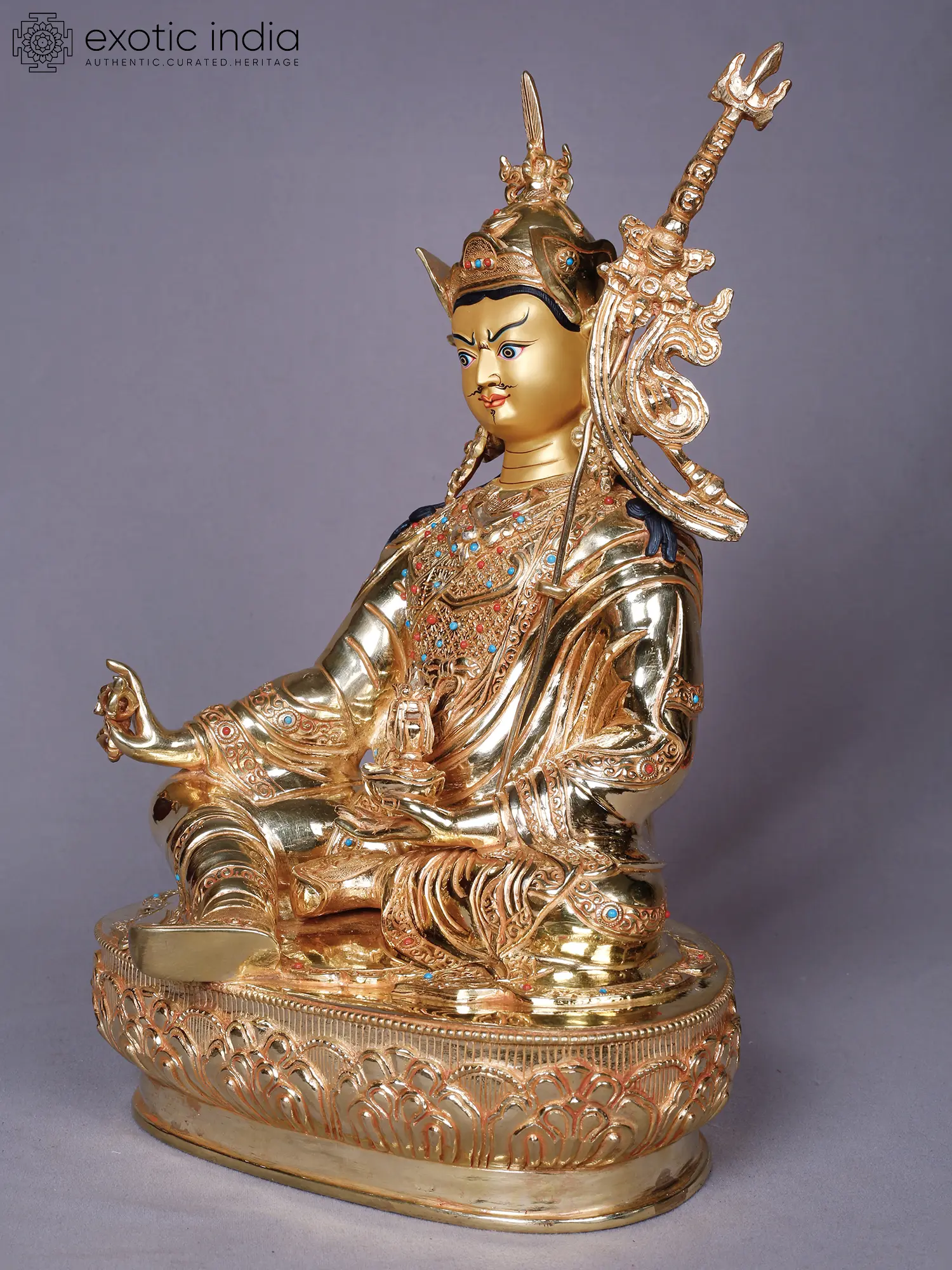 14" Guru Padmasambhava Idol | Gilded Copper Statue from Nepal