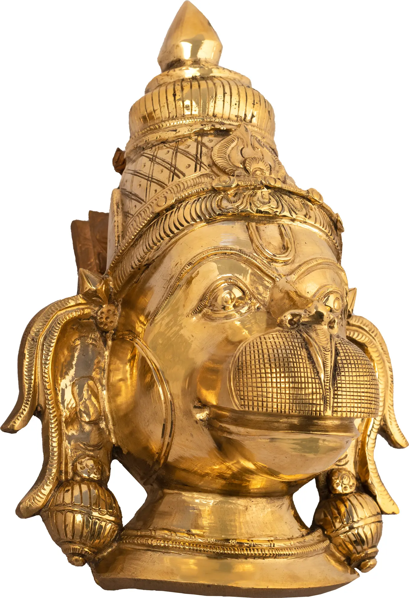 Each curve and line of this mask speaks to the rich artistic heritage of South India. The Swamimalai bronze casting tradition, passed down through generations, ensures that every piece is a testament to meticulous craftsmanship and an understanding of sacred iconography. The panchaloha alloy, traditionally used for sacred objects, adds a layer of spiritual significance and ensures the longevity and enduring beauty of the artwork. The lustrous finish highlights the powerful features, from the determined set of the jaw to the piercing eyes that seem to hold untold stories of devotion and valor. This mask is designed to be a striking wall-hanging, commanding attention and serving as a focal point in any space, be it a prayer room, living area, or an esteemed art collection.