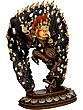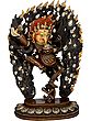 This exquisite copper sculpture, meticulously gilded with 24 karat gold, depicts a powerful and awe-inspiring deity, a guardian of profound spiritual truths. The figure is characterized by its striking crow's head, symbolizing sharp intellect, keen observation, and the ability to see through illusion. In many ancient cultures, crows are seen as messengers, possessing a dual nature—both earthly and celestial. Their presence often signifies transformation and the ability to navigate the liminal spaces between worlds. The deity's dynamic posture, with one leg raised and the other firmly planted, conveys a sense of primal energy and unwavering resolve. The outstretched wings, rendered with incredible detail and gilded accents, suggest dominion over the skies and the capacity to intervene swiftly in times of need. The intricate carvings and embellishments adorning the body speak to the divine and the sacred. Notice the multiple faces, each representing a different facet of consciousness and awareness, hinting at the deity's omniscience and all-encompassing vision. The third eye, prominently displayed on the forehead, signifies awakened insight and the ability to perceive reality beyond the ordinary senses.