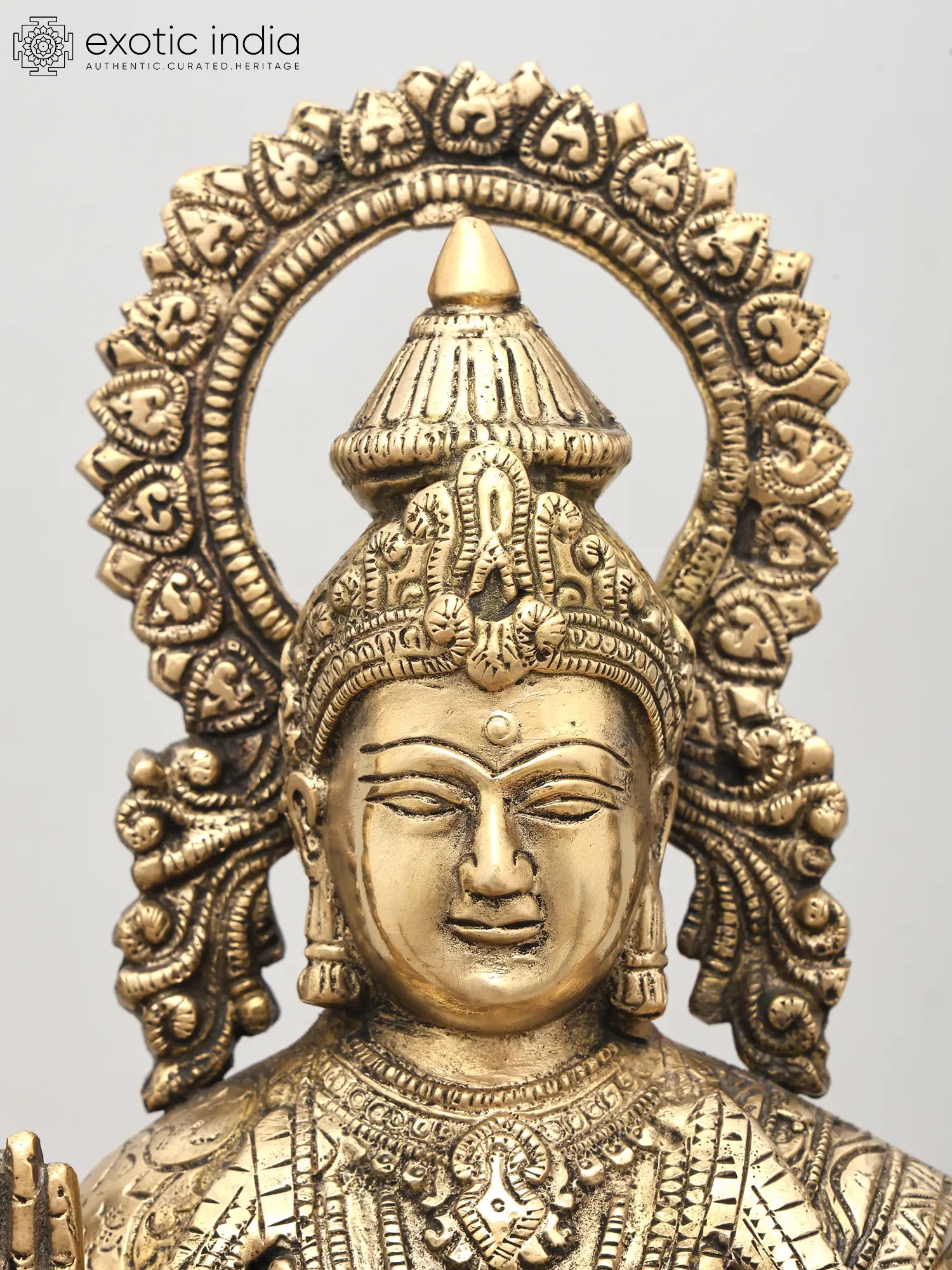 This exquisite brass sculpture captures the divine essence of Goddess Lakshmi, the revered deity of wealth, prosperity, and good fortune in Hinduism. Seated in the tranquil Kamalasana (lotus posture), she radiates an aura of serenity and abundance. The intricate craftsmanship, evident in every detail, speaks to the dedication and skill of the artisans who brought this divine form to life in India. Goddess Lakshmi is a central figure in Hindu mythology, often depicted as the consort of Lord Vishnu, the preserver of the universe. Her presence is believed to bestow material as well as spiritual wealth, bringing harmony and auspiciousness into homes and lives. She is invoked during festivals like Diwali, the festival of lights, where her blessings are sought for a prosperous year ahead. The lotus, her symbol, represents purity, beauty, and spiritual awakening, signifying that even amidst the worldly chaos, one can attain enlightenment.
