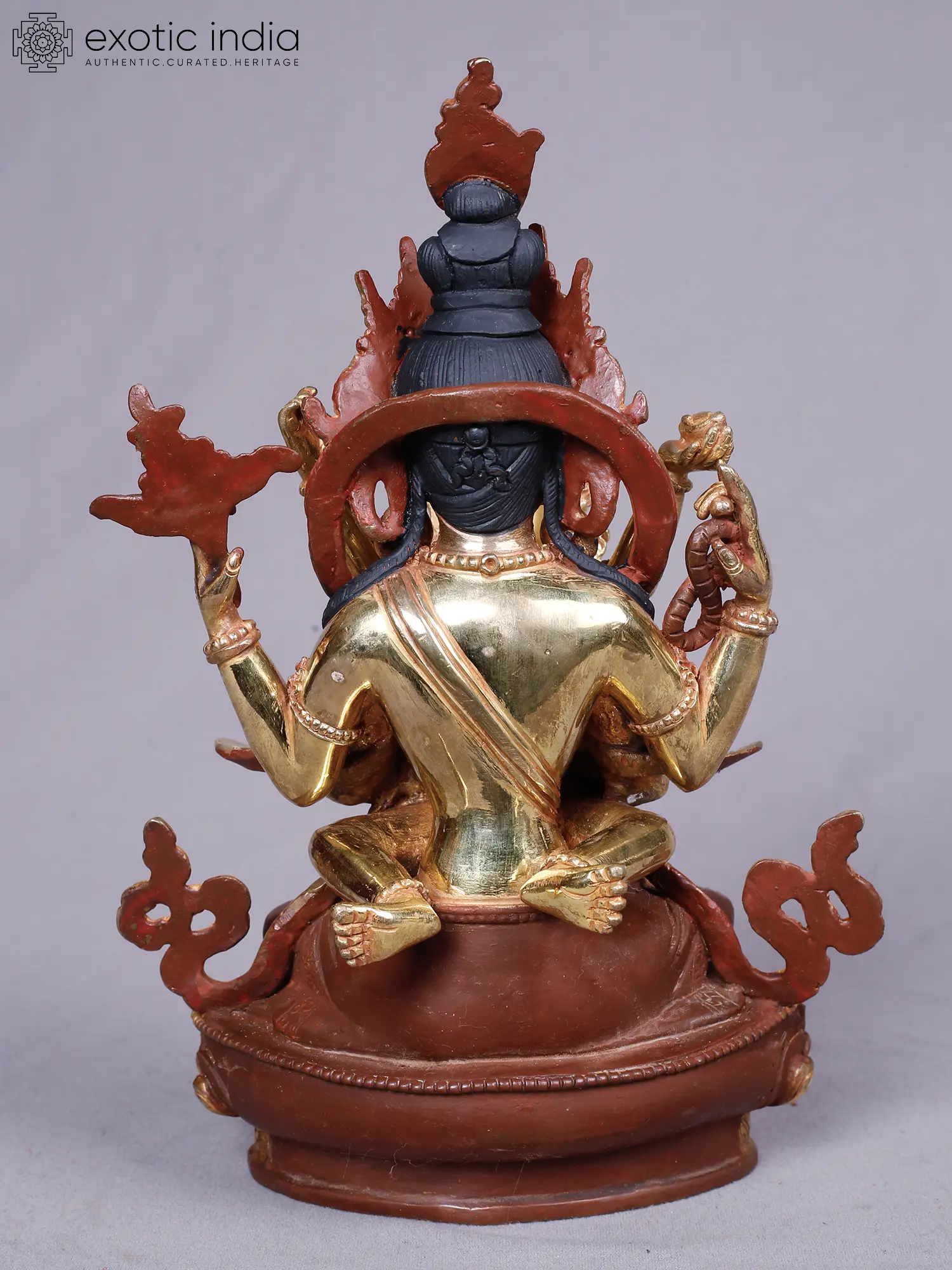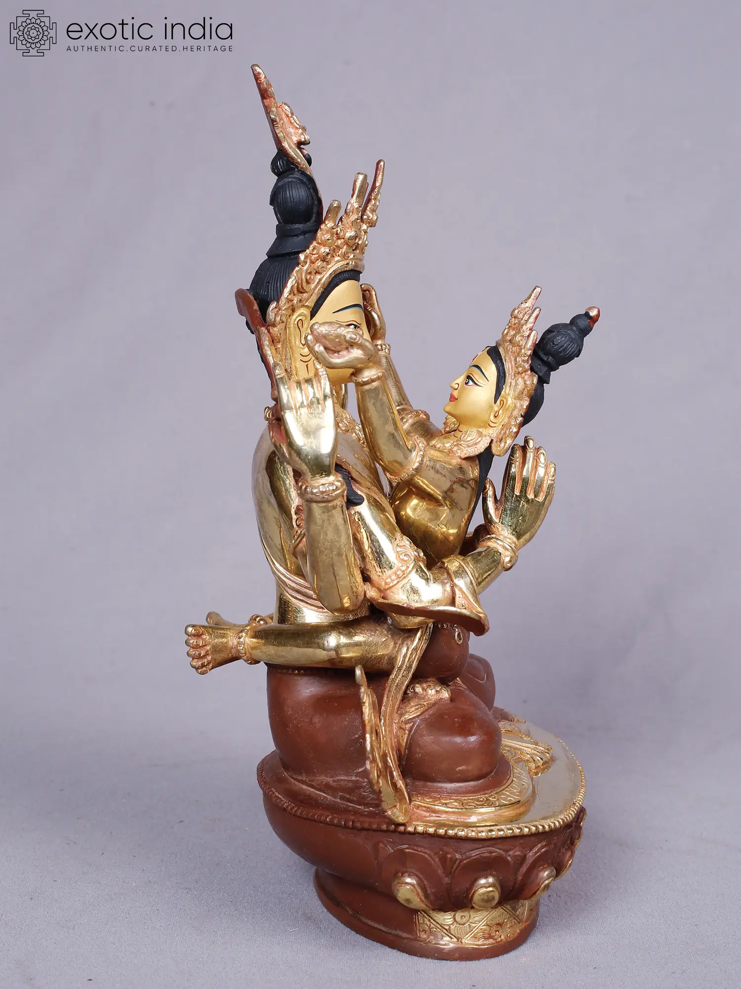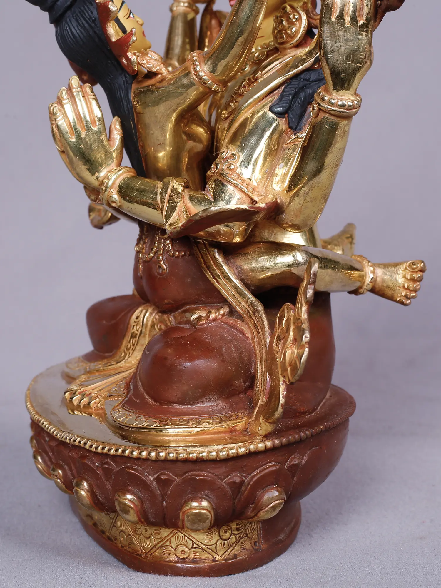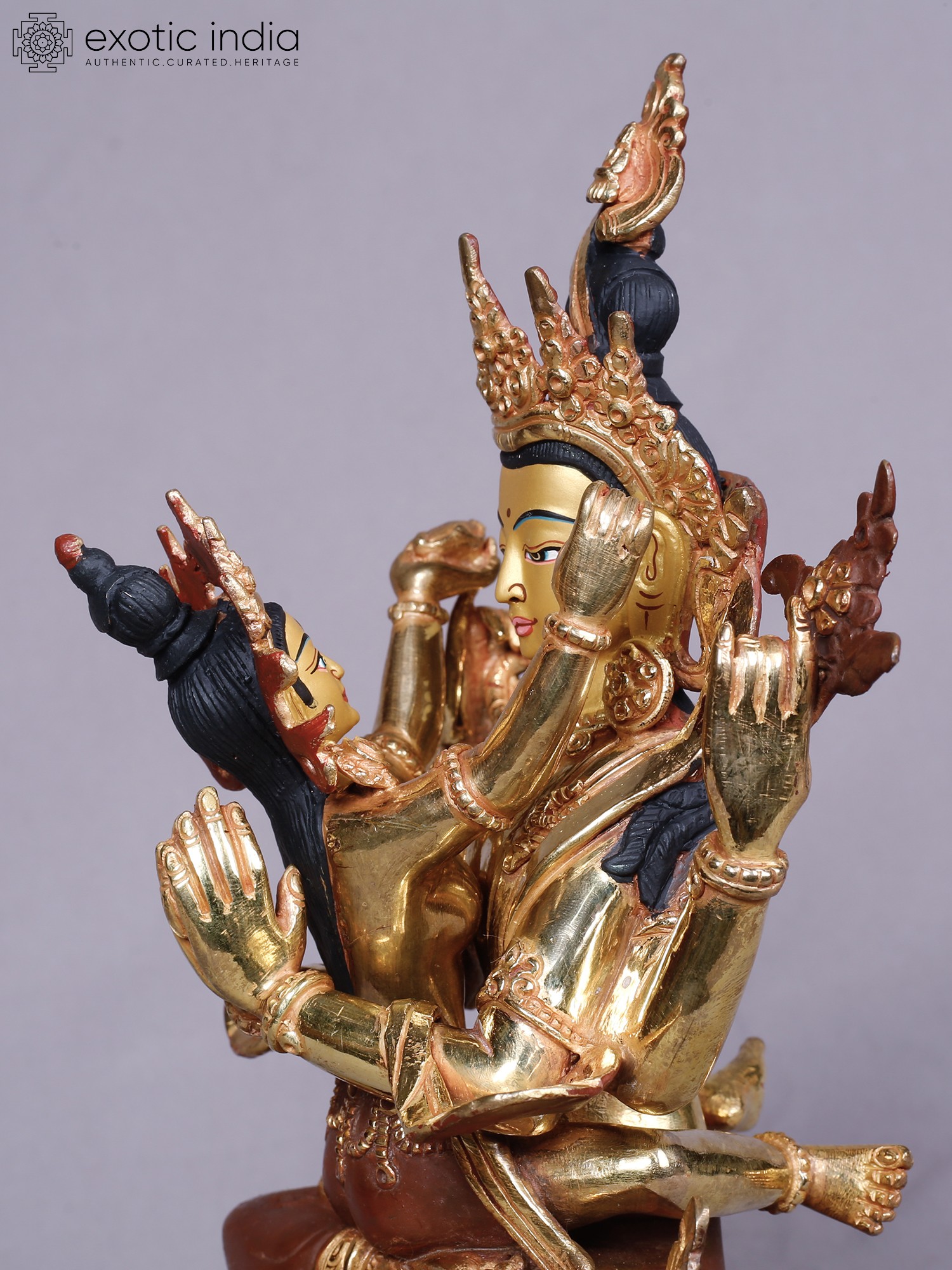 7" Buddhist Vajra Shakti Idol from Nepal | Copper Statue Gilded with Gold