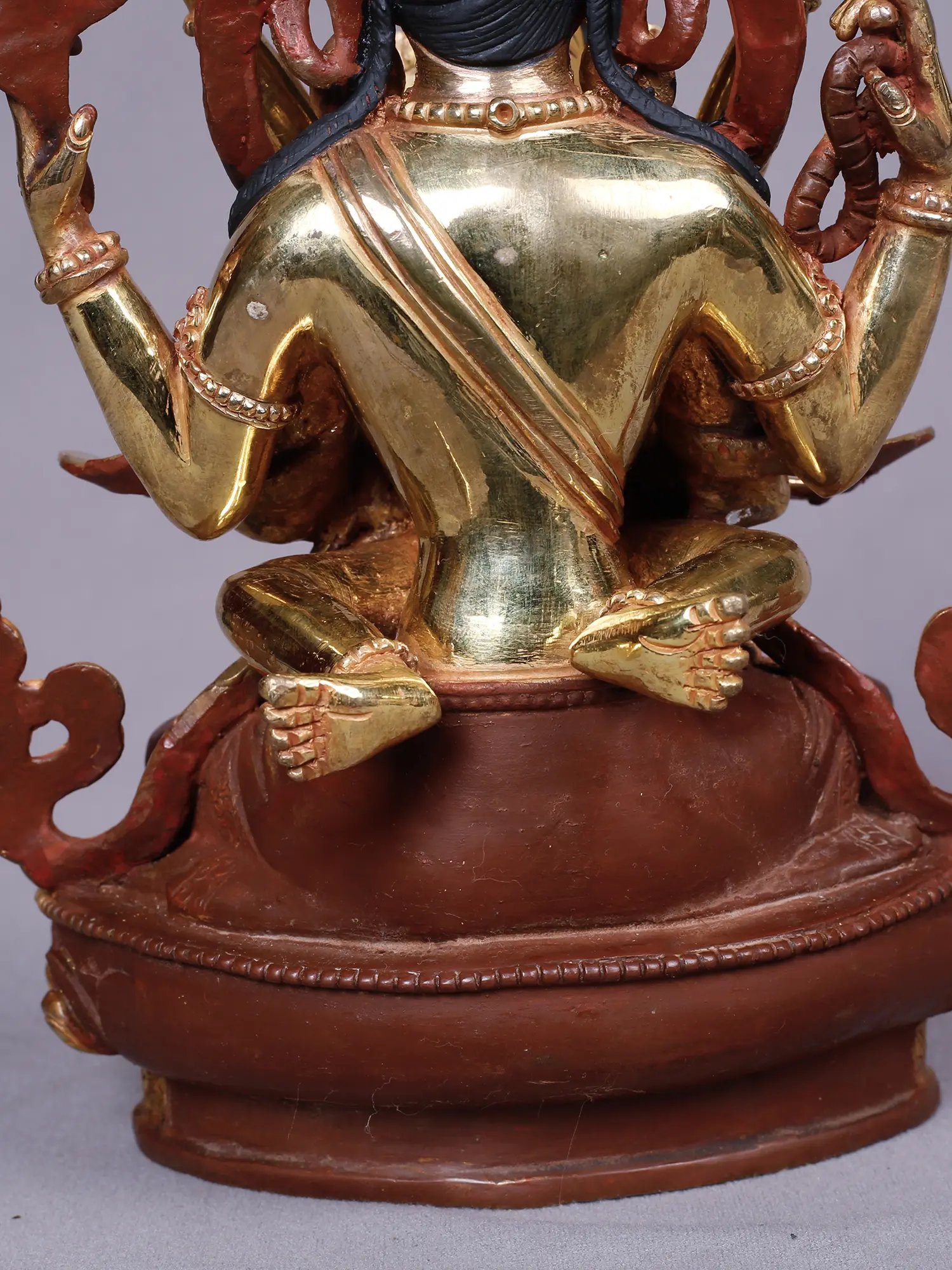 Four Armed Lord Kharcheri | Tibetan Buddhist Deity | Copper With Gold Plated