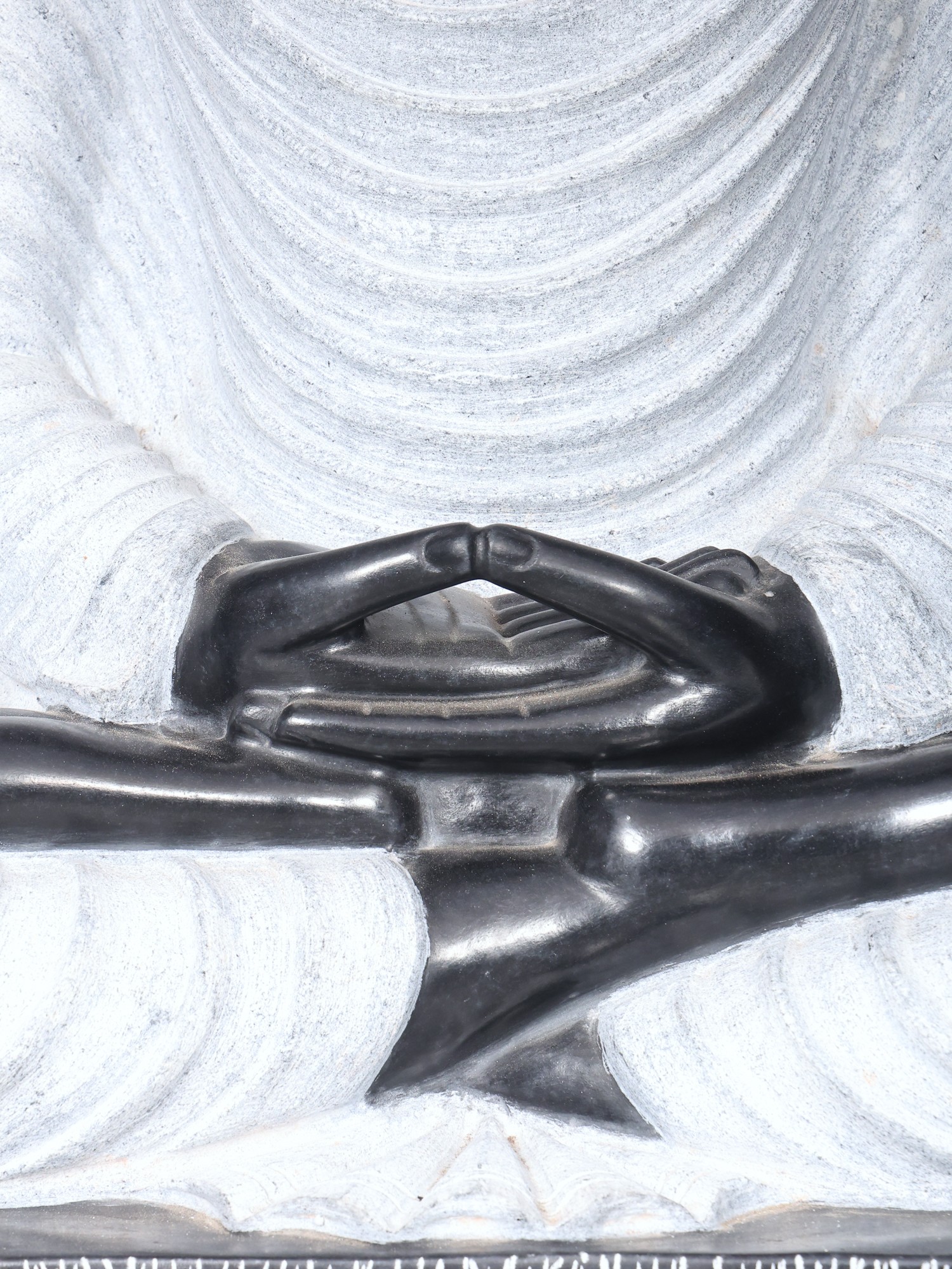The imposing scale of this piece, standing an impressive 72 inches tall, immediately commands attention. Its generous width and depth ensure a substantial presence, making it ideal for grand entrances or tranquil meditation rooms. You'll appreciate the subtle play of light and shadow across the textured marble, enhancing the sense of depth and the spiritual aura it emanates. The flowing robes of the seated figure are rendered with a fluidity that belies the hardness of the stone.