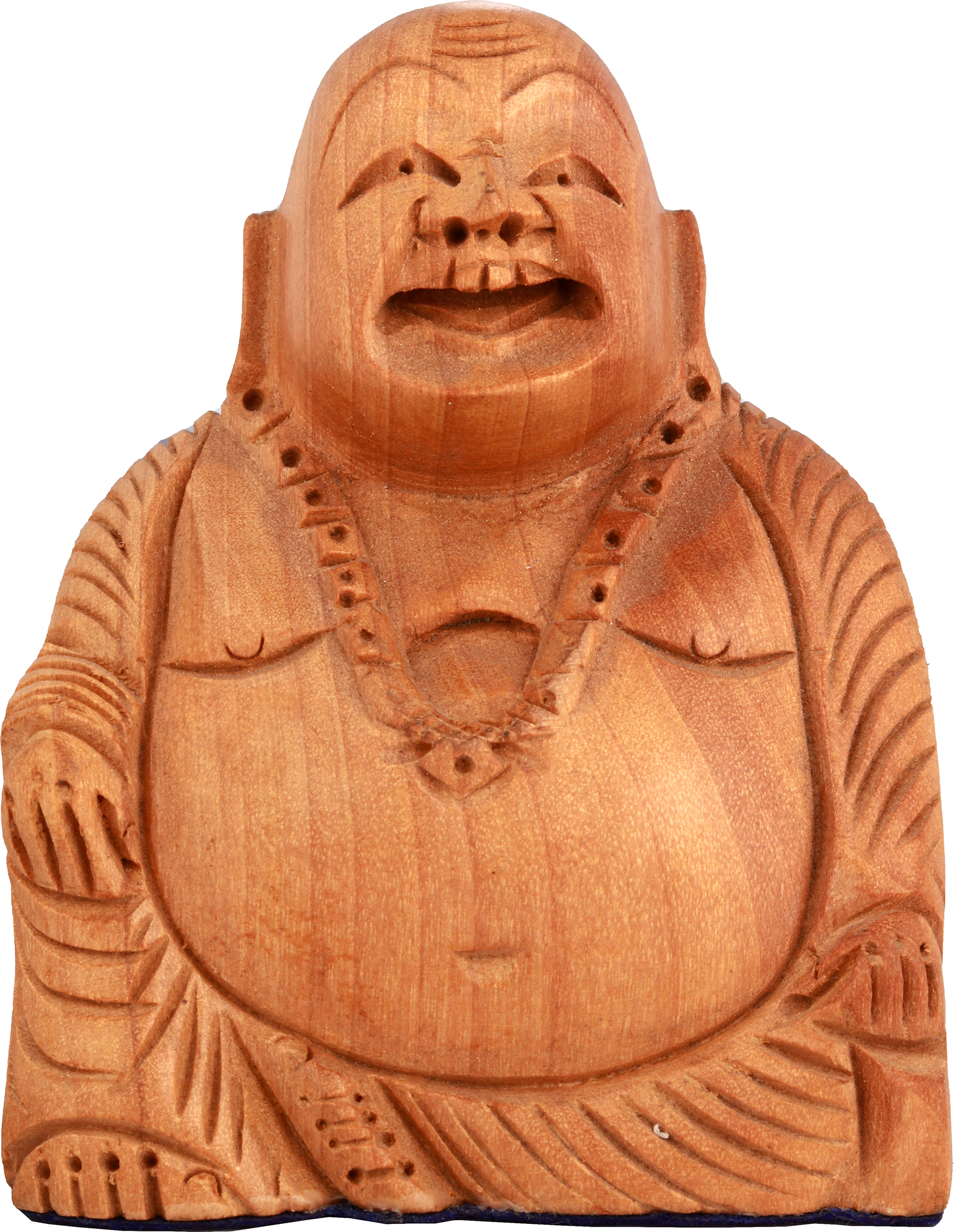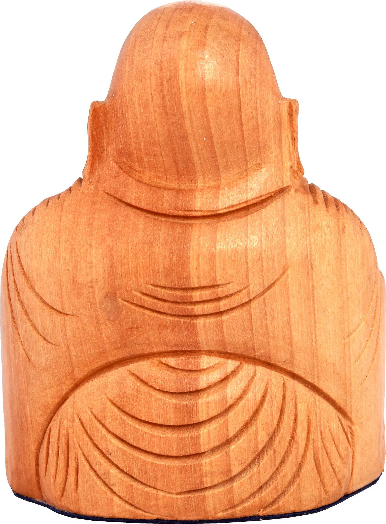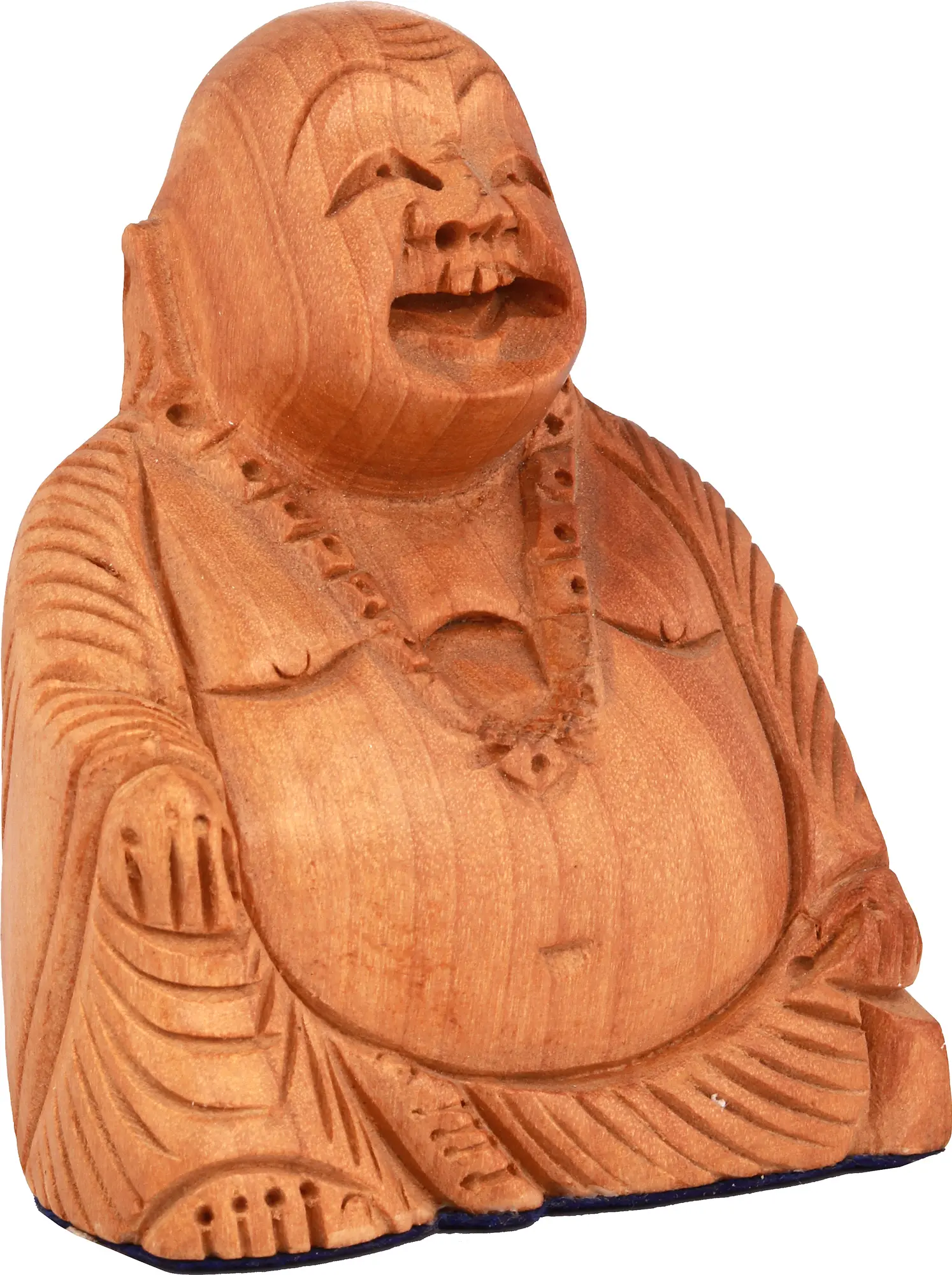 This exquisite wooden sculpture captures the essence of the Laughing Buddha, a revered figure symbolizing happiness, contentment, and good fortune. Carved from fine Kadamba wood in the artisan hub of Jaipur, this piece exudes warmth and character. The natural grain of the wood lends a unique texture and depth to the carving, making each sculpture a one-of-a-kind treasure. The Laughing Buddha, known in Chinese as Budai, is often depicted with a large, rounded belly, a broad smile, and a cheerful demeanor. While not a direct representation of Siddhartha Gautama, the historical Buddha, he is widely regarded as an enlightened being and a Bodhisattva who embodies compassion and generosity. Tales surrounding Budai suggest he was a wandering monk who lived in 10th-century China, known for his benevolent nature and his ability to bring joy and abundance wherever he went. He is often depicted carrying a cloth sack, from which he dispensed treasures and sweets, a symbol of his selfless giving. His infectious laughter is believed to dispel worries and negative energies, inviting harmony and prosperity into one's life.