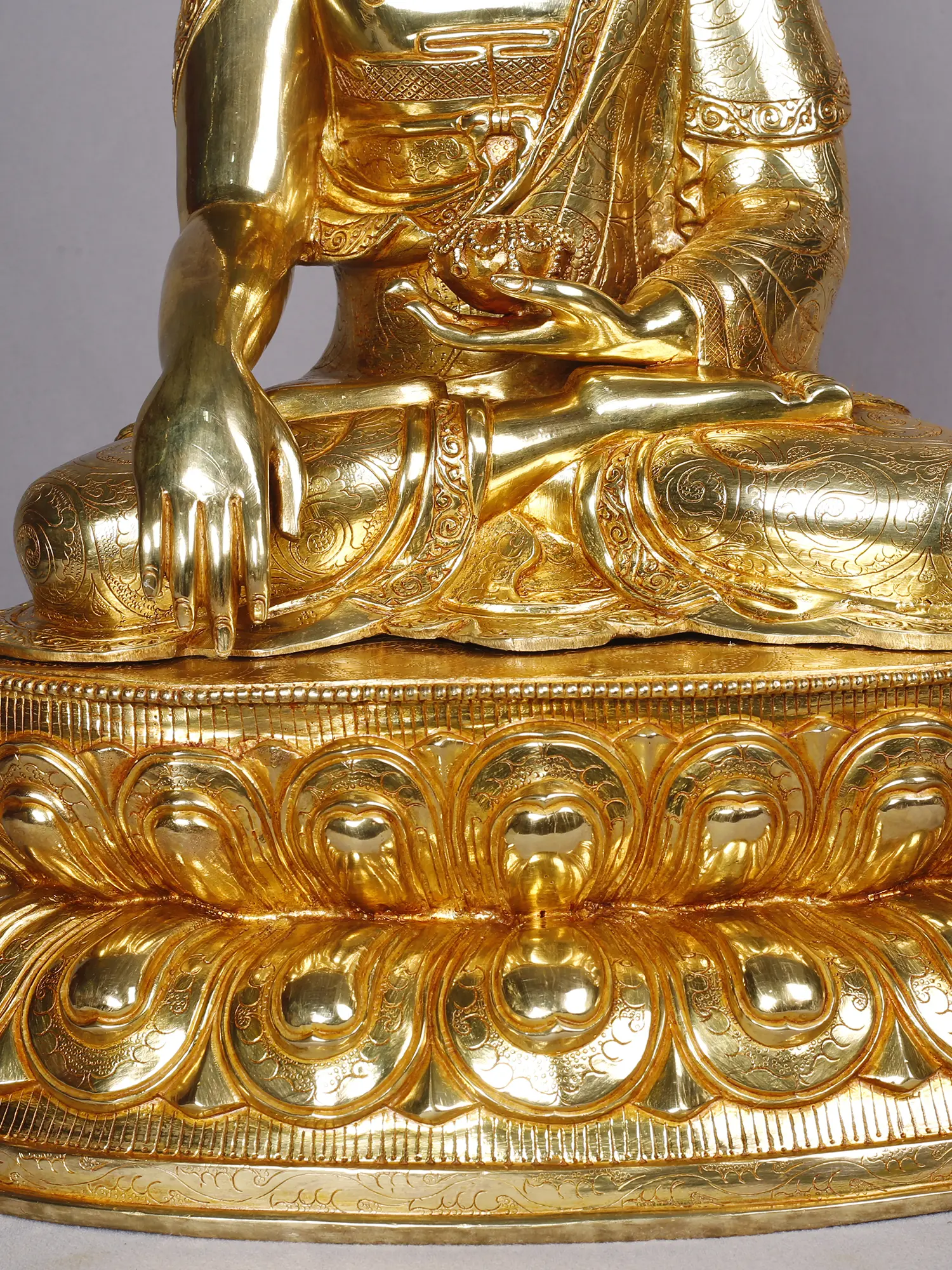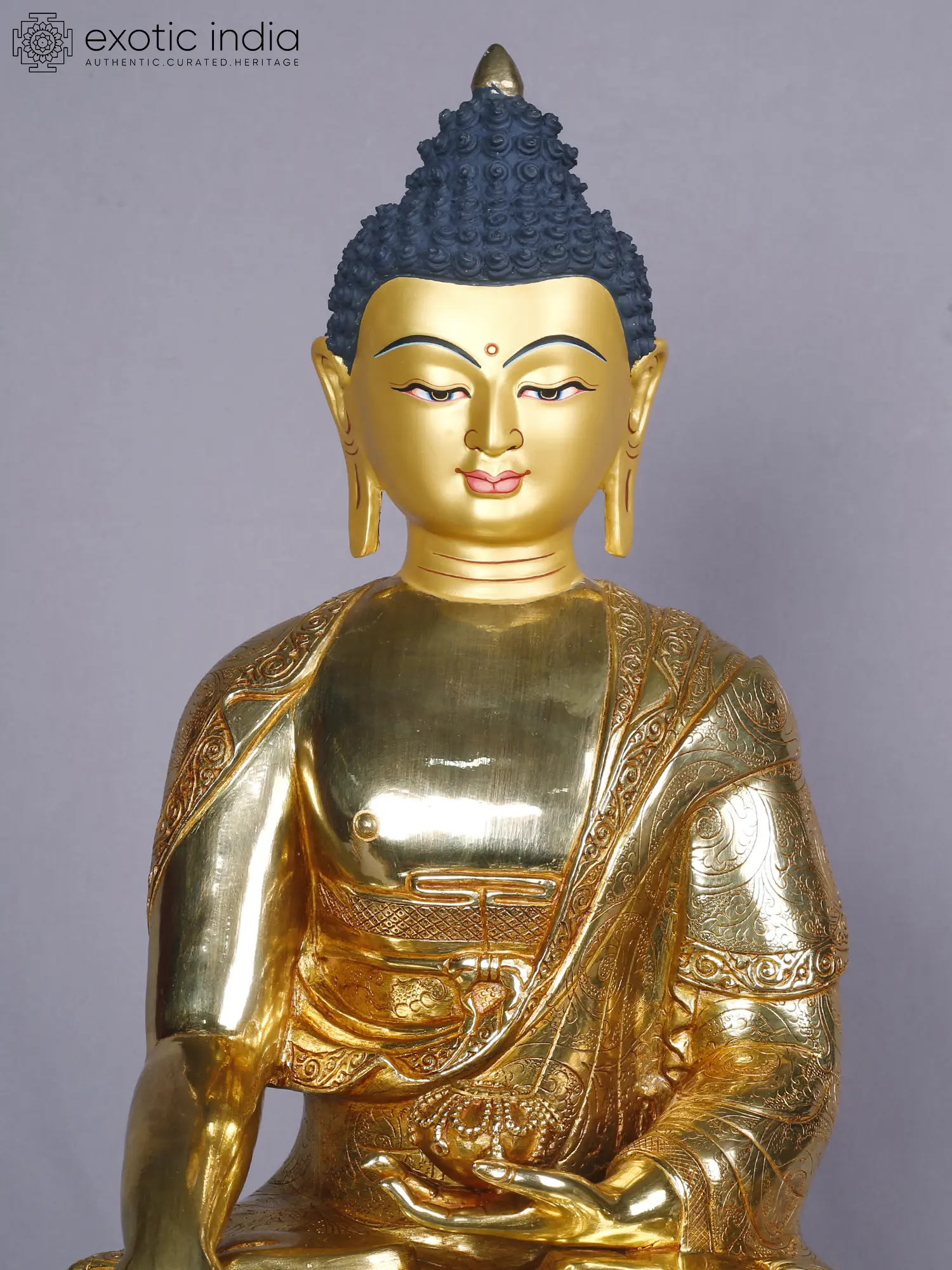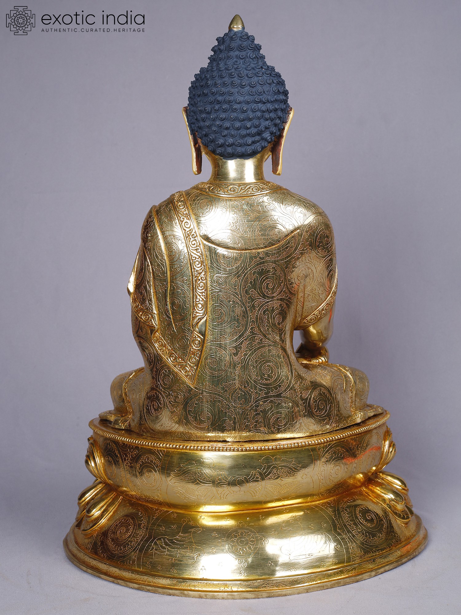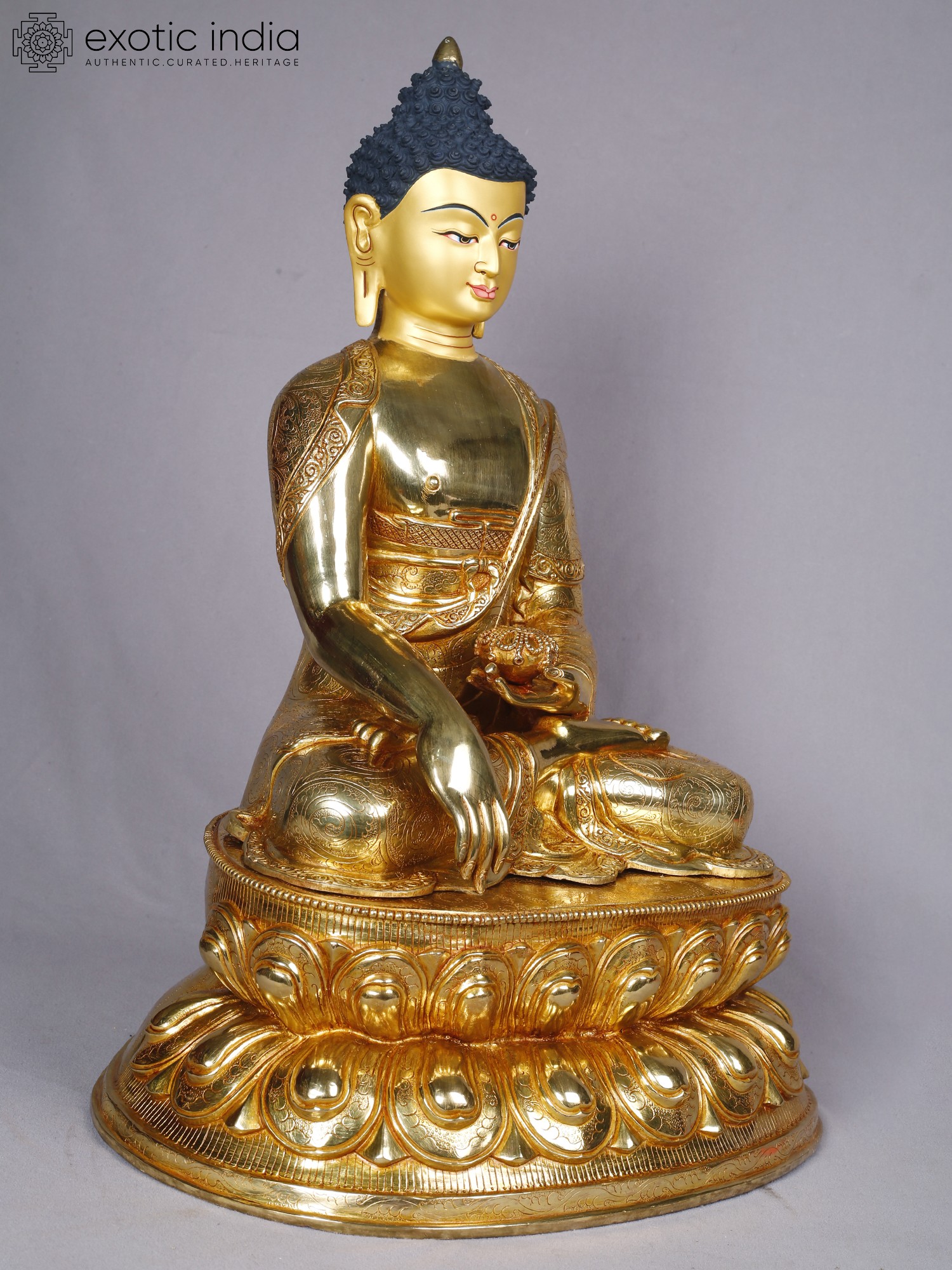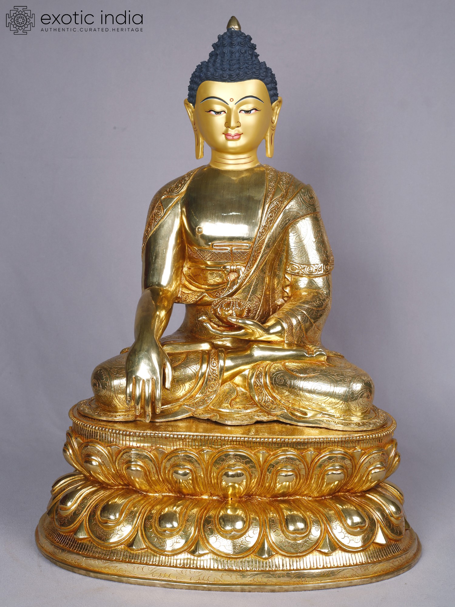 14" Shakyamuni Buddha Idol From Nepal | Copper Statue with Gold Finish