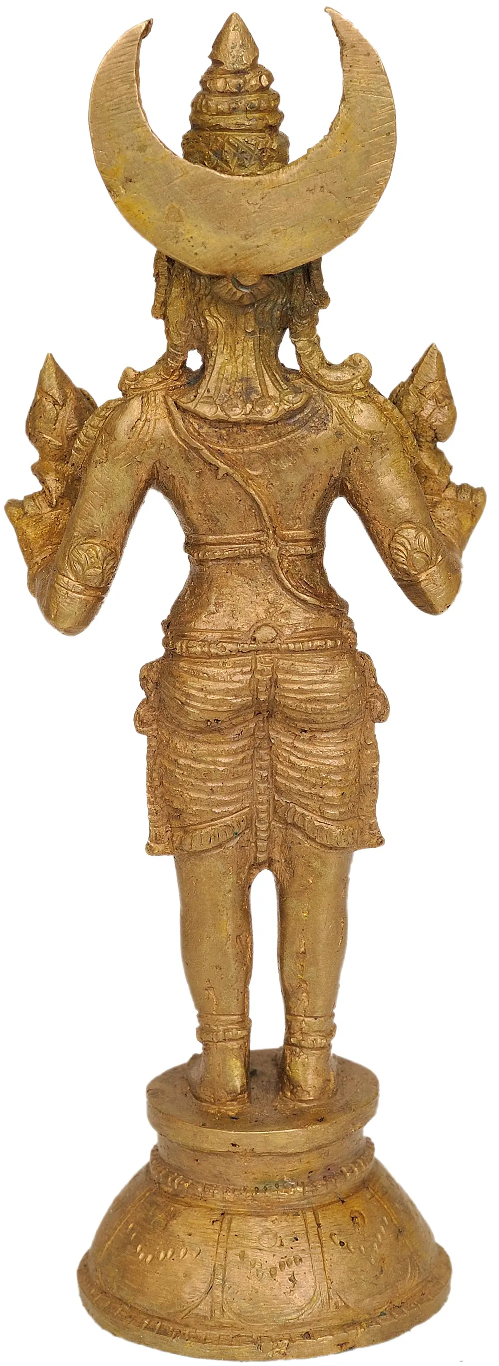 This compact yet potent bronze sculpture is ideal for personal worship, meditation spaces, or as a unique decorative accent. Its presence can serve as a constant reminder of the cyclical nature of life, the beauty of the night sky, and the profound connection between the celestial and the earthly. Invoking the blessings of Lord Chandra is believed to bring peace, clarity, and a sense of emotional well-being, guiding one through the ebb and flow of life with grace and equanimity. This piece not only adds aesthetic value but also spiritual depth to any environment it graces.