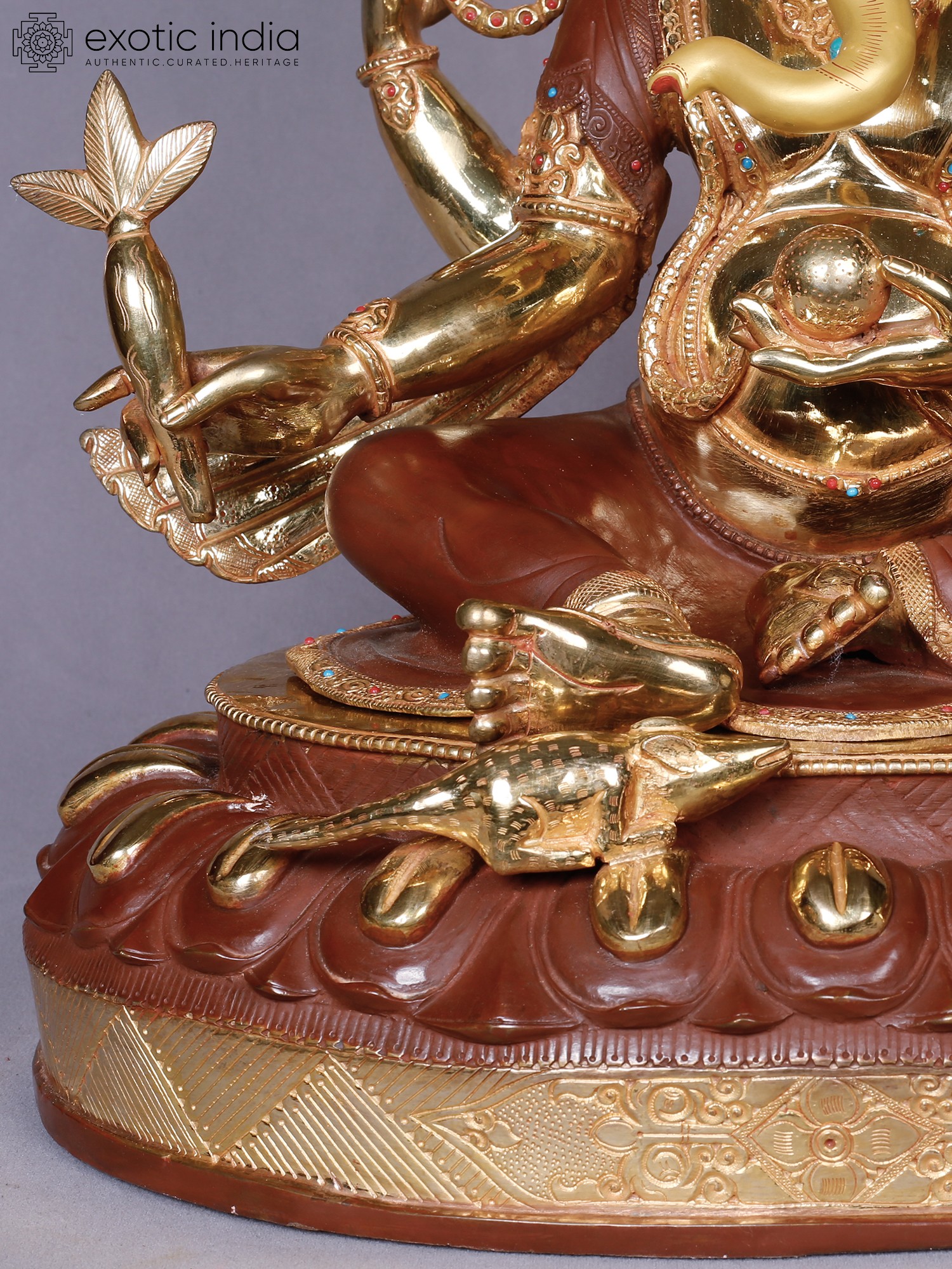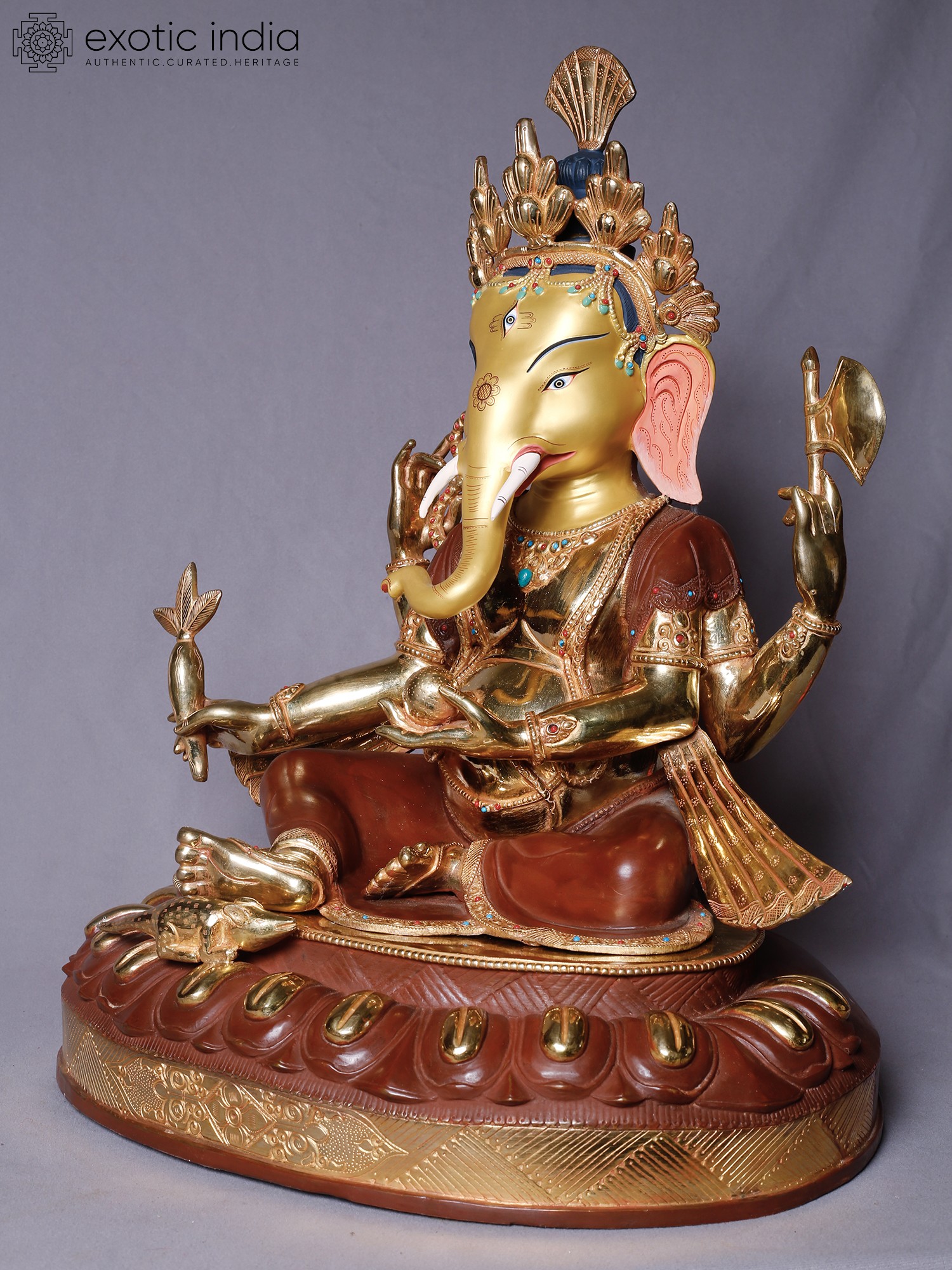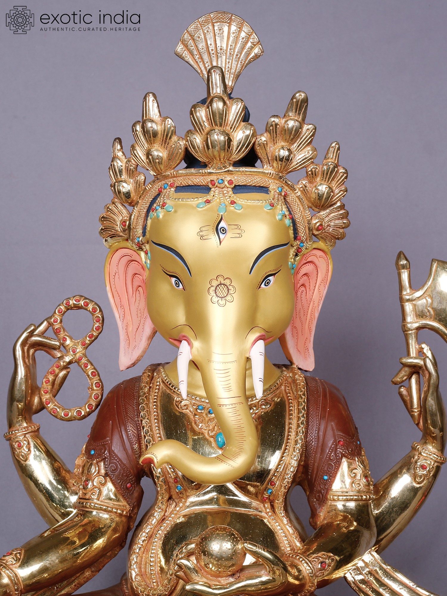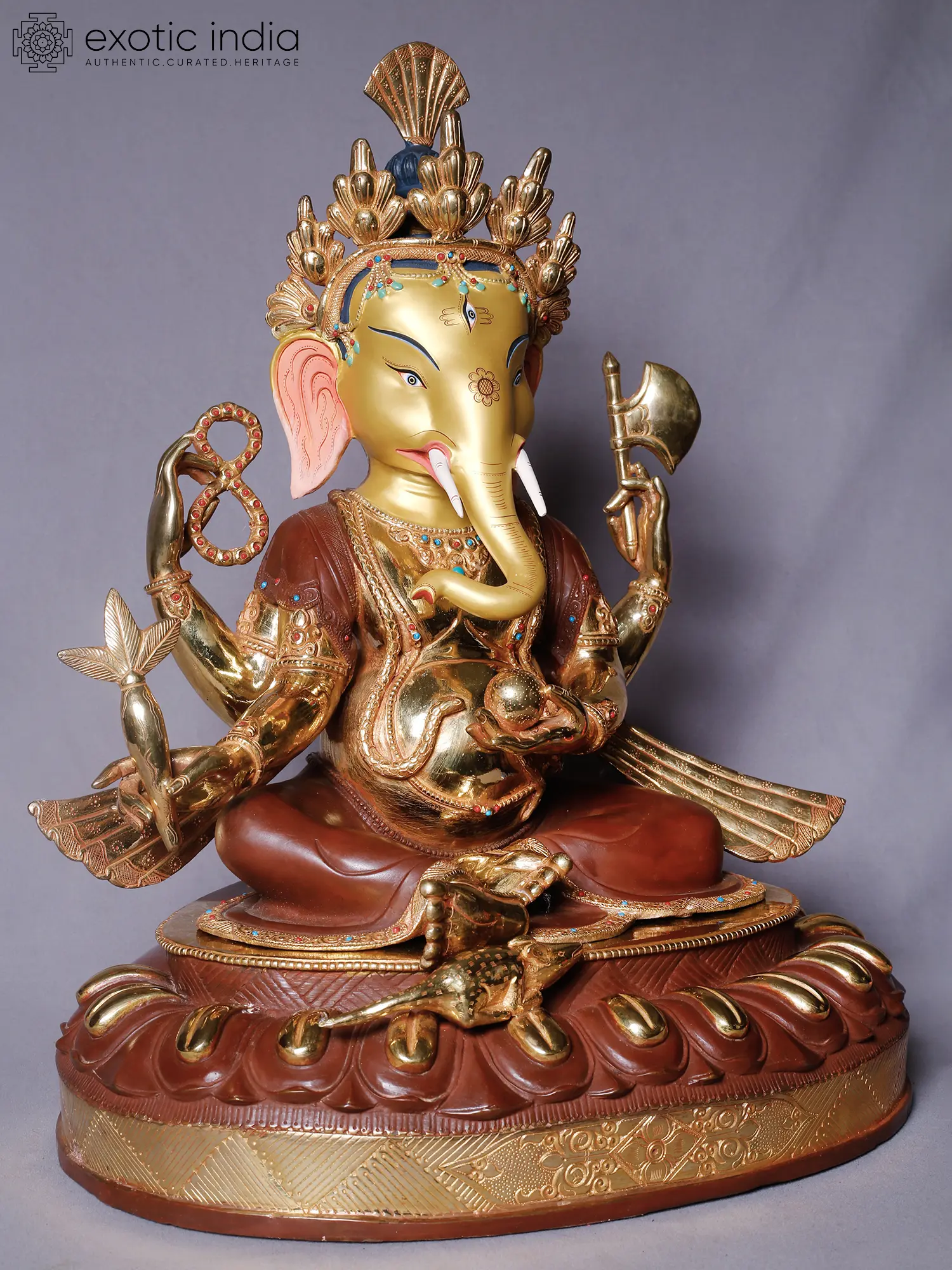 Lord Ganesha Copper Statue Gilded with 14K Gold