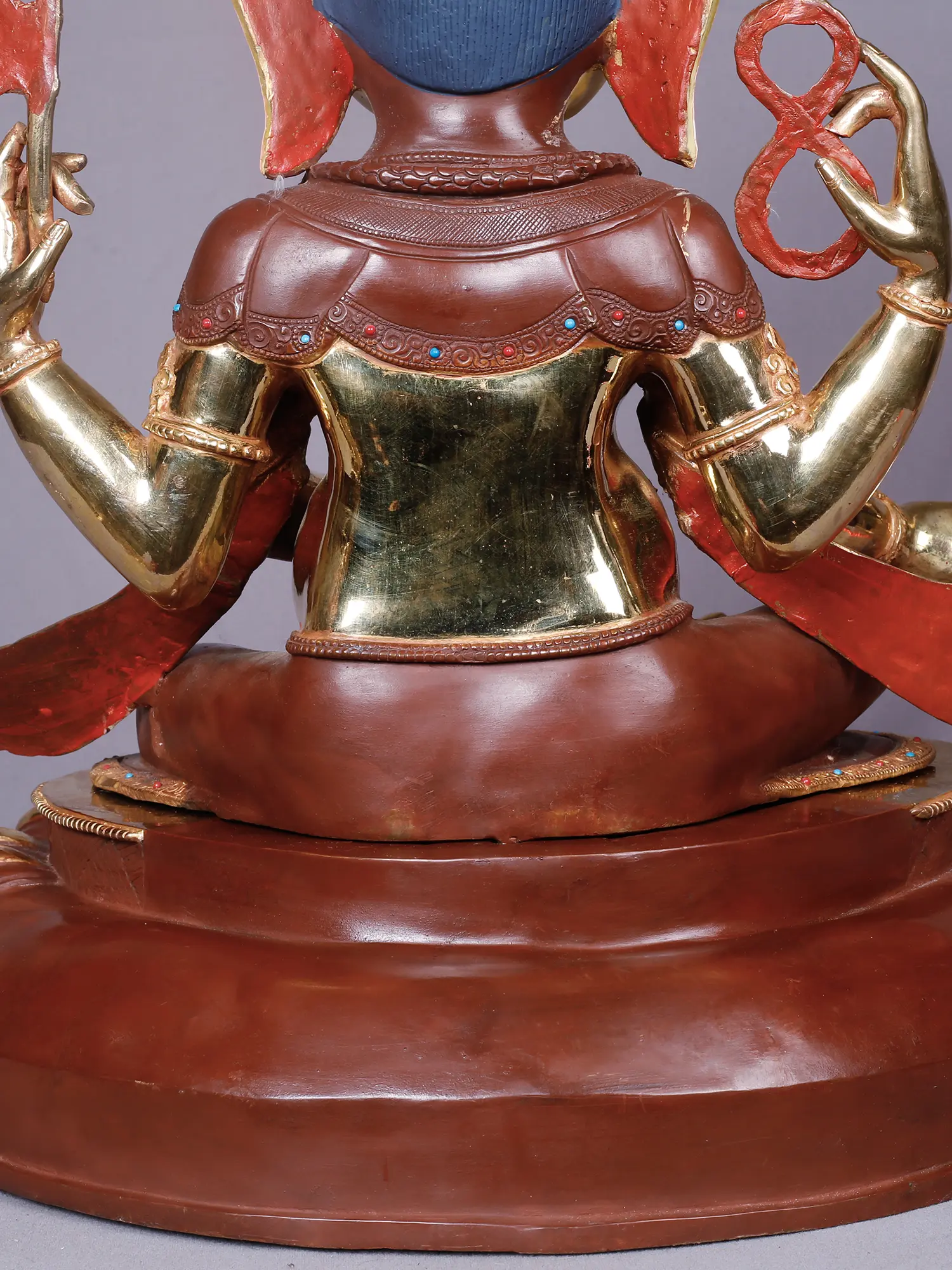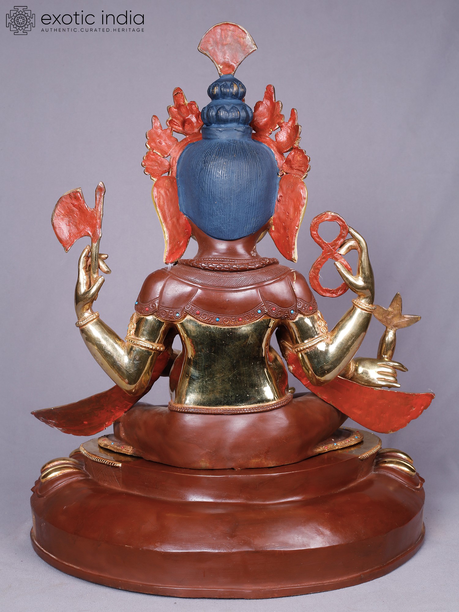 Witness the culmination of masterful craftsmanship and profound spiritual dedication. Each element of this sculptural marvel has been meticulously shaped from pure copper, a material revered for its conductive properties and inherent beauty. The surface is then lavishly adorned with a radiant gold plating, lending an ethereal glow that signifies purity and auspiciousness. You'll appreciate the painstaking attention to detail, from the intricate ornamentation of the headdress and jewelry to the delicate rendering of the lotus pedestal.