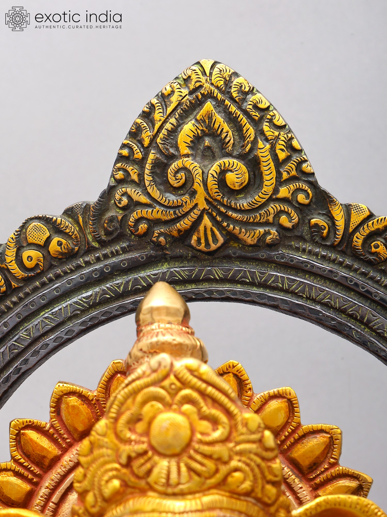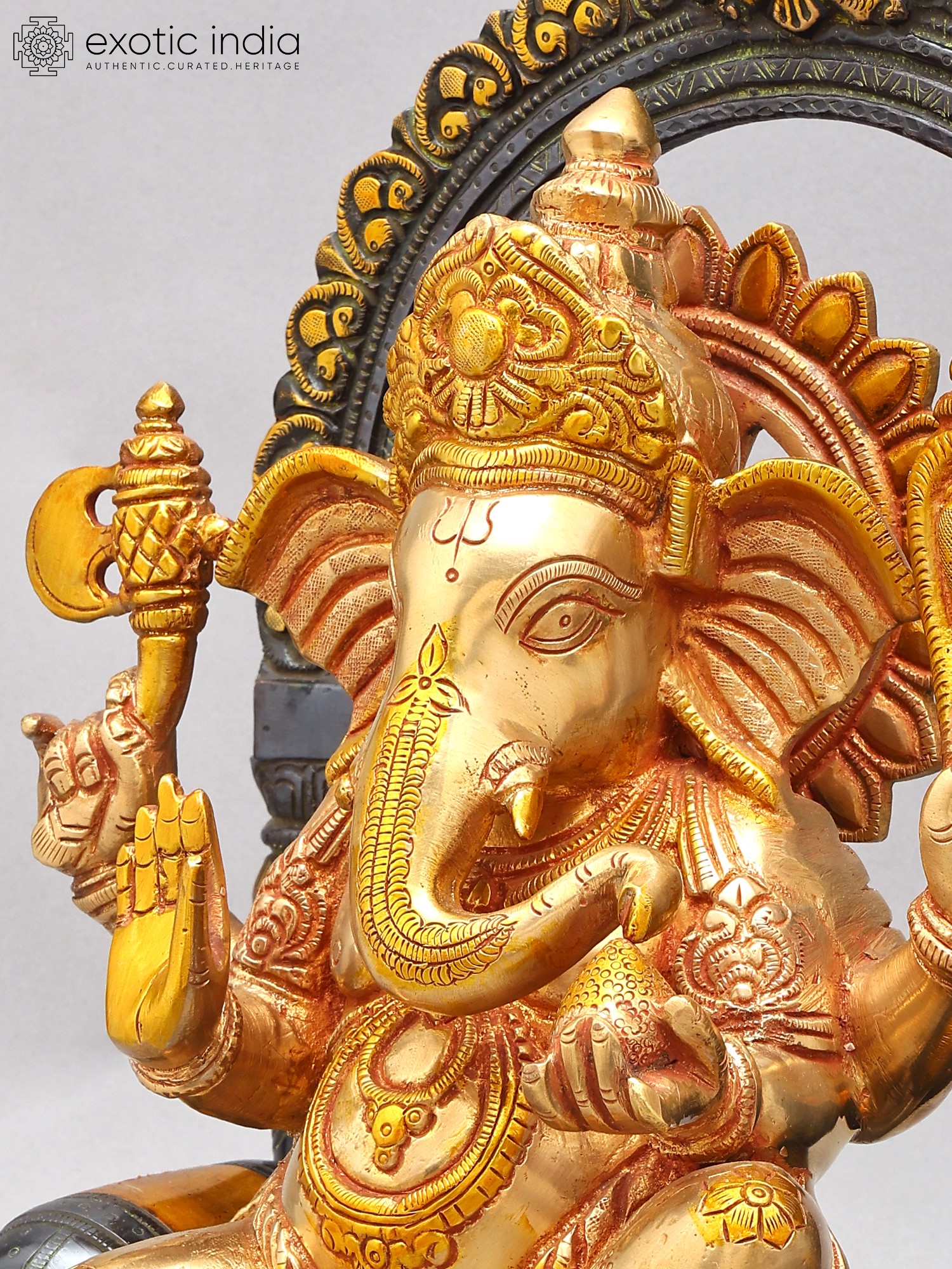 This brass sculpture depicts Lord Ganesha, the remover of obstacles and deity of wisdom.