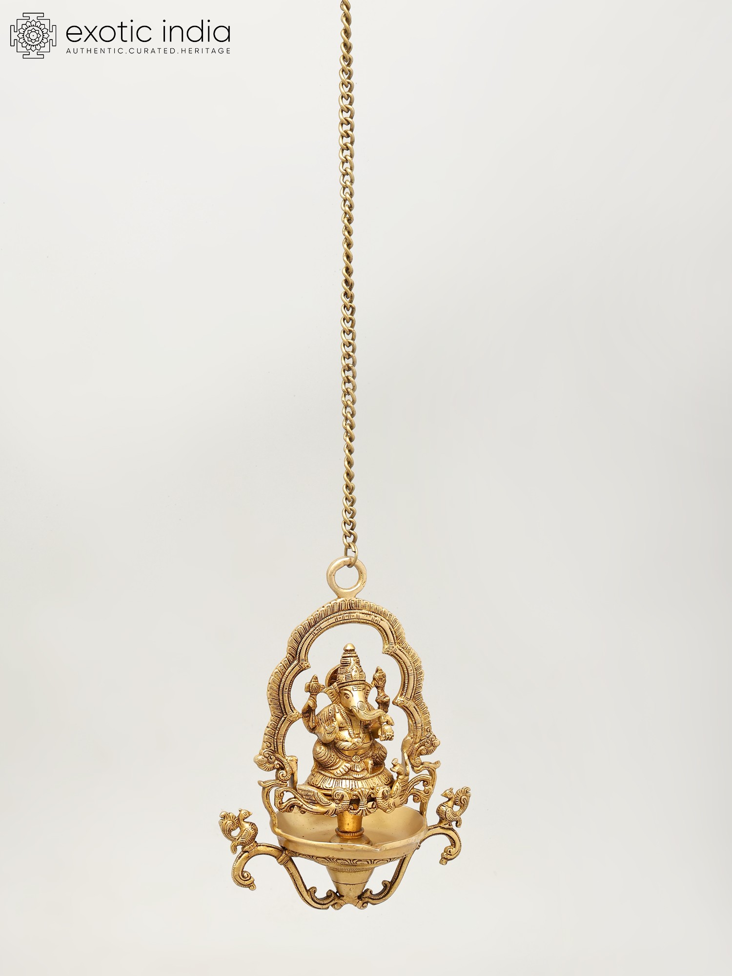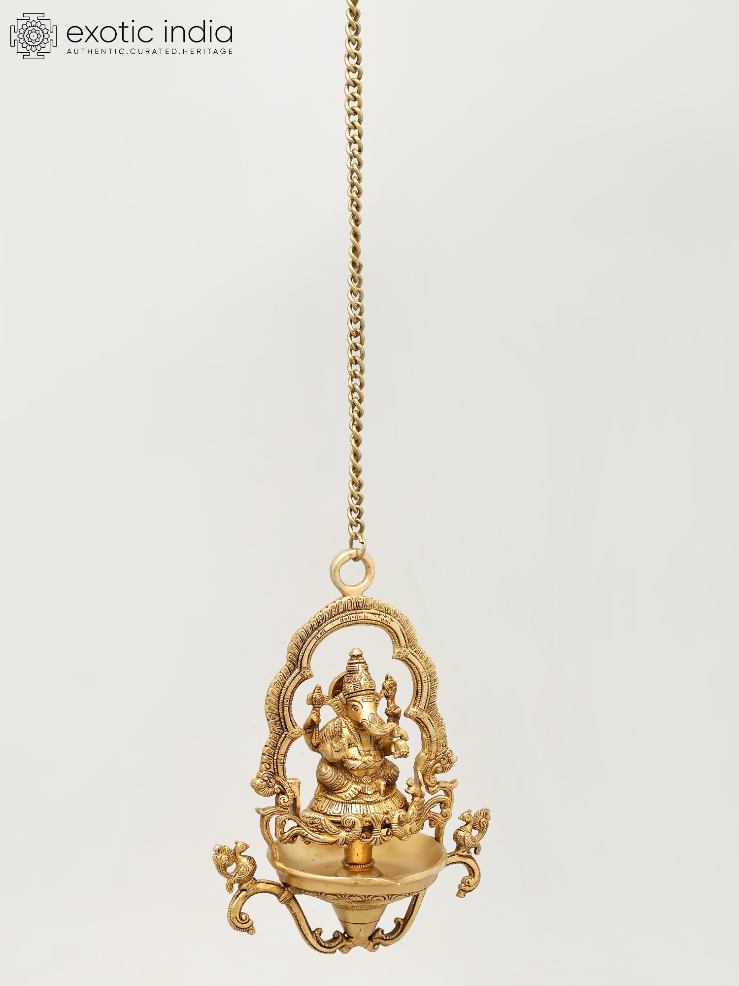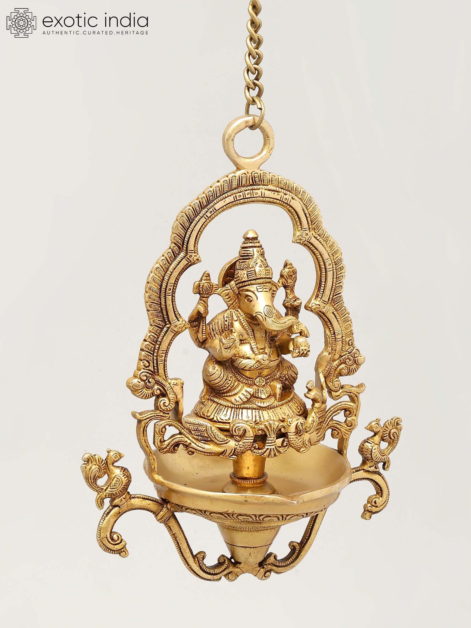 Infuse your space with the auspicious presence of Lord Ganesha and the warm glow of traditional Indian craftsmanship with this exquisite brass hanging lamp. This piece is not merely a source of light but a testament to a rich heritage, meticulously handcrafted in India by skilled artisans. The inherent beauty of brass, known for its durability and lustrous sheen, has been sculpted into a divine representation of the elephant-headed deity, the remover of obstacles and the bestower of wisdom and prosperity.