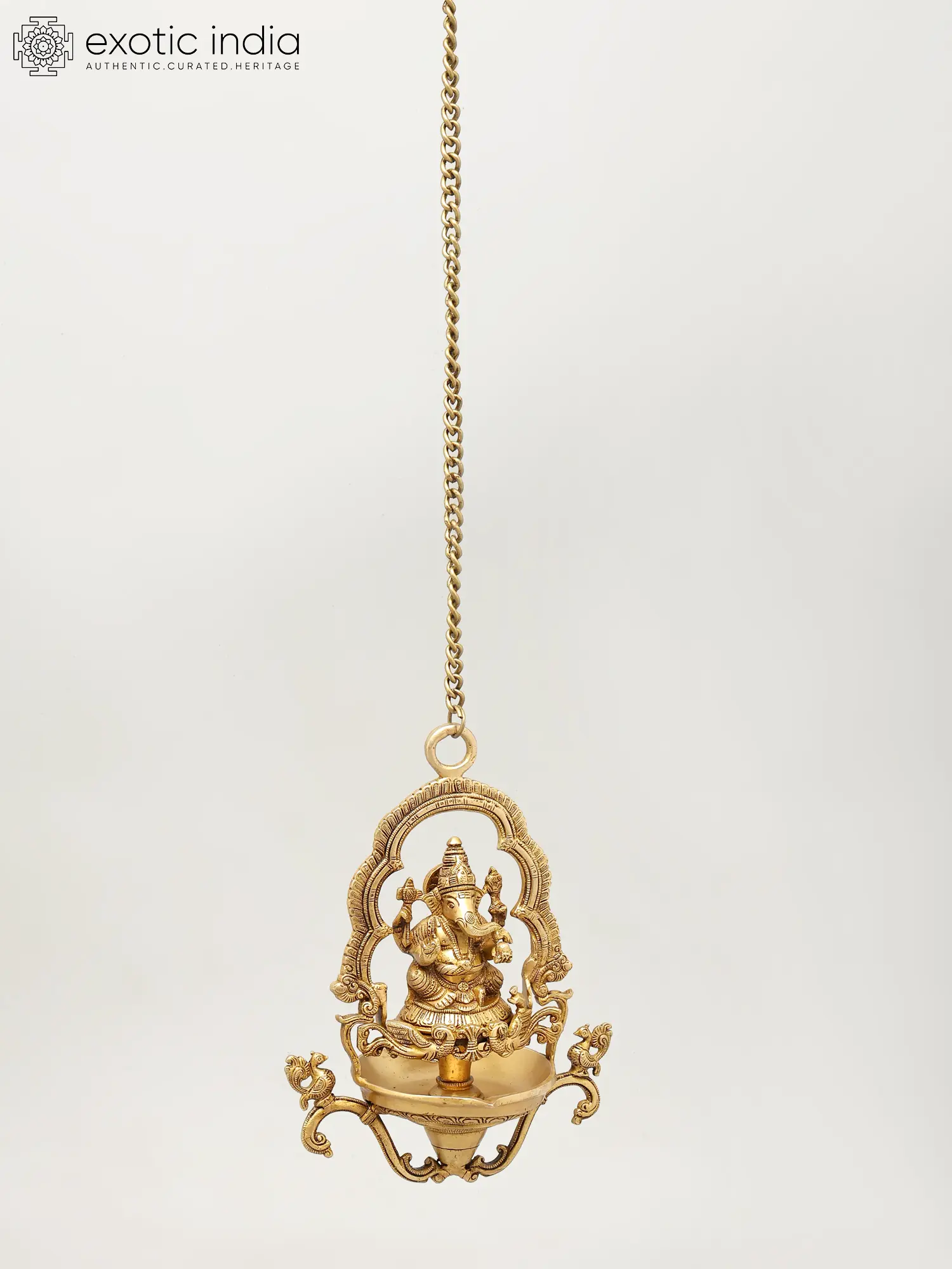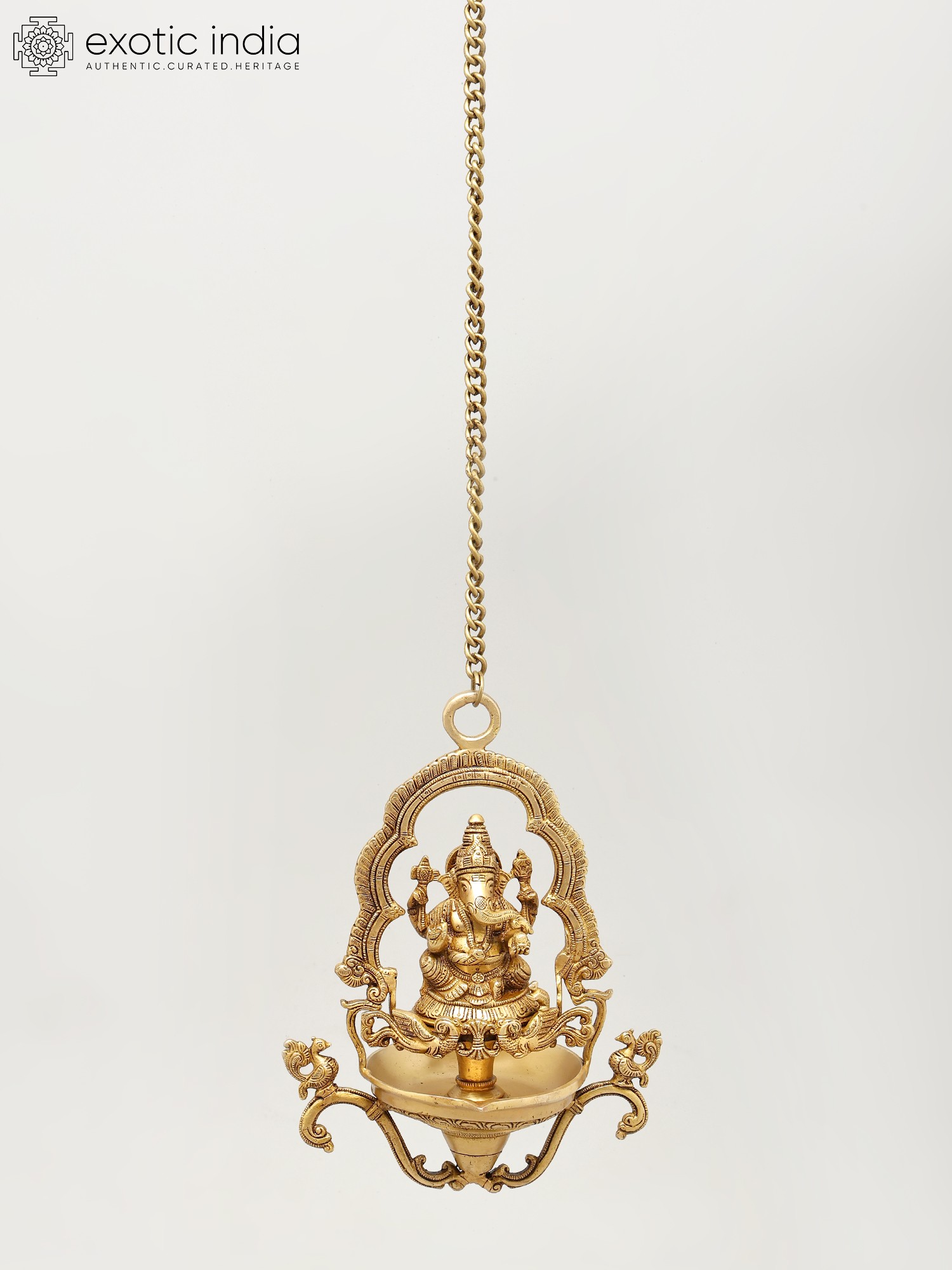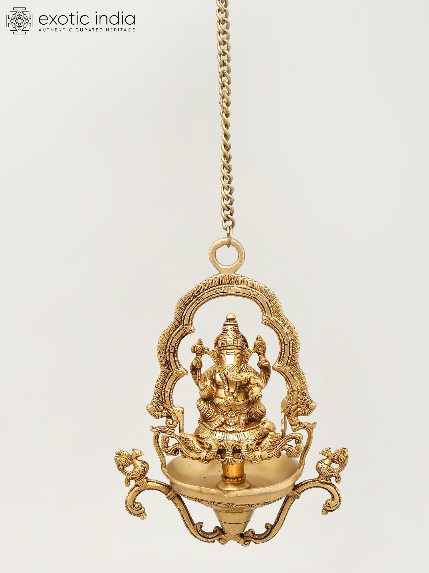 Infuse your space with the auspicious presence of Lord Ganesha and the warm glow of traditional Indian craftsmanship with this exquisite brass hanging lamp. This piece is not merely a source of light but a testament to a rich heritage, meticulously handcrafted in India by skilled artisans. The inherent beauty of brass, known for its durability and lustrous sheen, has been sculpted into a divine representation of the elephant-headed deity, the remover of obstacles and the bestower of wisdom and prosperity.