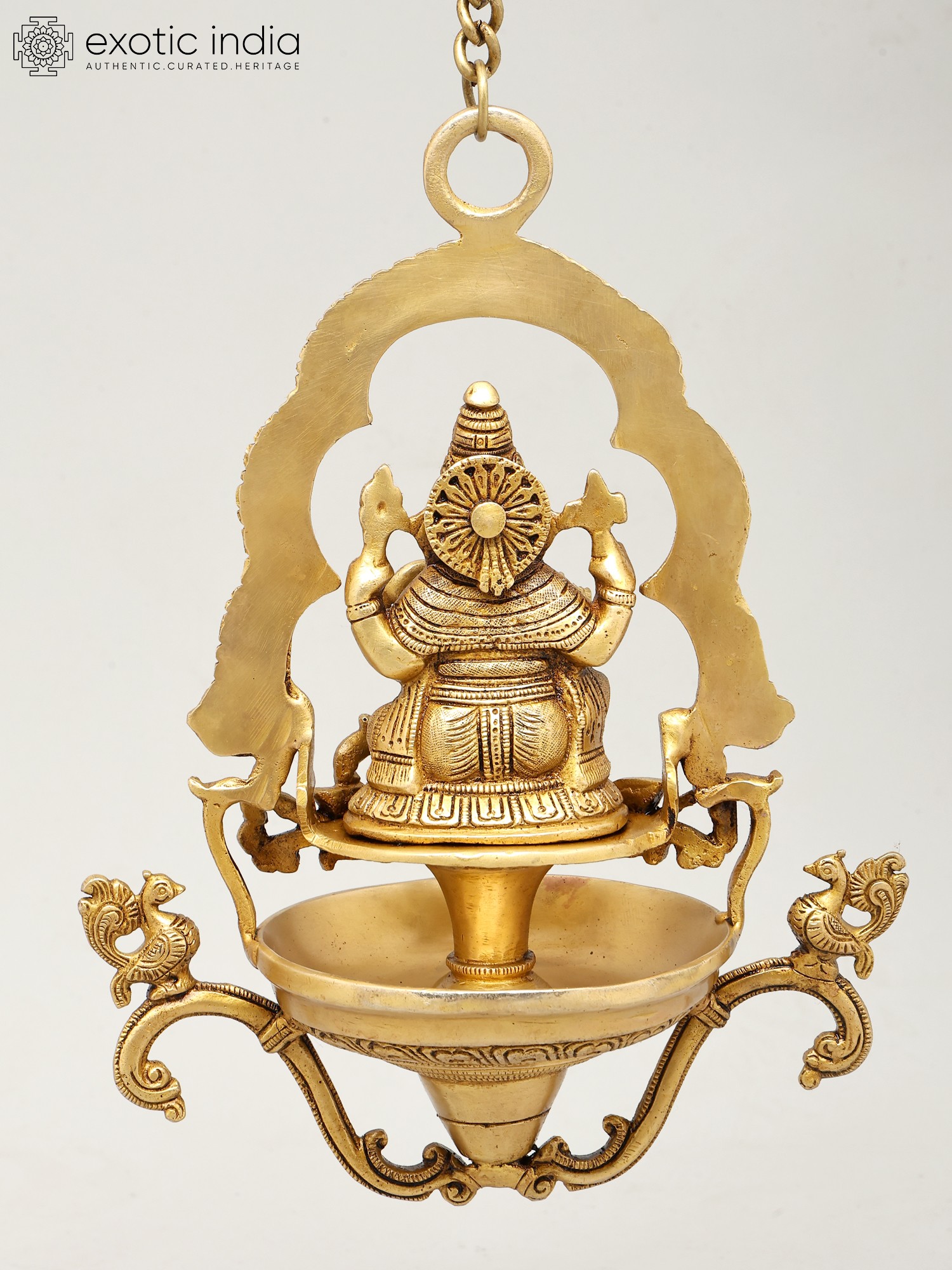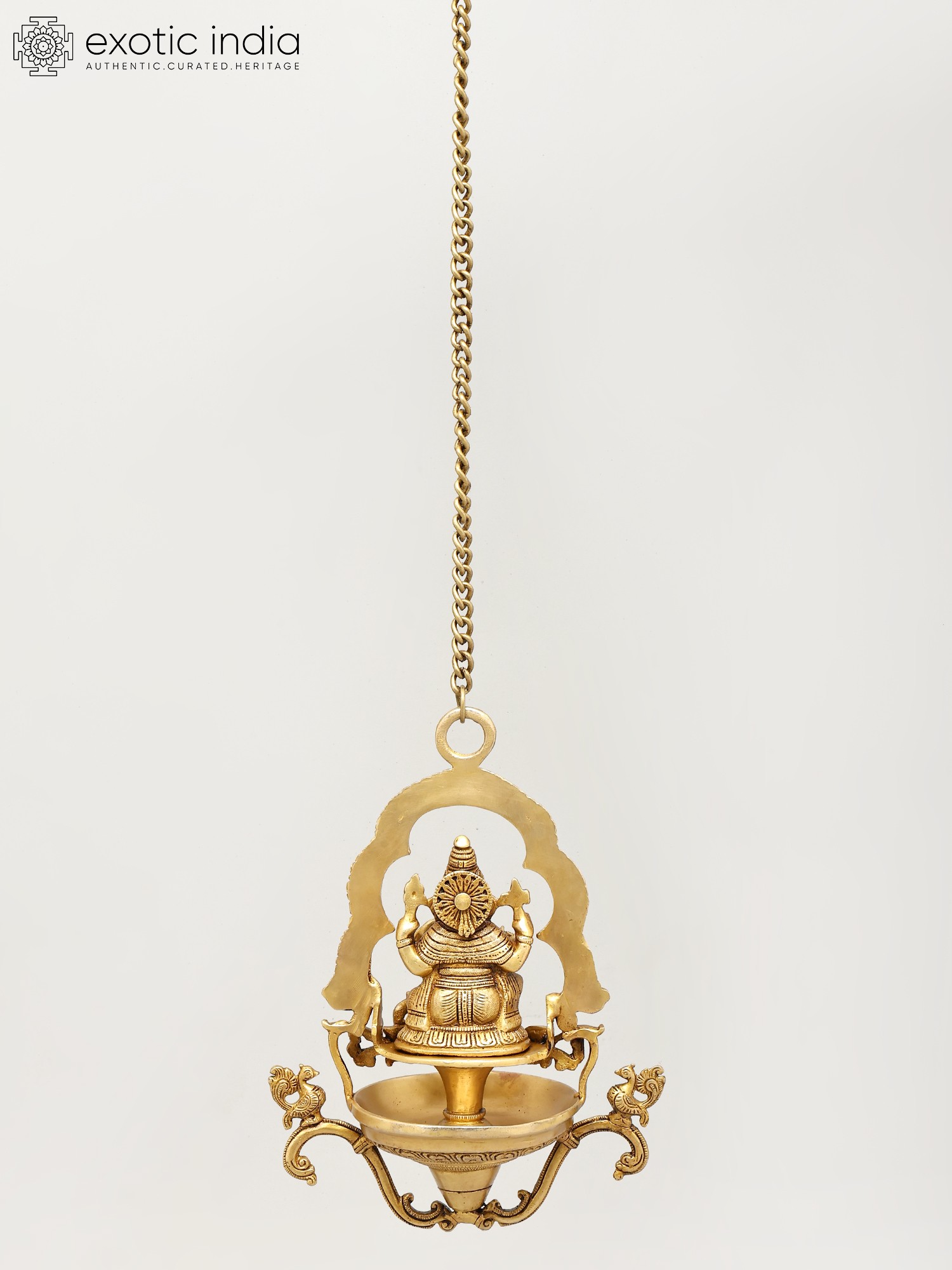 9" Roof Hanging Lamp with Vaishnava Symbols in Brass | Handmade | Made in India