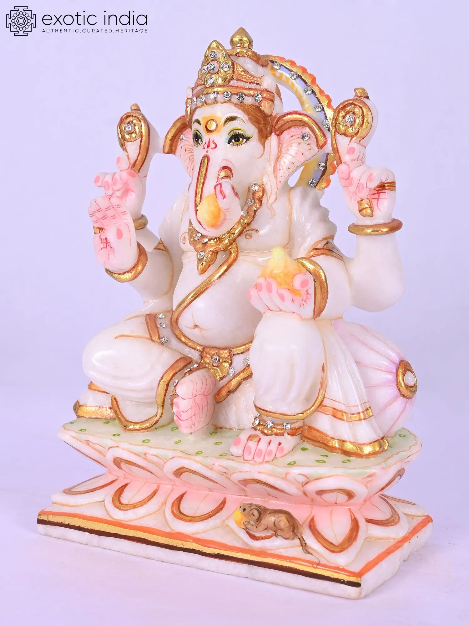 Four Armed Ganesha Marble Sculpture | 18 Inches
