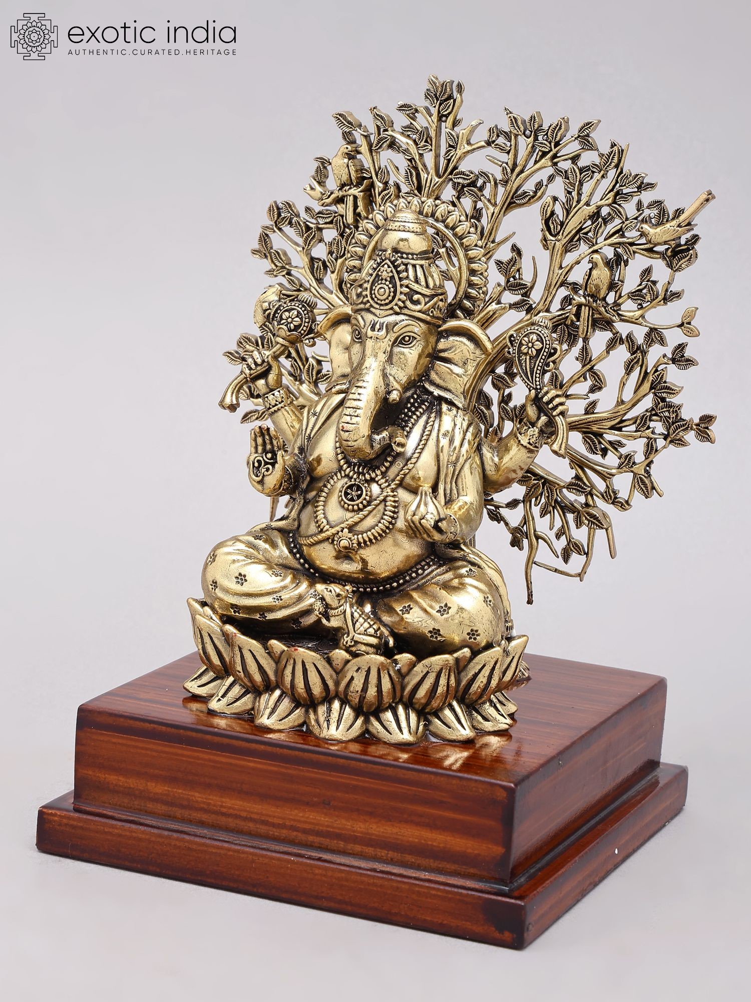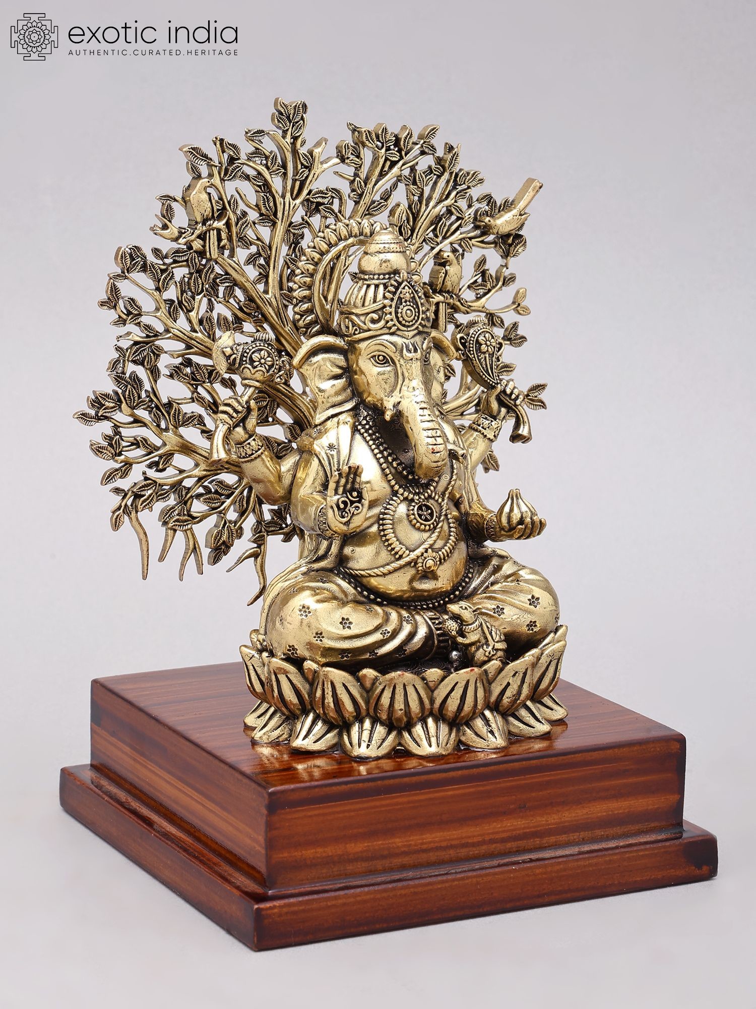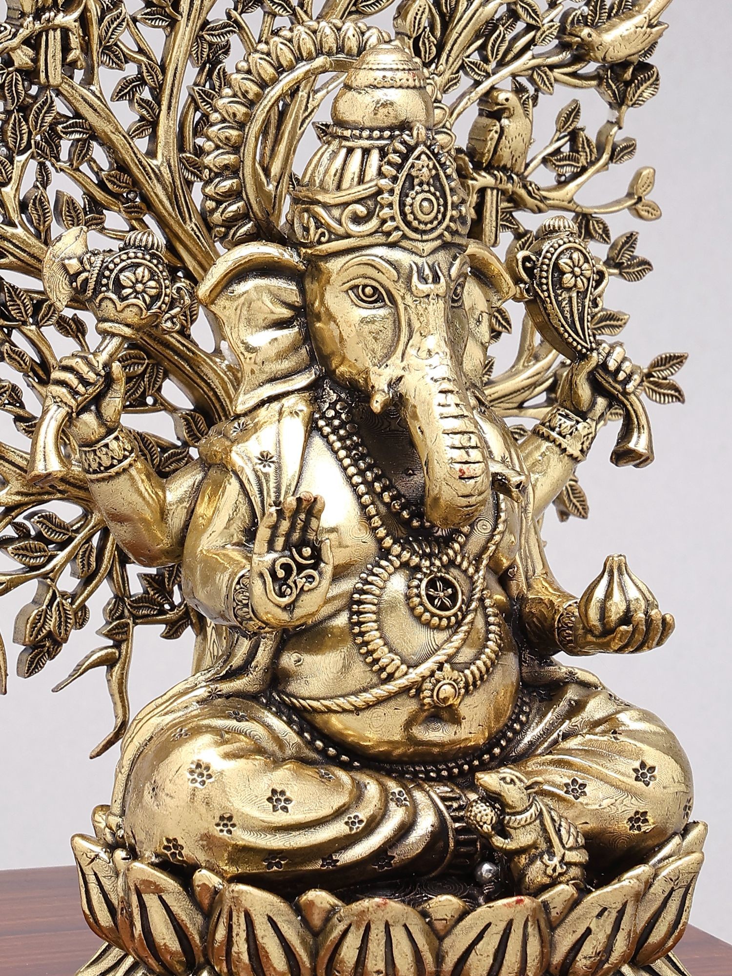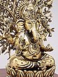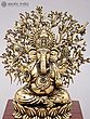 Lord Ganesha Sculpture with Tree and Wood Stand