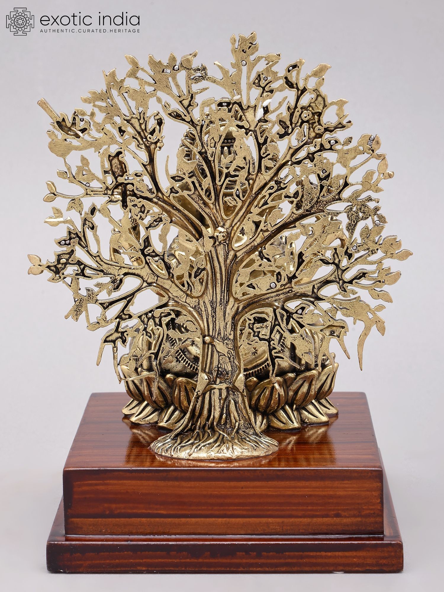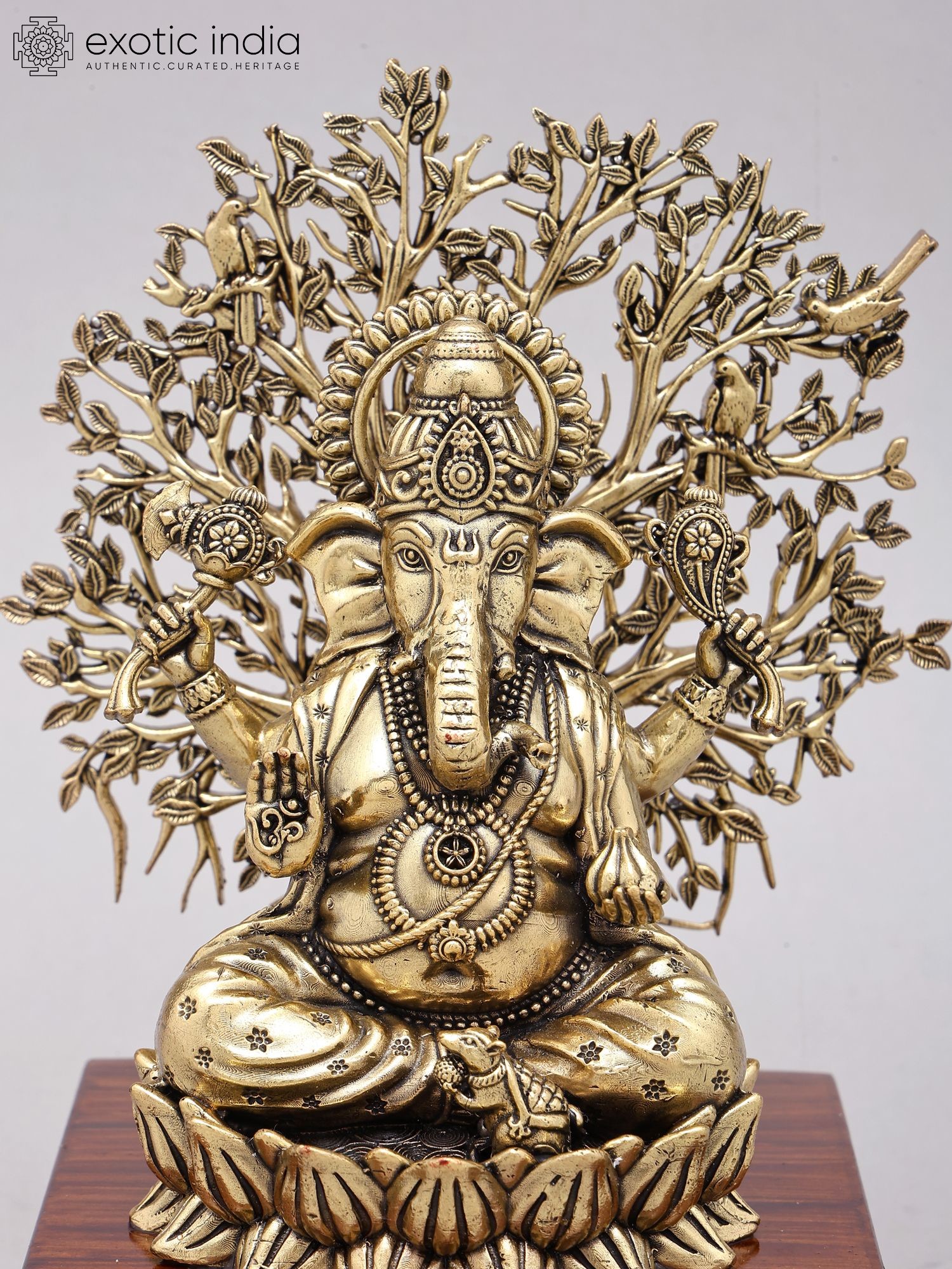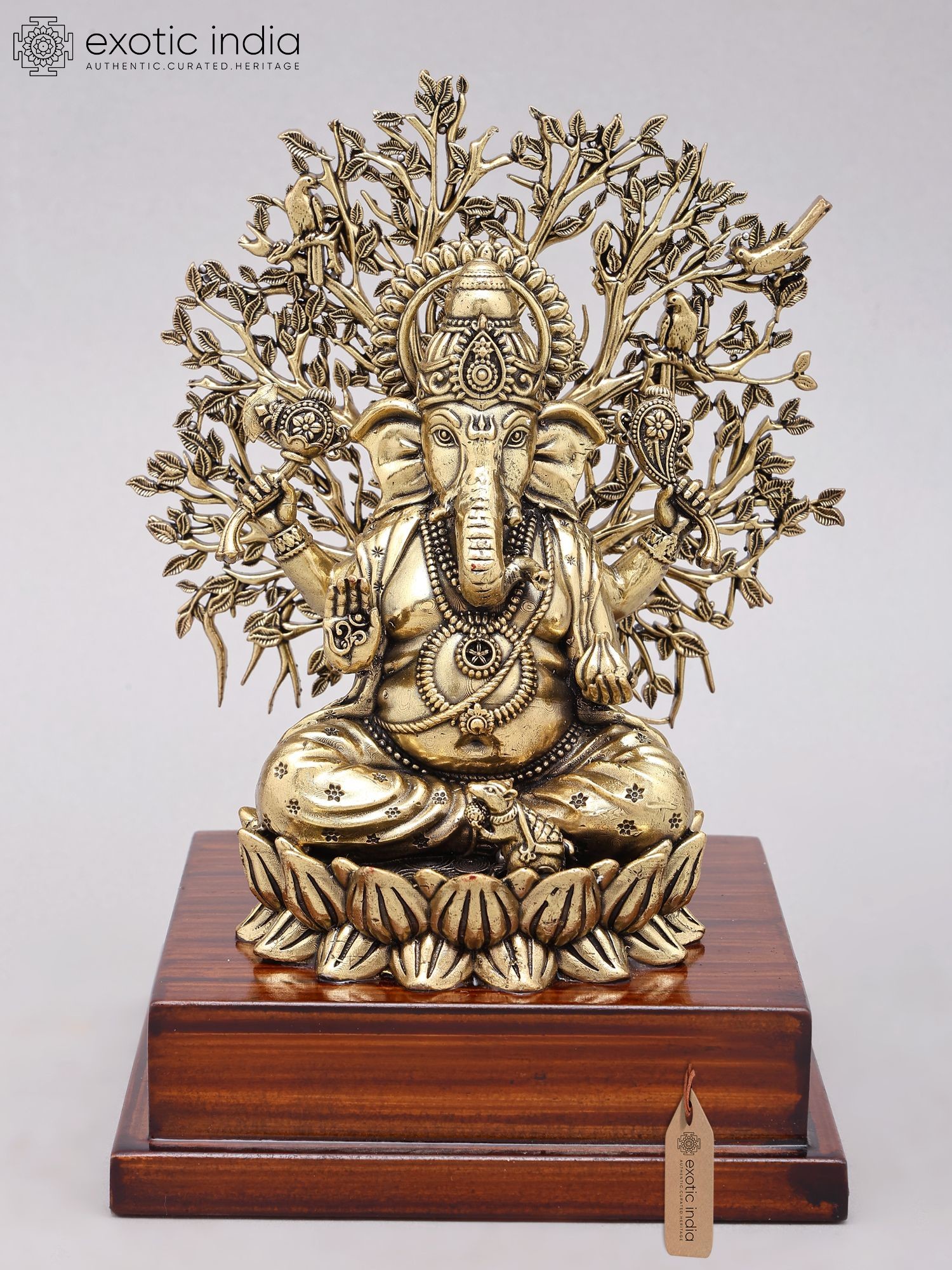Lord Ganesha Sculpture with Tree and Wood Stand