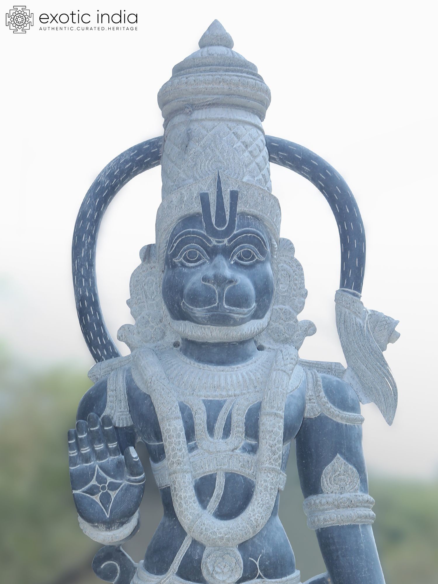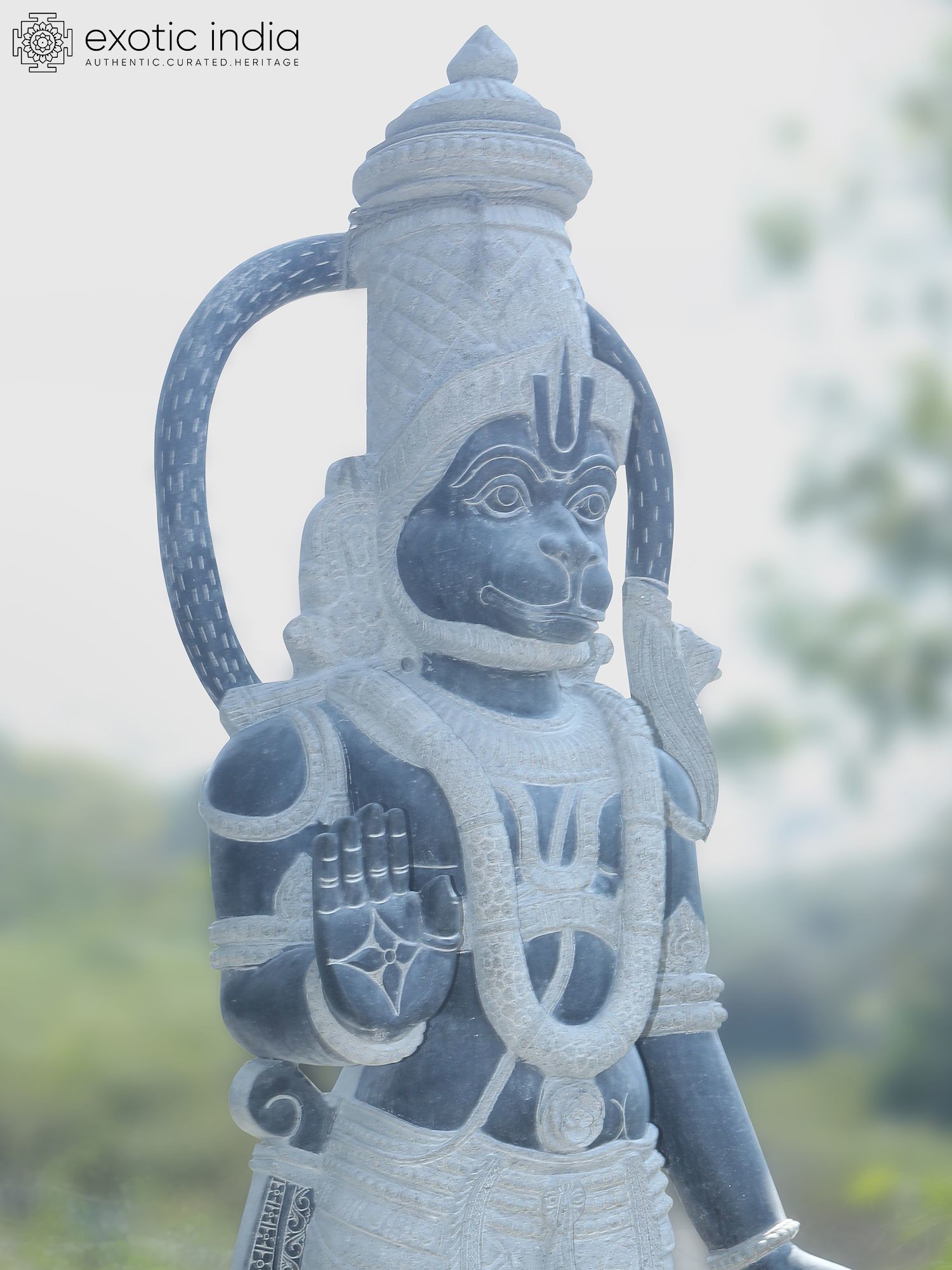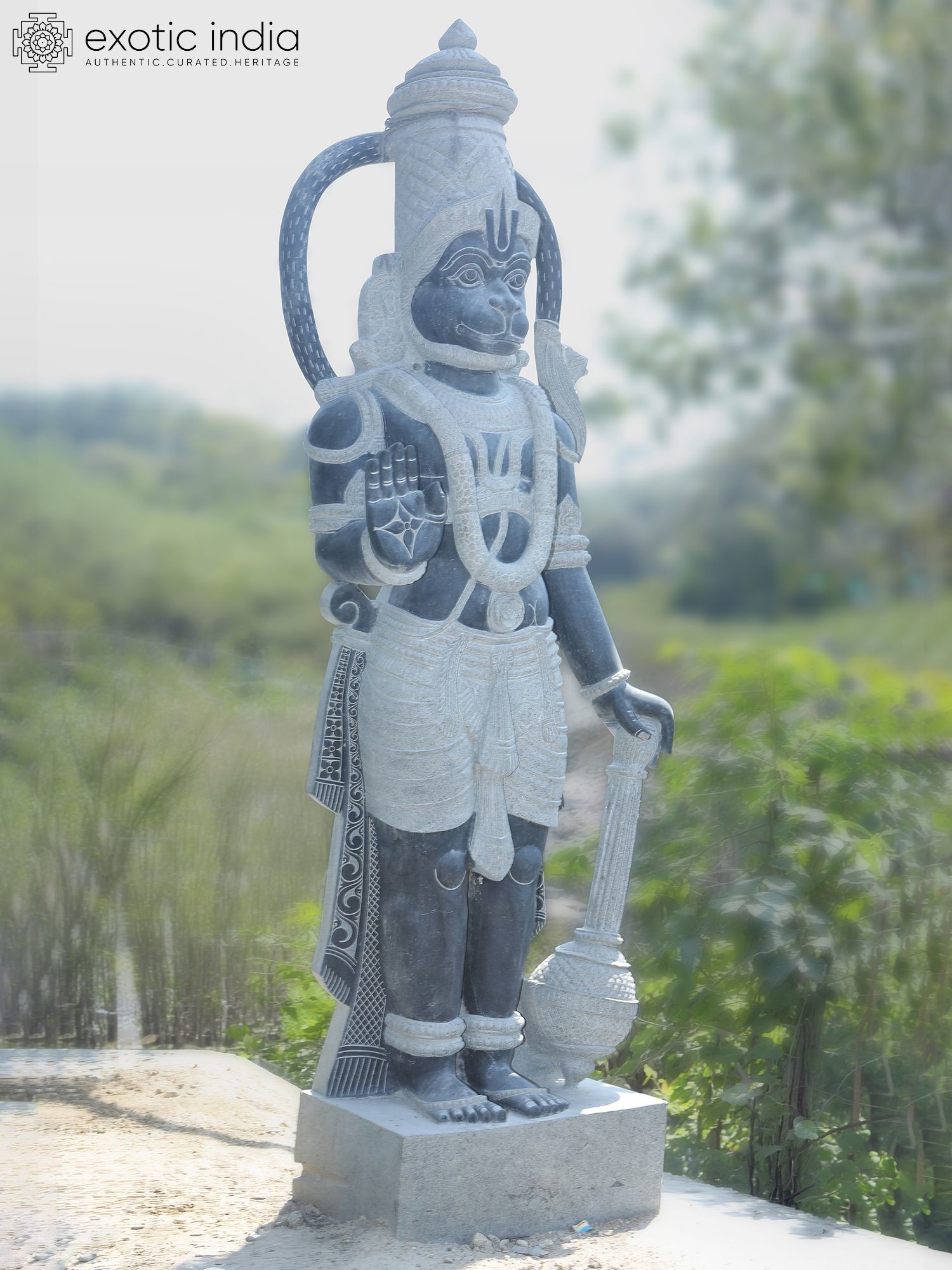 Majestic 101-inch tall granite statue depicting Lord Hanuman in a commanding standing pose.